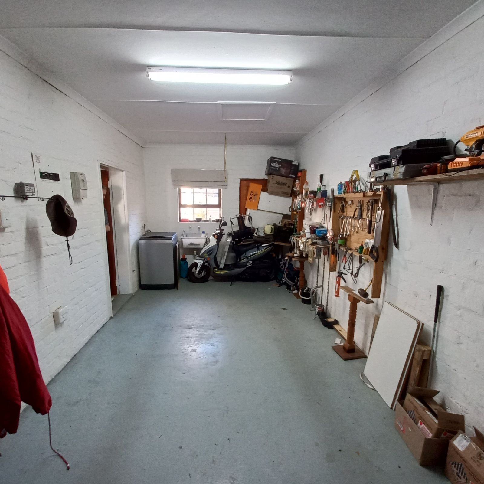 Single-car garage with direct access to the kitchen for added convenience and security