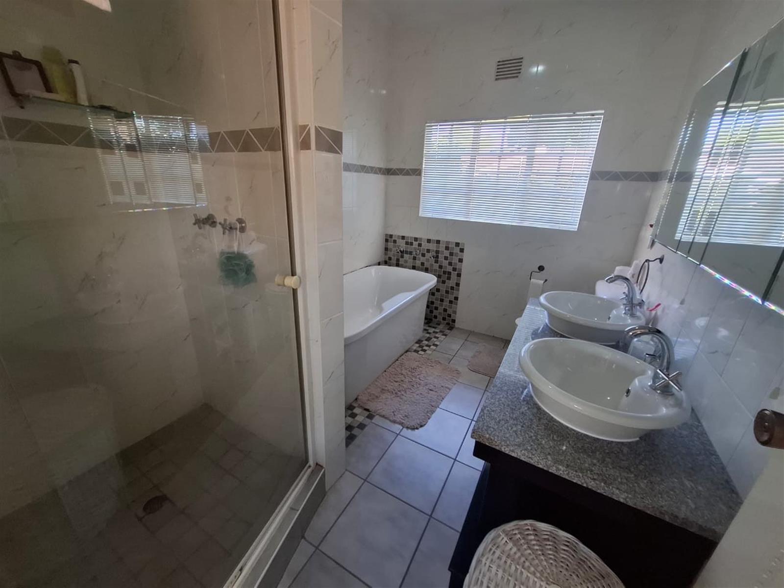 Refreshing swimming pool with neat garden, covered braai/entertainment area, perfectly equipped for hosting. Outside bathroom with shower, basin, and toilet. Separate laundry room. Single garage with additional storage space, Second garage plus covered parking for 3 vehicles