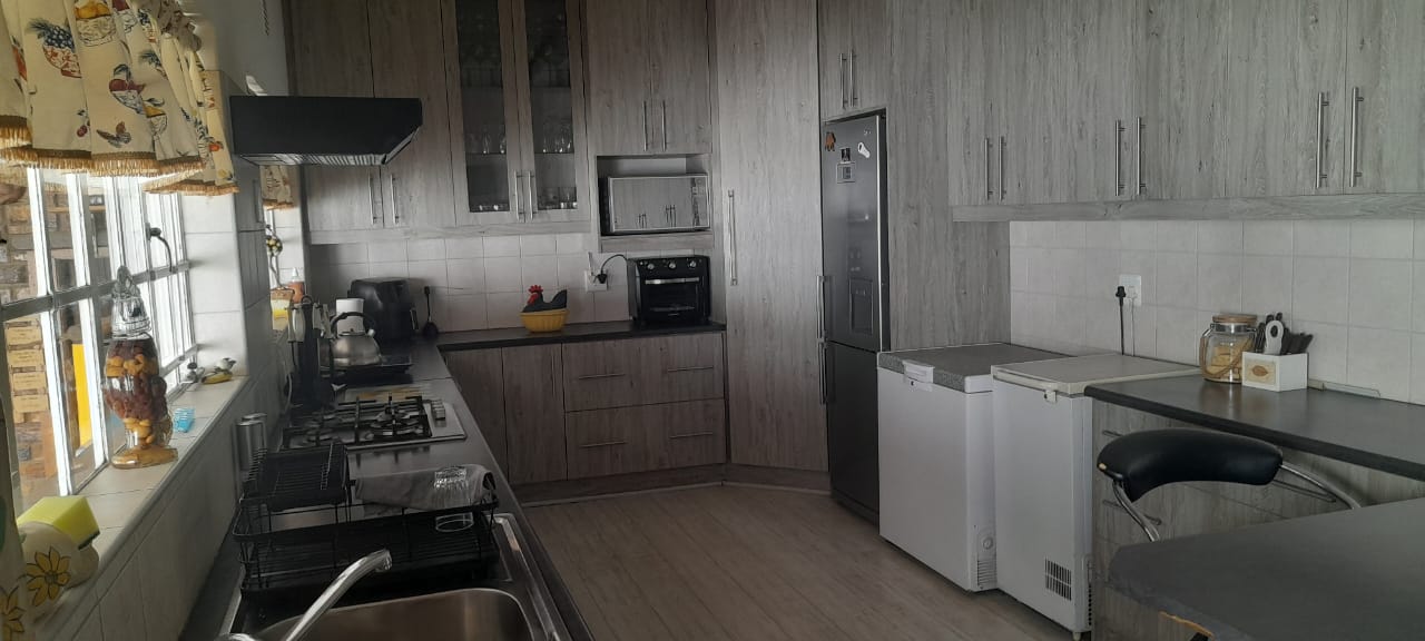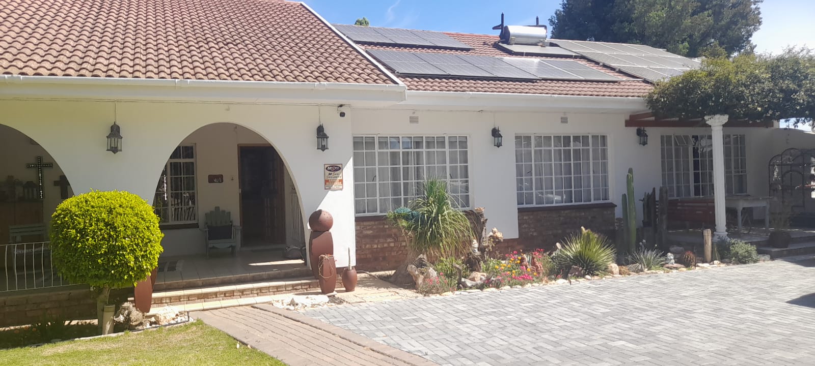The main house boasts three bedrooms with the main en-suite and a full family bathroom serving the other two rooms. A sunny stoep invites you to this exceptional property through the entrance hall, open-plan living and dining area with a Jet master and a private study to the side.