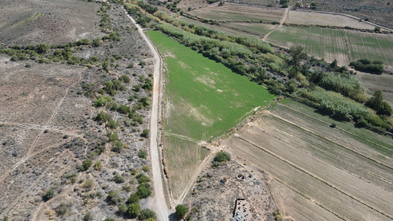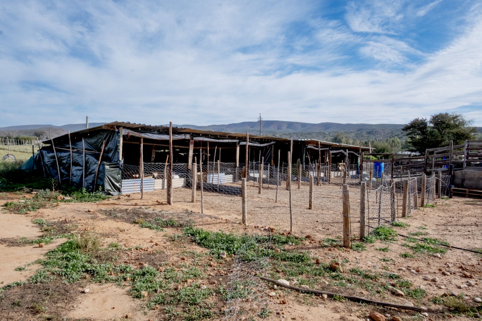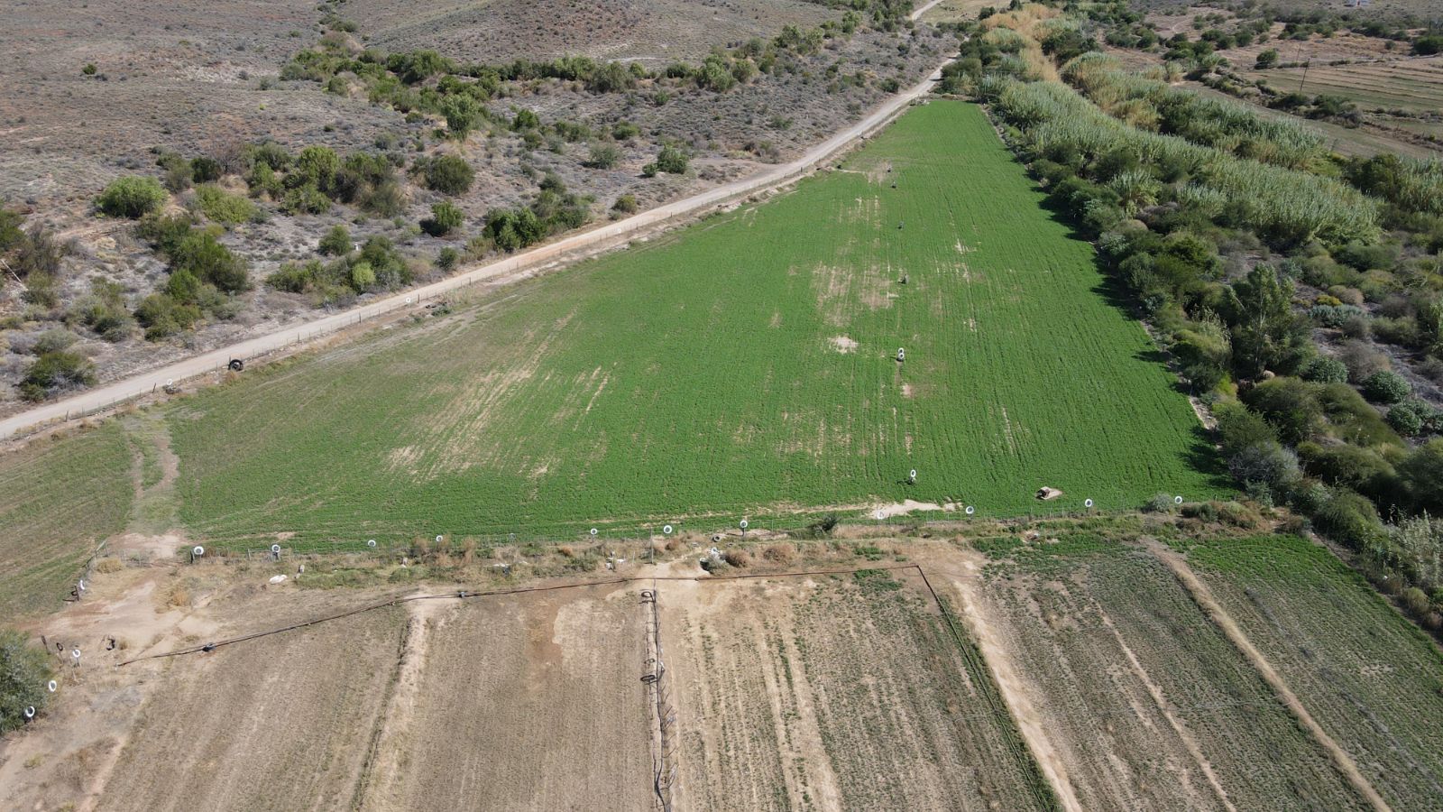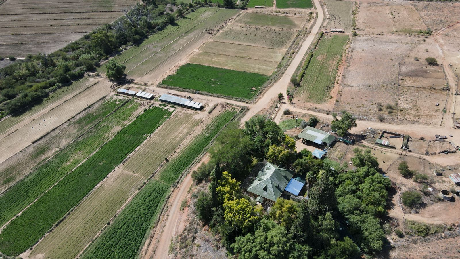 Approximately 26 hectares of well-established lucerne fields are under both sprinkler and flood irrigation, neatly divided into 32 camps. This layout is ideal for intensive livestock farming—especially sheep, Angora goats, and ostriches. An additional 8 hectares are also under sprinklers, offering expansion potential for crops or pasture.