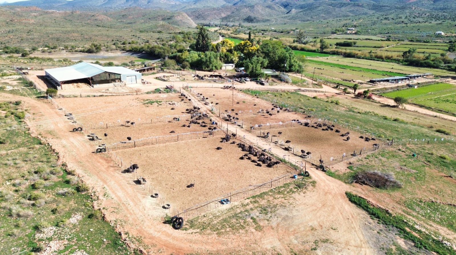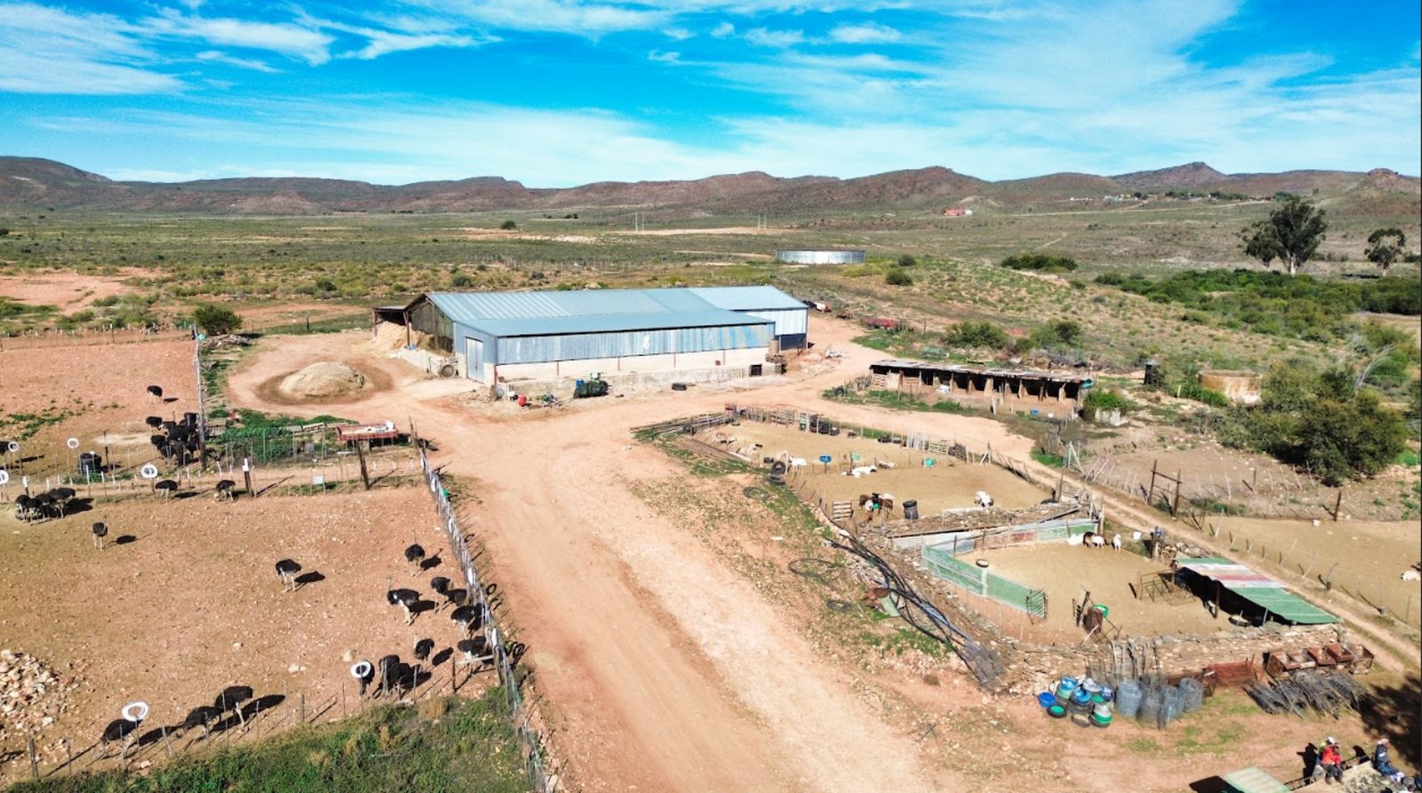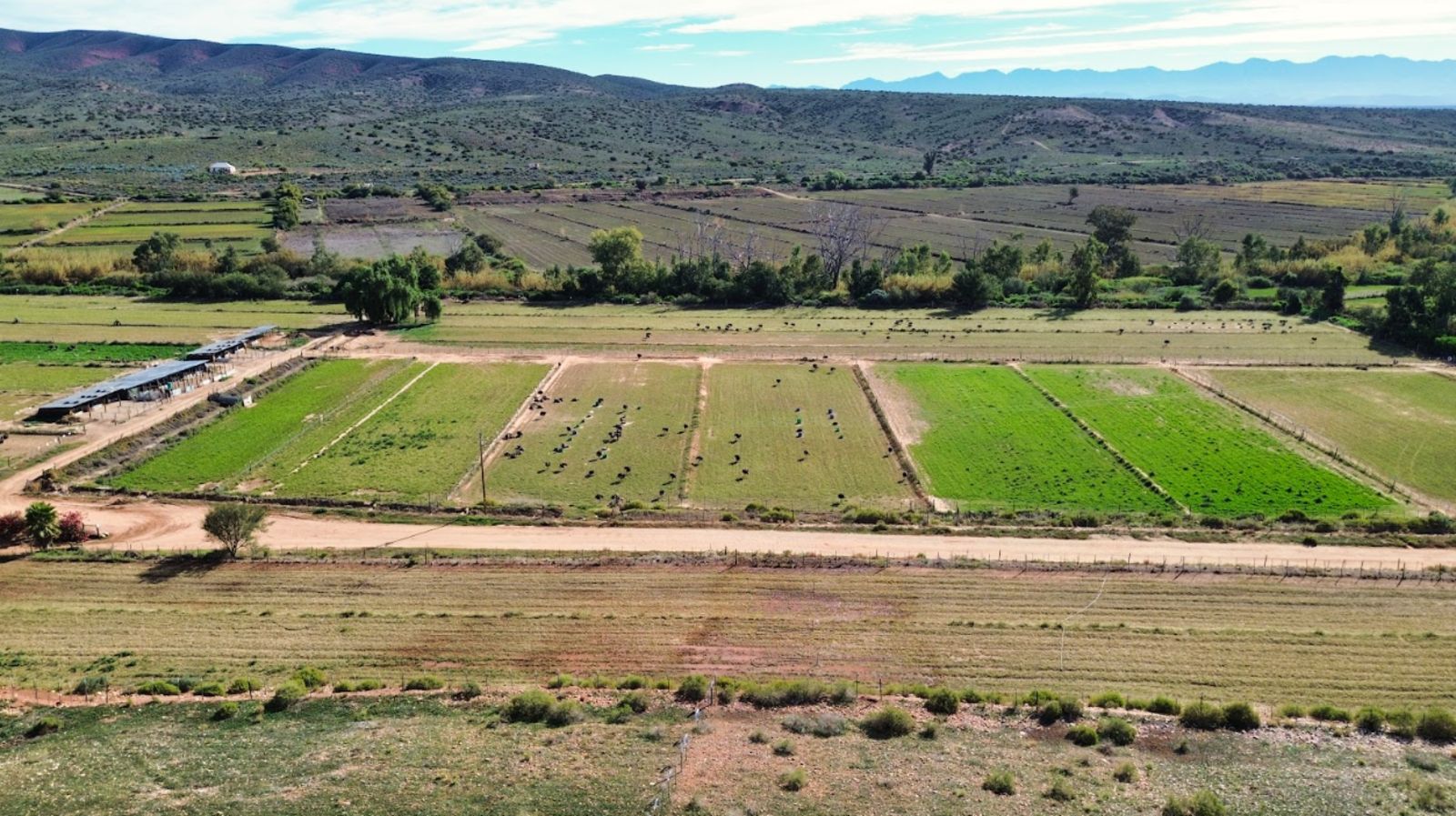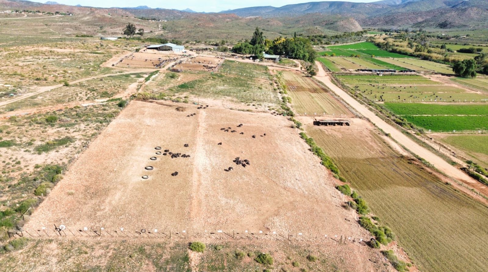 Approximately 26 hectares of well-established lucerne fields are under both sprinkler and flood irrigation, neatly divided into 32 camps. This layout is ideal for intensive livestock farming—especially sheep, Angora goats, and ostriches. An additional 8 hectares are also under sprinklers, offering expansion potential for crops or pasture.