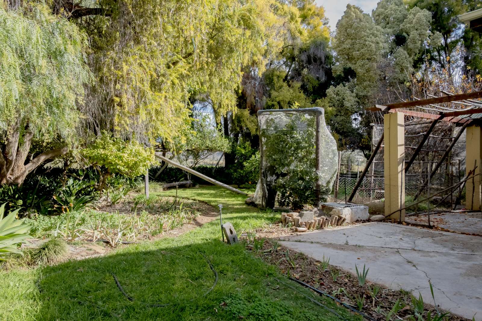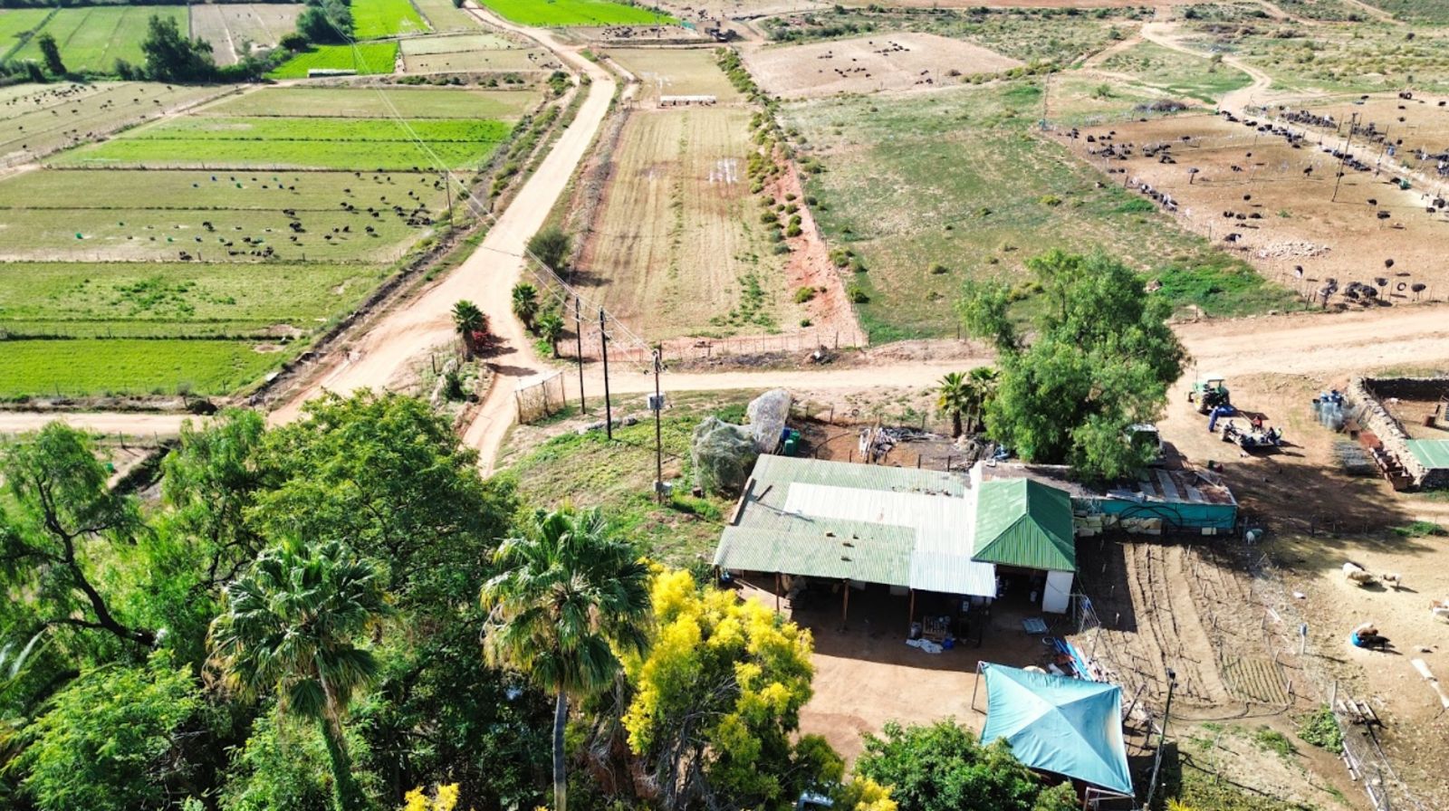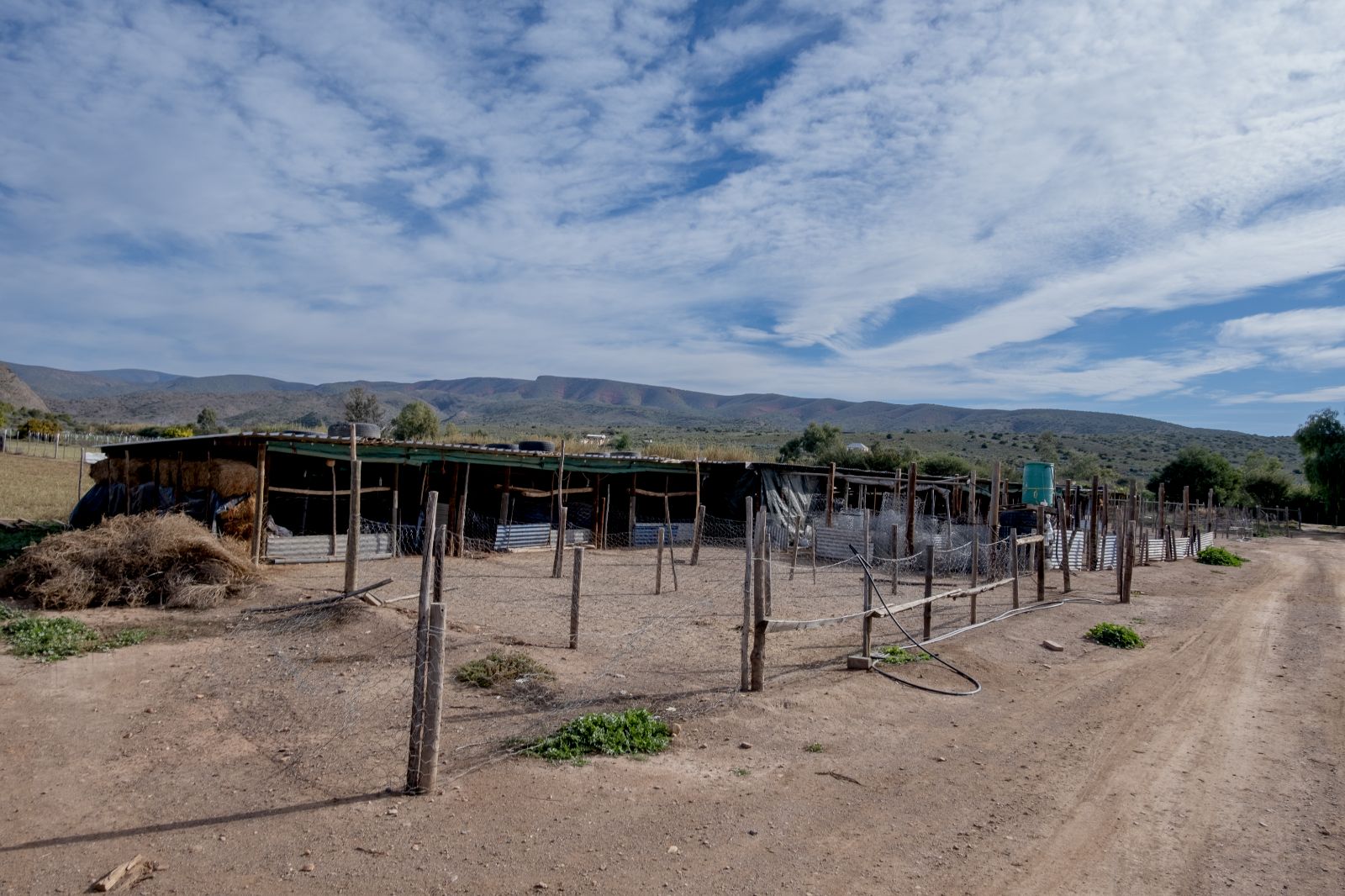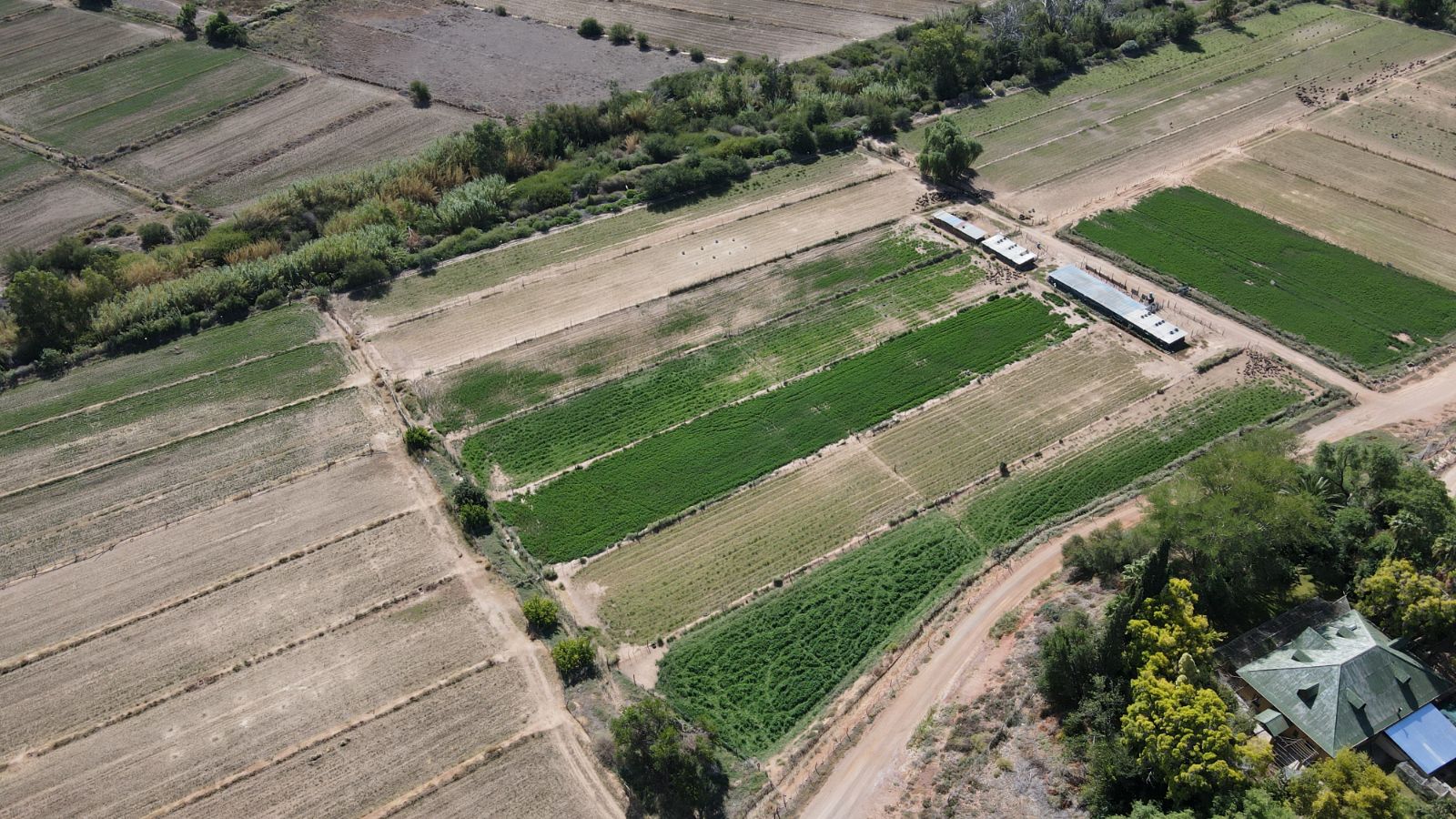 Approximately 26 hectares of well-established lucerne fields are under both sprinkler and flood irrigation, neatly divided into 32 camps. This layout is ideal for intensive livestock farming—especially sheep, Angora goats, and ostriches. An additional 8 hectares are also under sprinklers, offering expansion potential for crops or pasture.