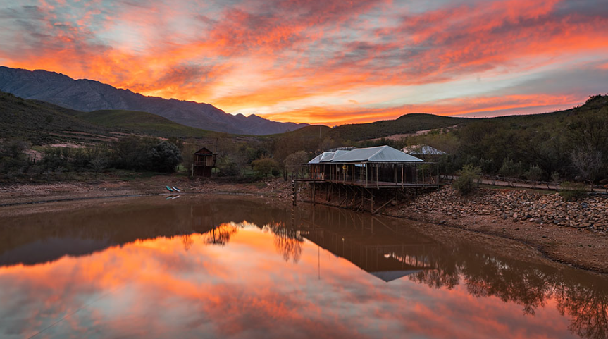 A central lapa, situated over the farm’s dam, provides uninterrupted views of the Swartberg Mountains and features convivial open-plan indoor and outdoor living areas. Enjoy the freshest, cleanest water, channelled directly from the mountains into the dams and on-site water system.
