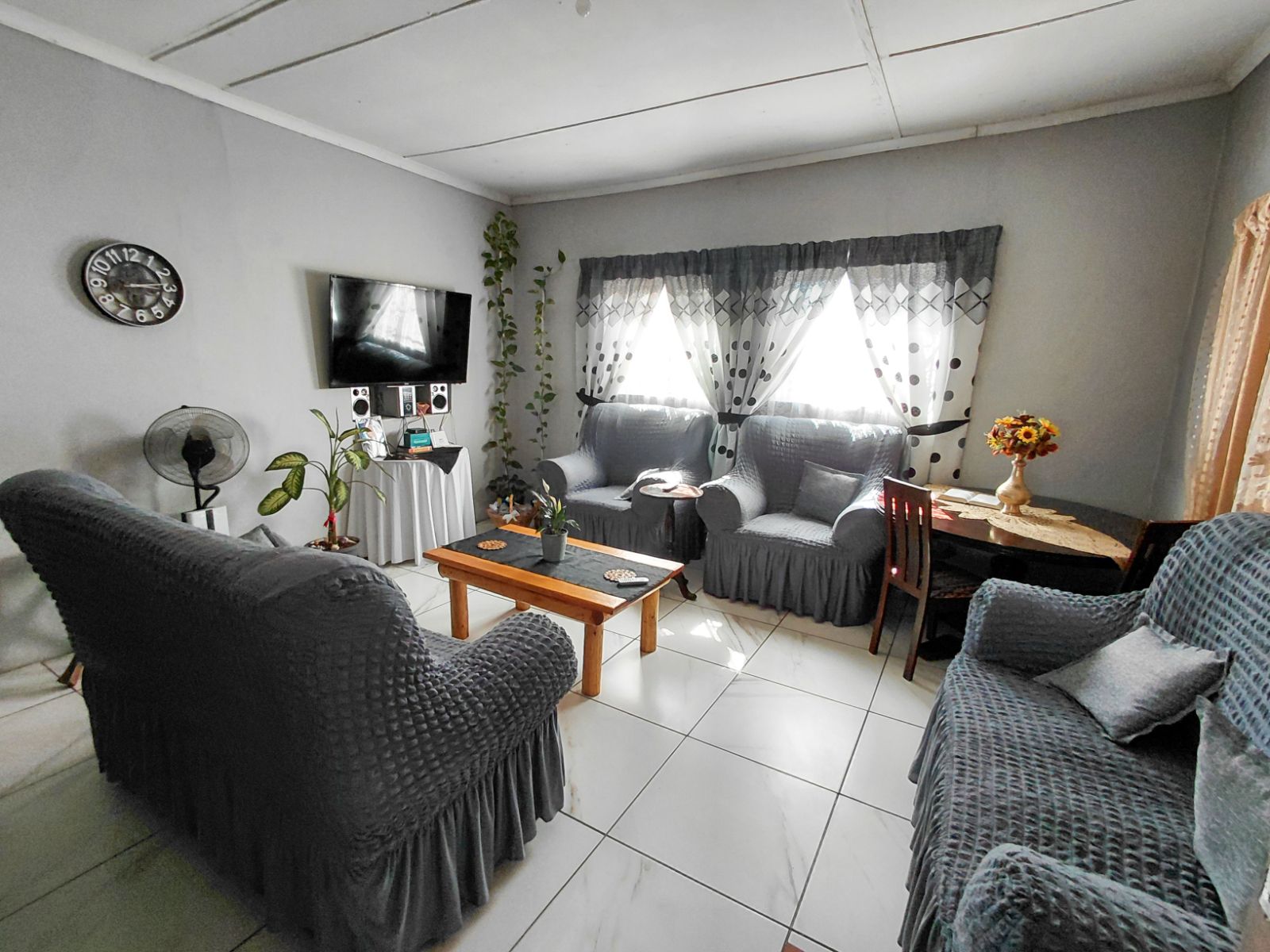 The home features two bedrooms, a bathroom, a comfortable lounge, a functional kitchen, and an enclosed patio that adds extra living space.