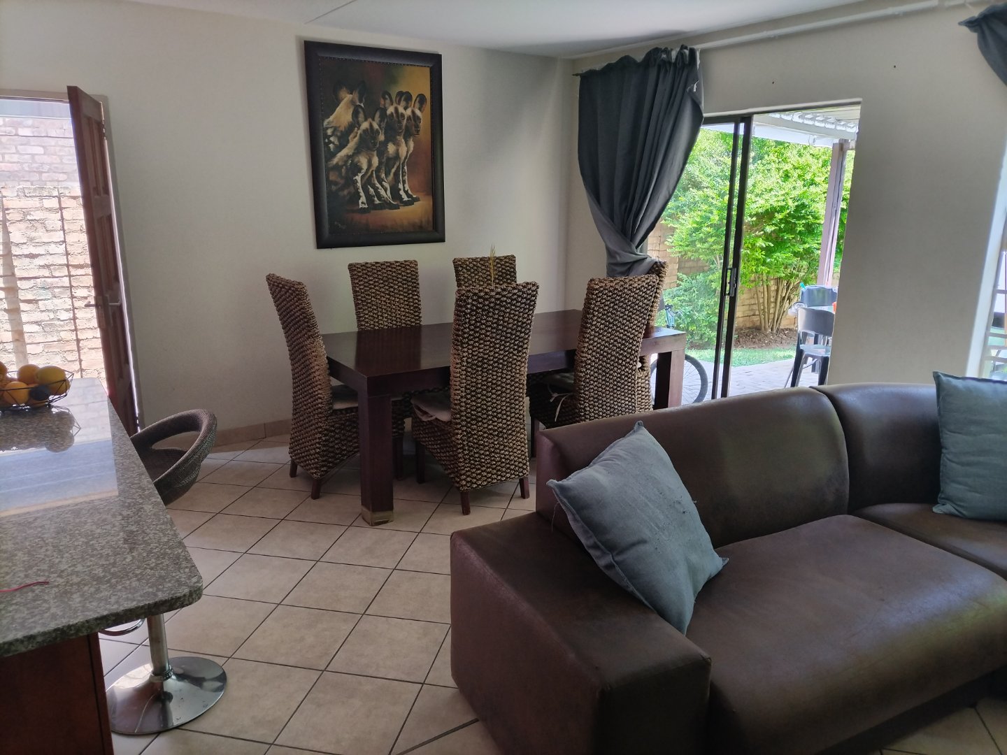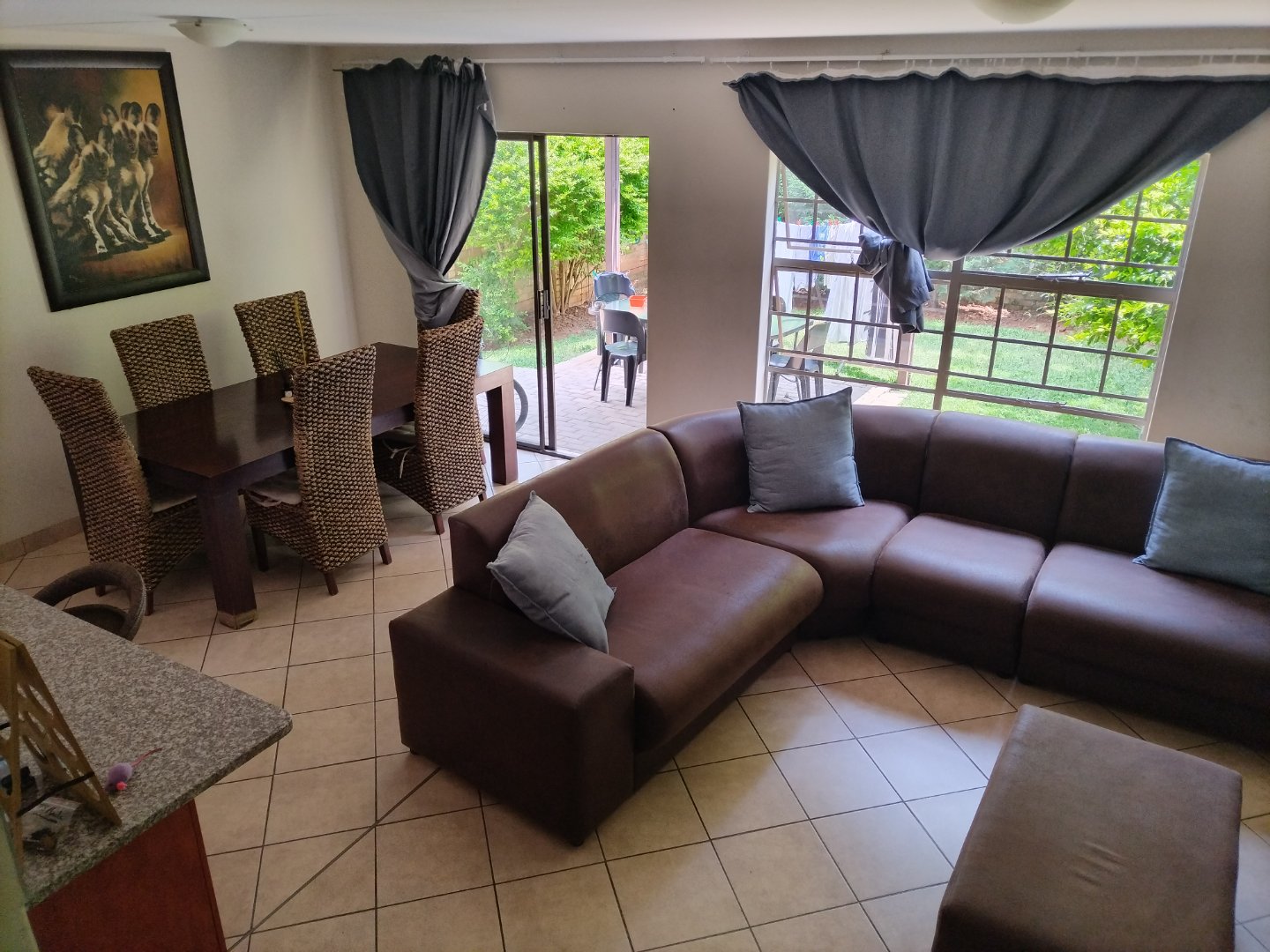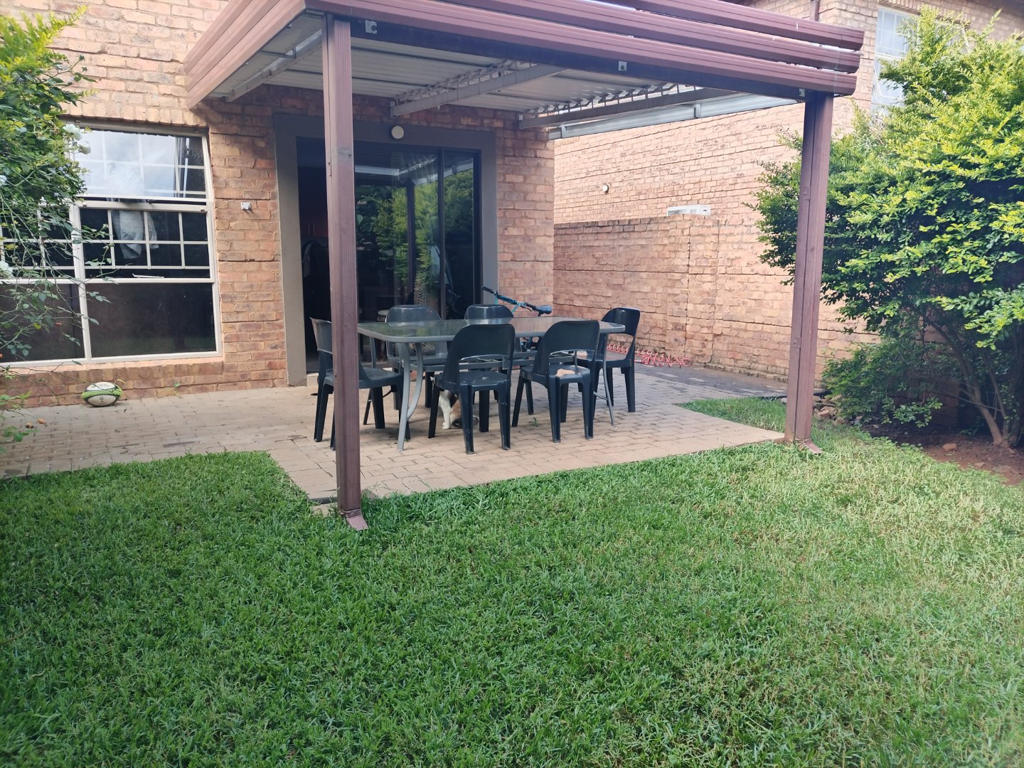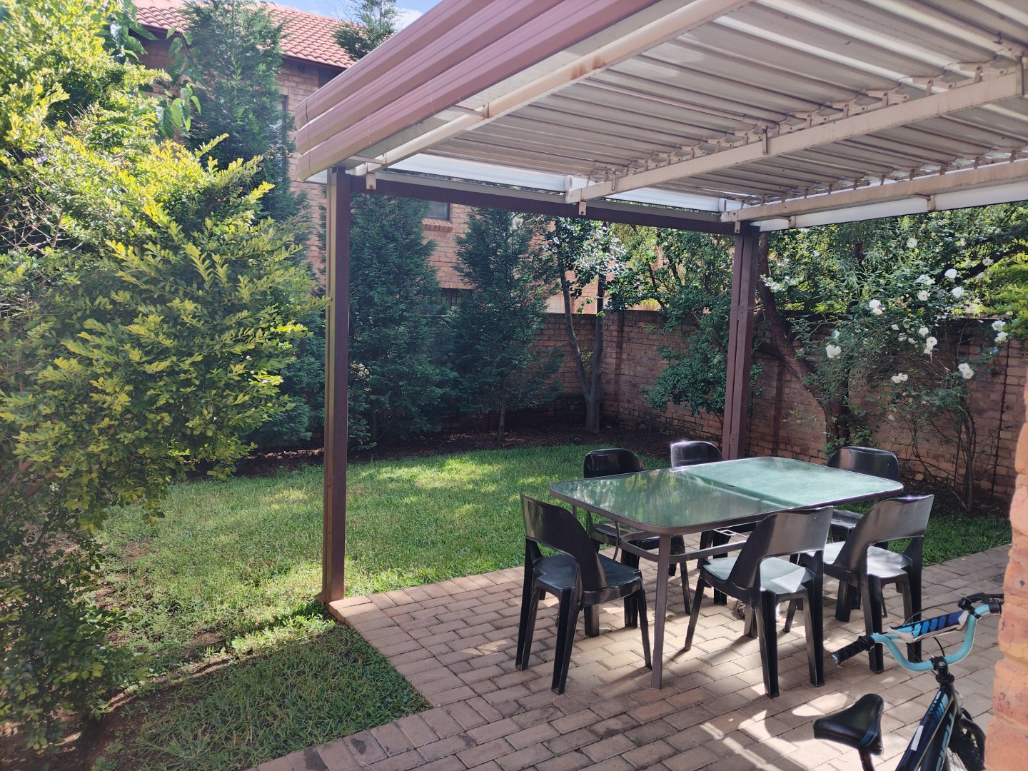 Gorgeous 4 Bedroom, two full bathrooms (main en-suite), landing, storeroom, double lock-up garage, open plan living/dining room with kitchen, opening onto covered patio and large private garden. This neat duplex is situated in the very popular and safe Marula Hazeldean, Oukraal Estate, walking distance to Curro Primary & High Schools, within the broader Silver Lakes area. Marula complex offers gated security, adequate guest parking, and a large kids' play park, and is renowned for a child-friendly, family-oriented estate.