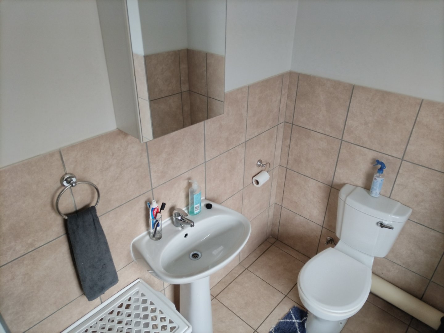 The ground floor features an open-plan living, dining, and kitchen, with an outdoor patio ideal for a relaxing braai area in the private garden. Upstairs is a large bathroom with a tub, and 3 spacious bedrooms with abundant BIC for storage. The main bedroom, being ensuite, features a shower bathroom.