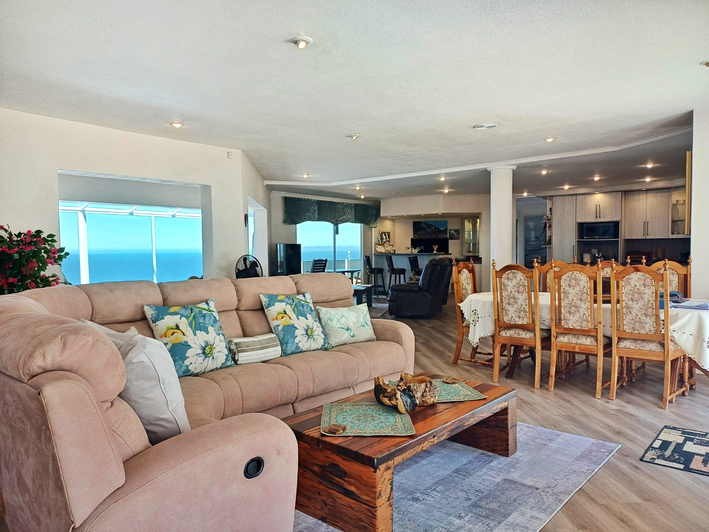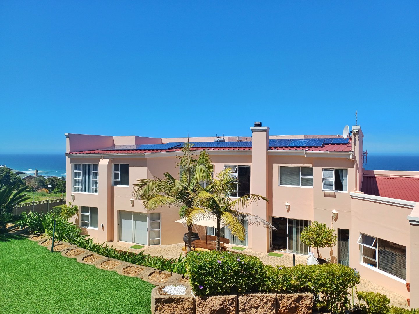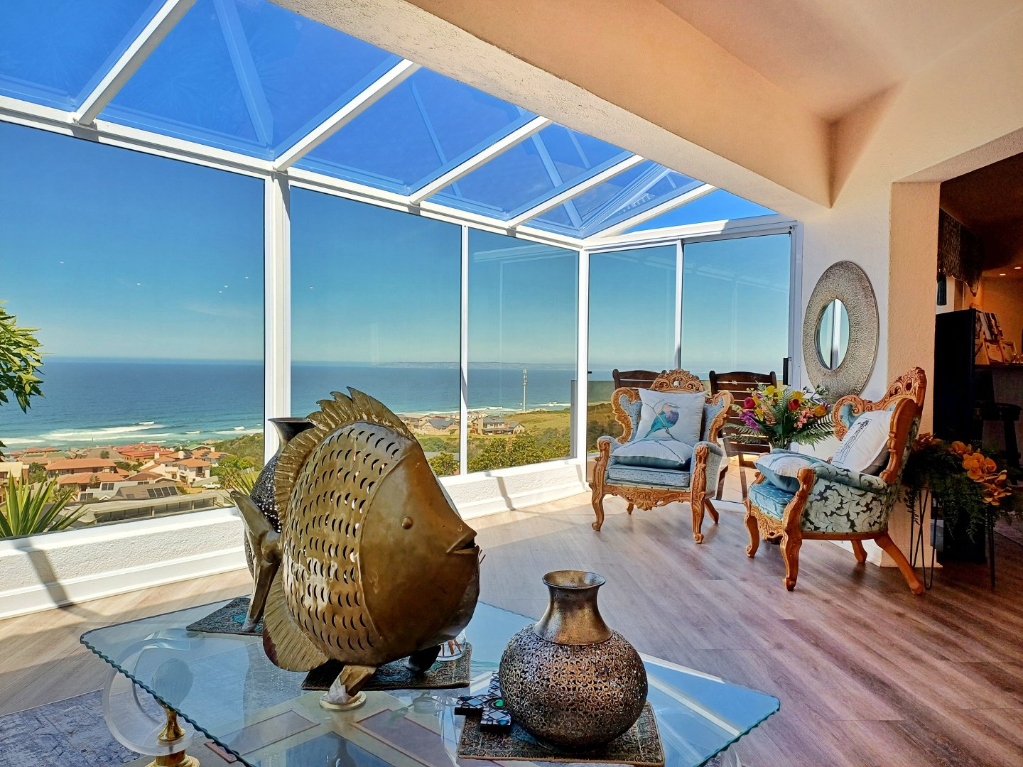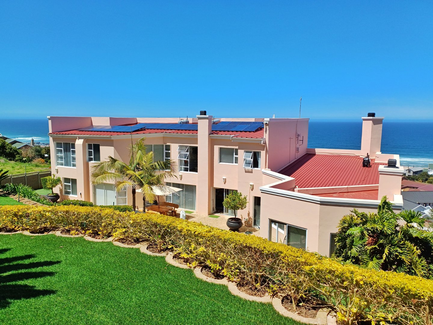 This light-filled home designed with the entertainer in mind has been thoughtfully crafted across three levels to accommodate a larger family. Located in Outeniquastrand, this residence combines luxury, comfort, and convenience with with panoramic ocean views throughout the home.