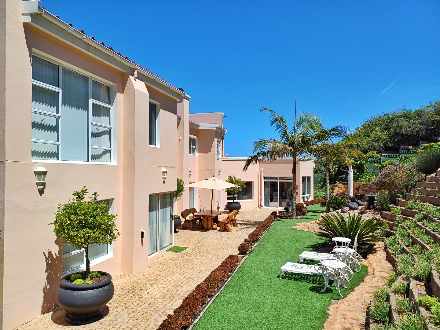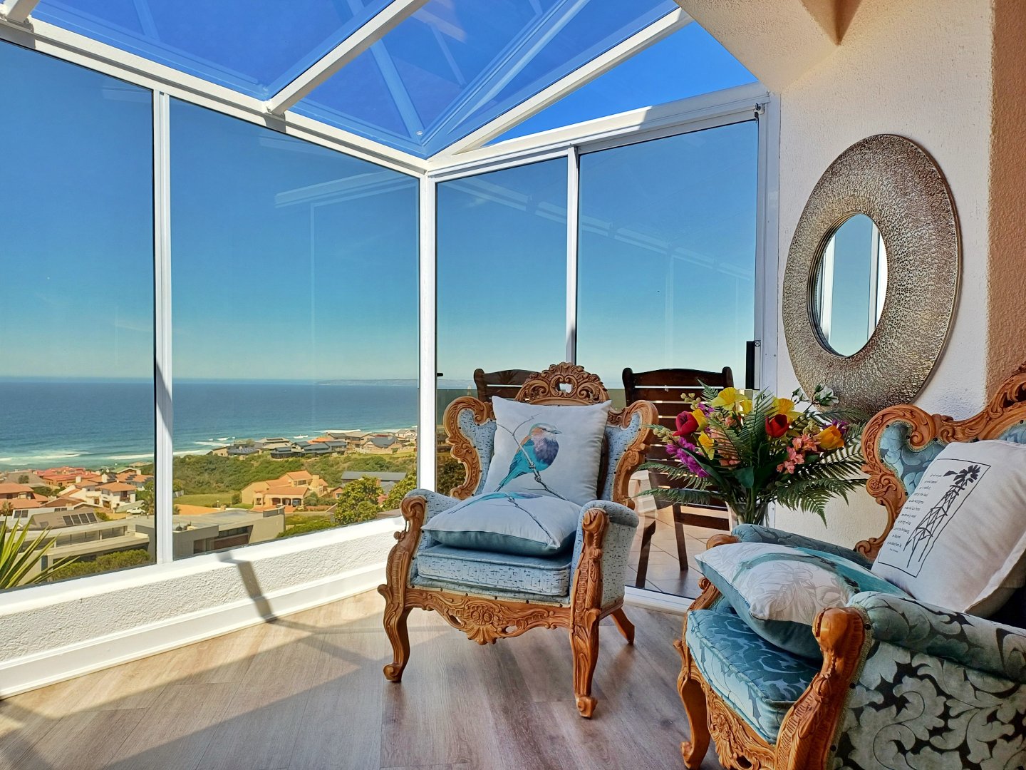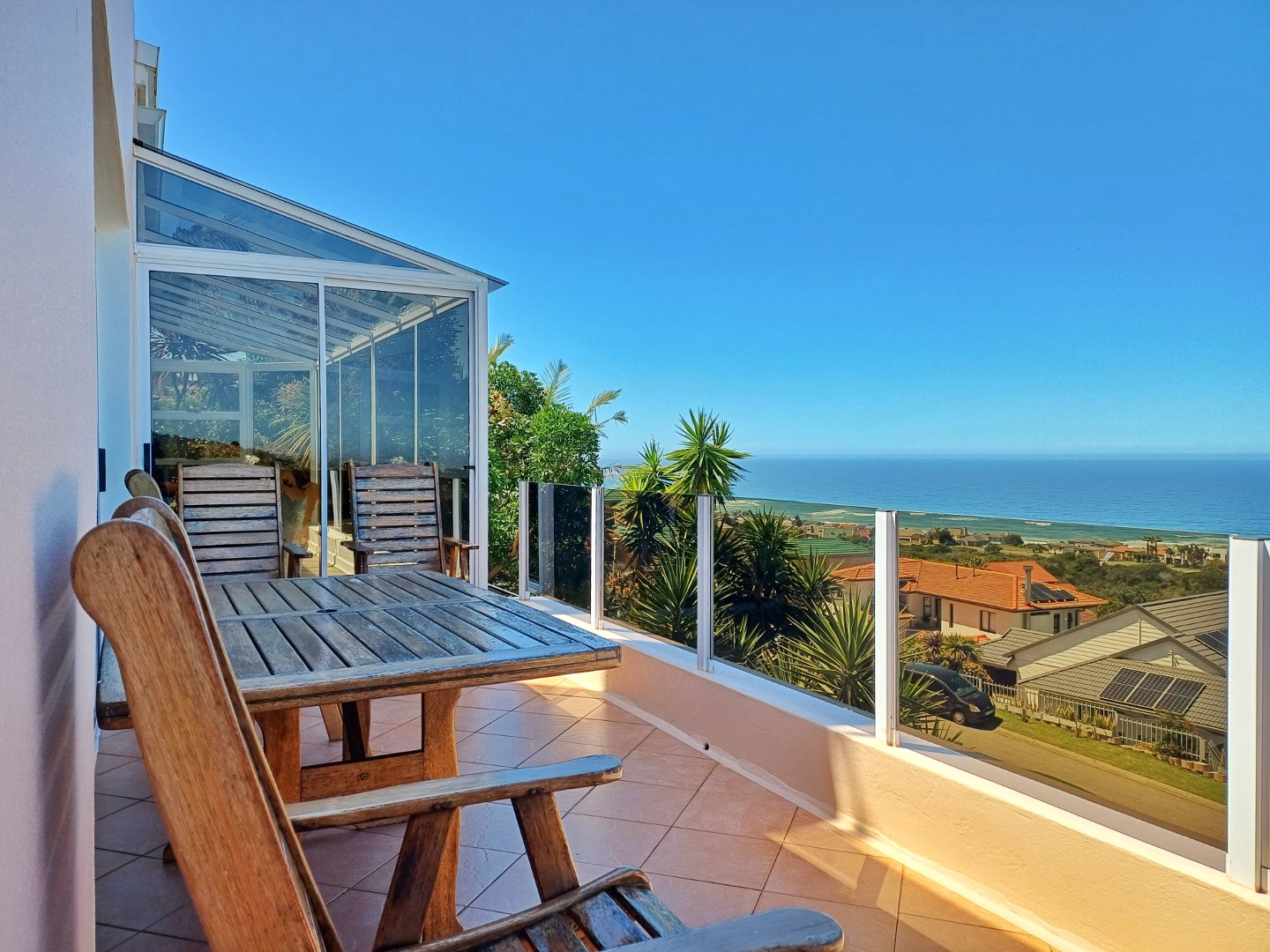 This light-filled home designed with the entertainer in mind has been thoughtfully crafted across three levels to accommodate a larger family. Located in Outeniquastrand, this residence combines luxury, comfort, and convenience with with panoramic ocean views throughout the home.