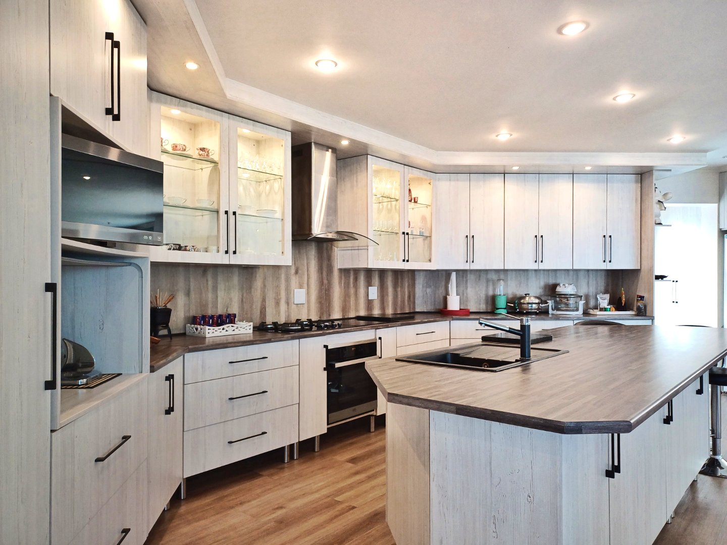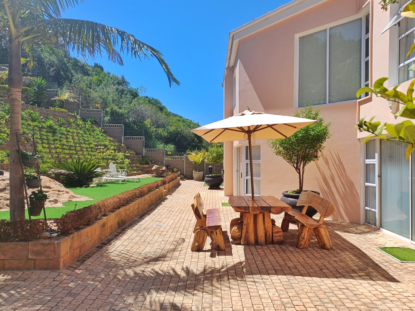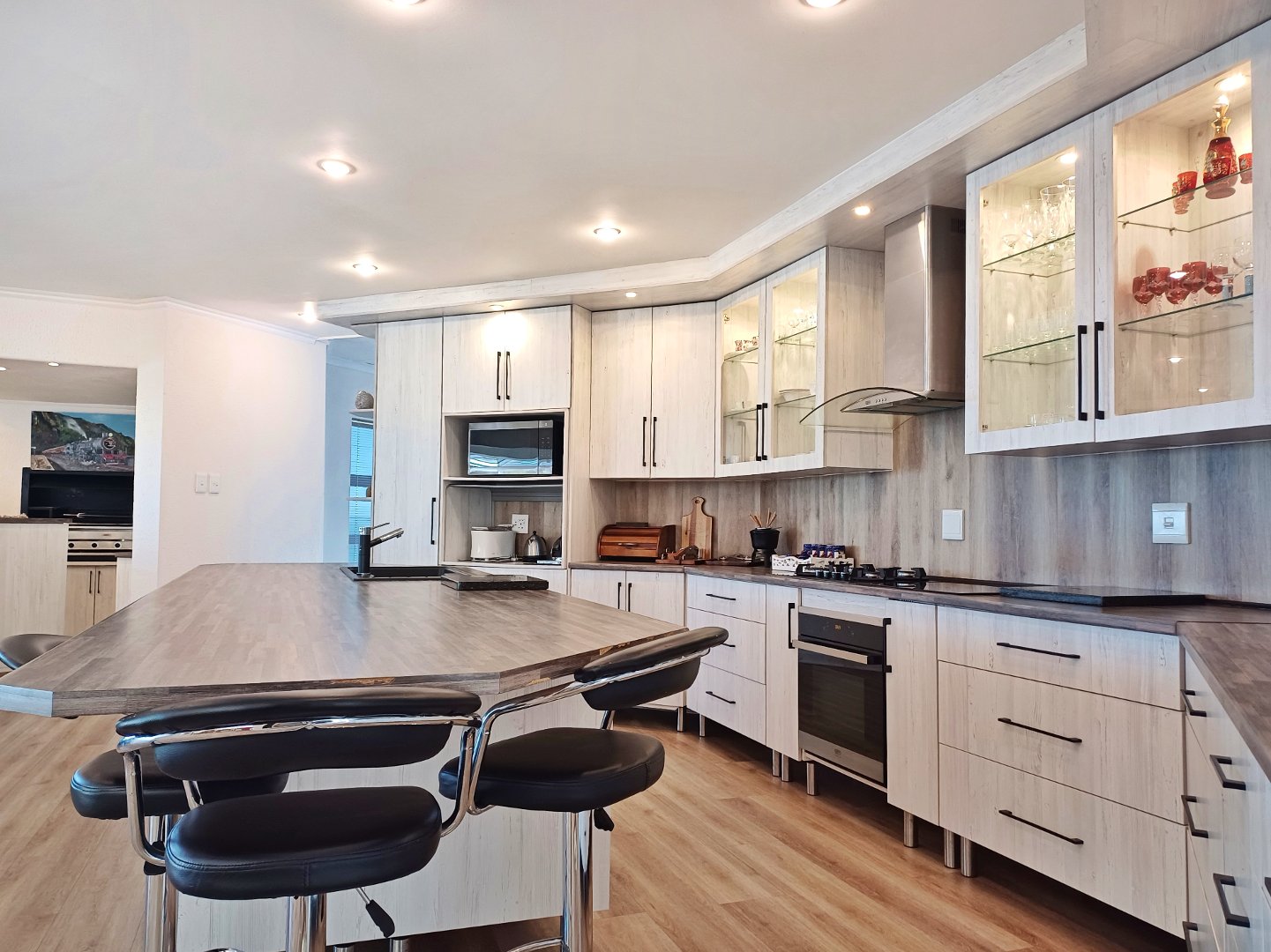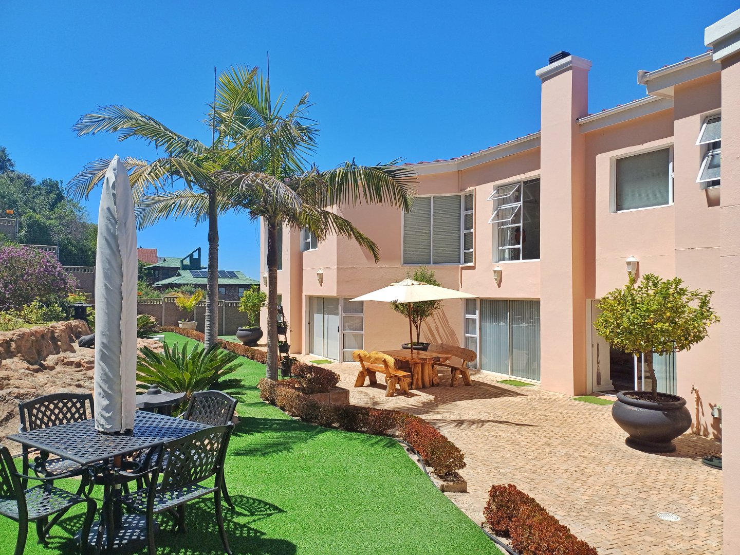 This light-filled home designed with the entertainer in mind has been thoughtfully crafted across three levels to accommodate a larger family. Located in Outeniquastrand, this residence combines luxury, comfort, and convenience with with panoramic ocean views throughout the home.