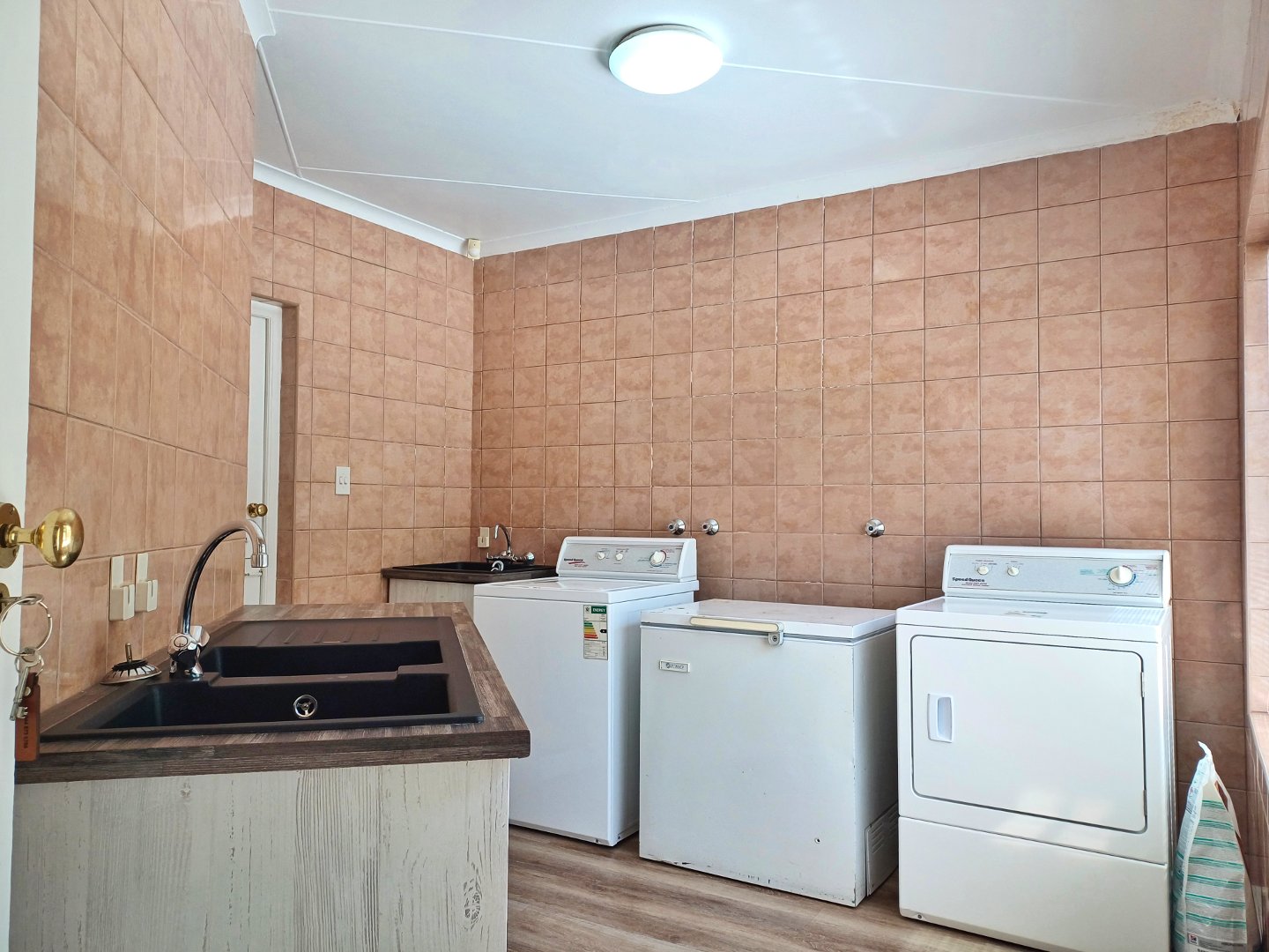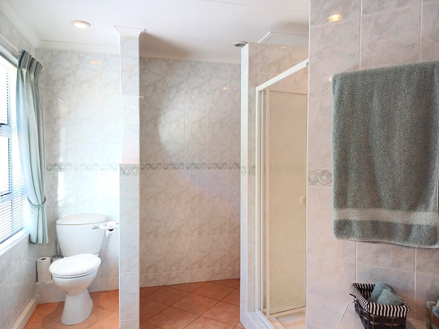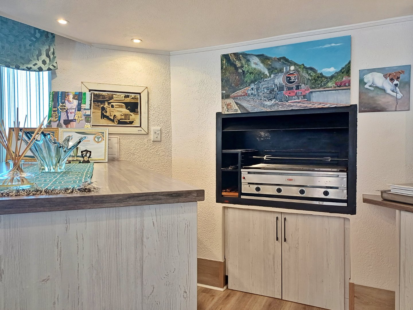 The first floor unveils an impressive, open-concept living area that flows effortlessly between the lounge with fire place, family room and dining space to a stylish corner bar. The bar, complete with a built-in gas braai, is perfect for gatherings. The kitchen completes the area and is an entertainer's dream, equipped with both gas and electric hobs, an oven, and ample cabinetry. A separate scullery and laundry room add convenience, while large windows frame captivating ocean views. This level also features an enclosed braai area for indoor-outdoor entertaining and a spacious guest suite with its own en-suite, living space, and kitchenette, offering privacy for family or visitors.