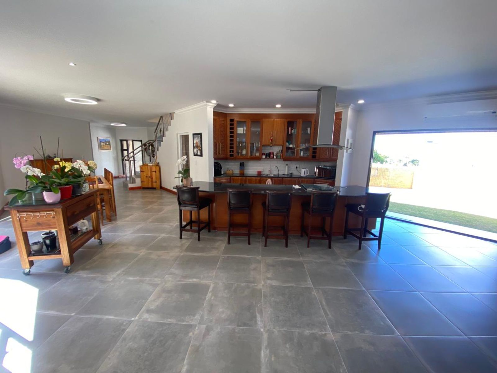 Designed with comfort and style in mind, the property features air conditioning throughout to ensure an ideal indoor climate all year round. The spacious interior layout includes multiple living areas, perfect for family gatherings and relaxation. A highlight of the home is the dedicated braai room, an inviting space designed for socializing and entertaining, blending indoor comfort with outdoor lifestyle pleasures.