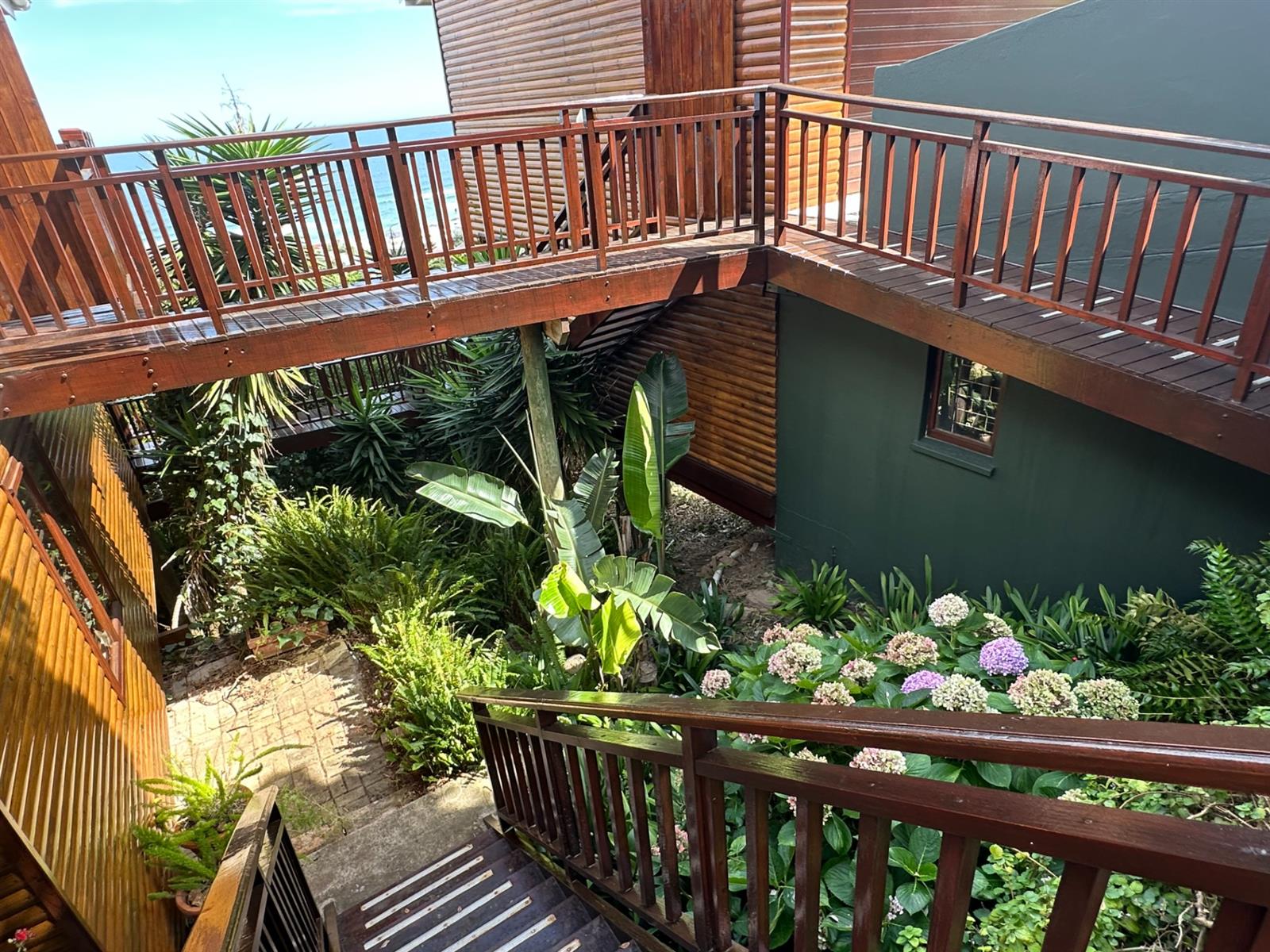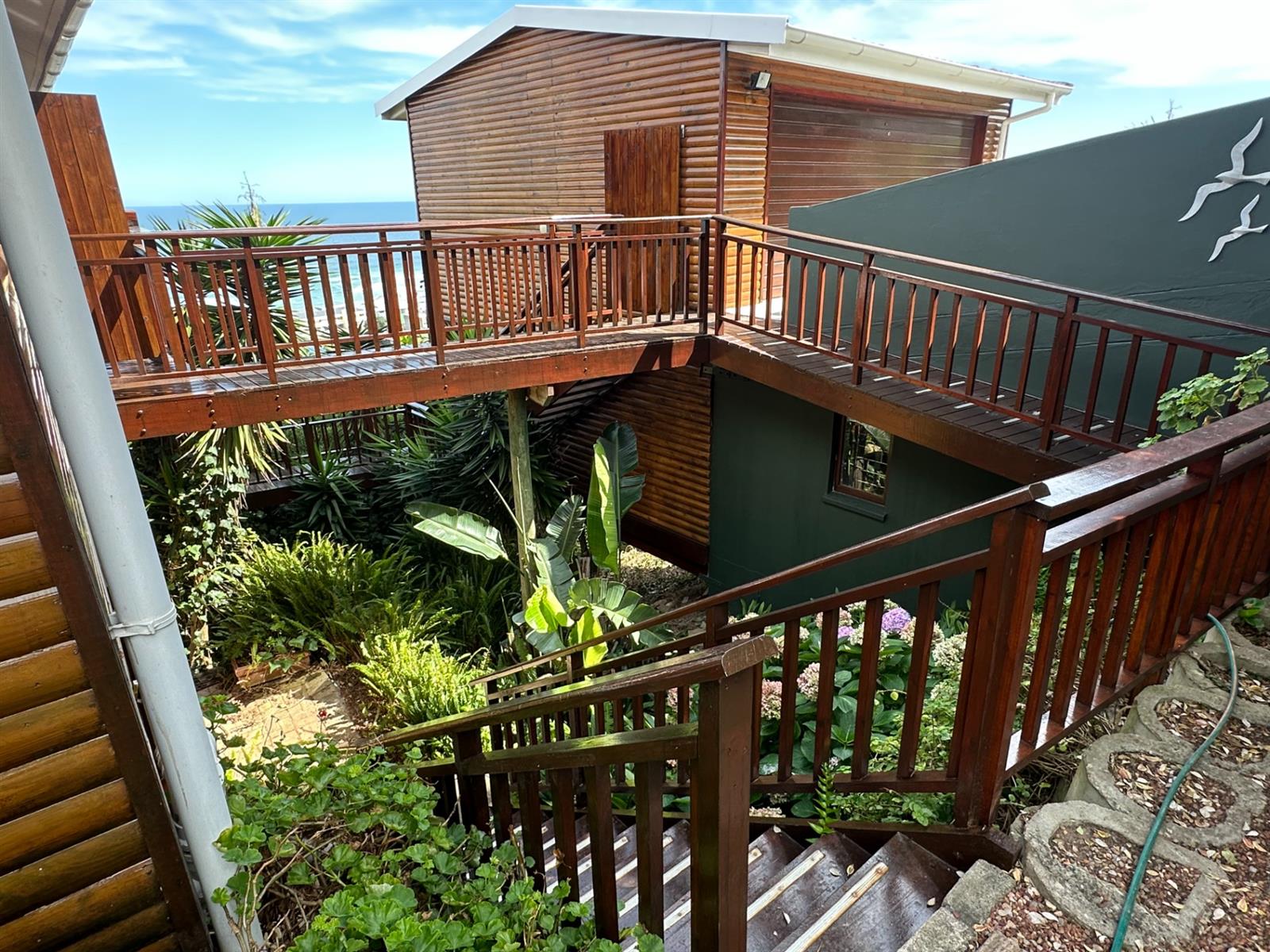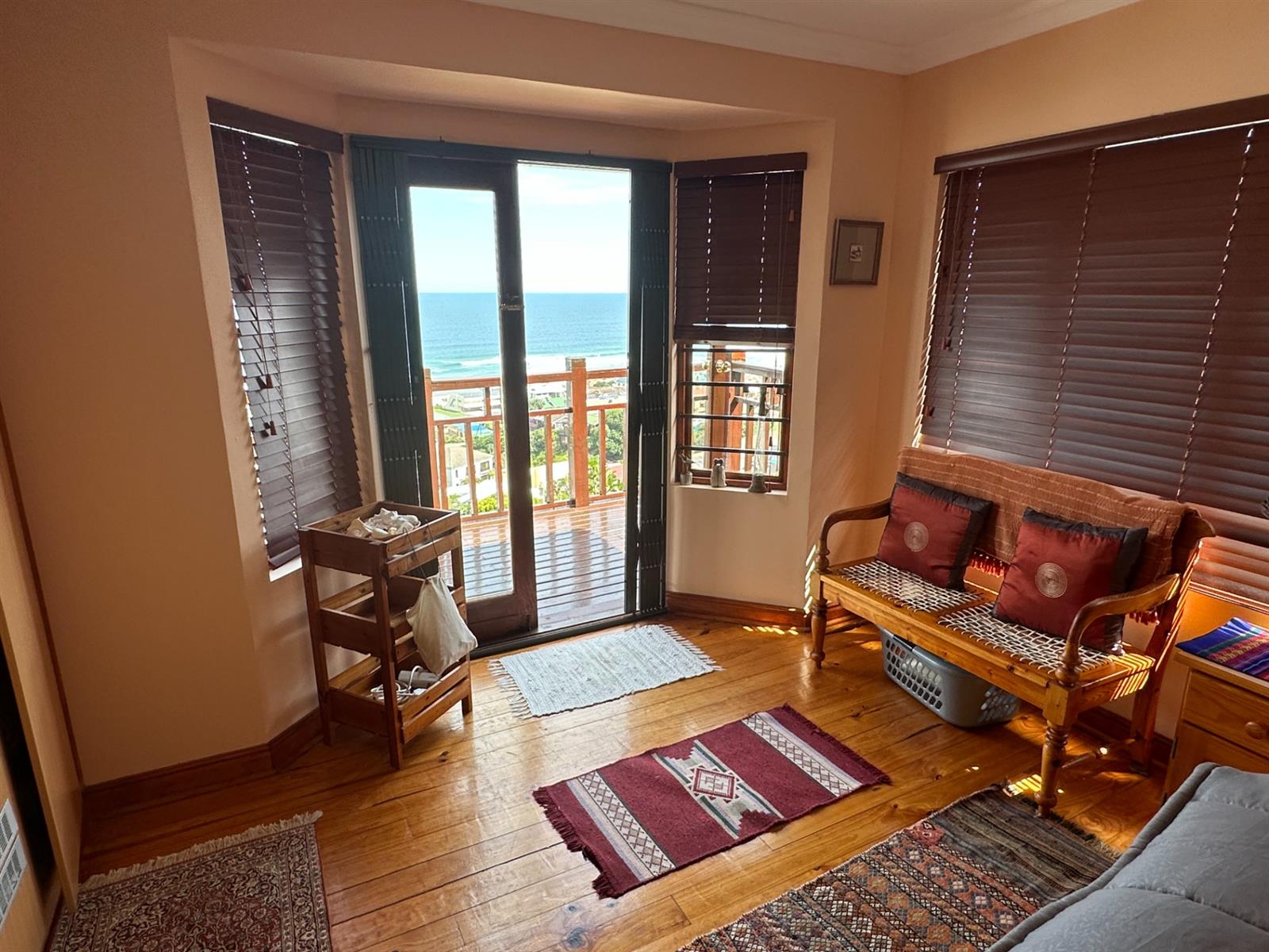 Ground level: Living area with a lounge, dining room, and kitchen. It mirrors the upper level with three bedrooms and one full bathroom, offering multi-generational living or rental potential. The lounge leads to a large covered stoep with an outstanding sea view.