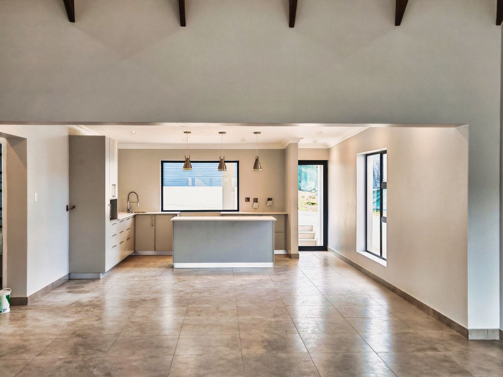 As you enter the home, you’re welcomed into an open-plan living area that includes a stylish kitchen, dining space, and a built-in braai — all designed to maximize comfort and sociability. Large windows and sliding doors invite you to enjoy the scenic views of lush greenery, with sightings of aloes in bloom and wild animals occasionally wandering through the surrounding fields. A nearby dam serves as a watering hole for wildlife, enhancing the authentic bushveld experience.