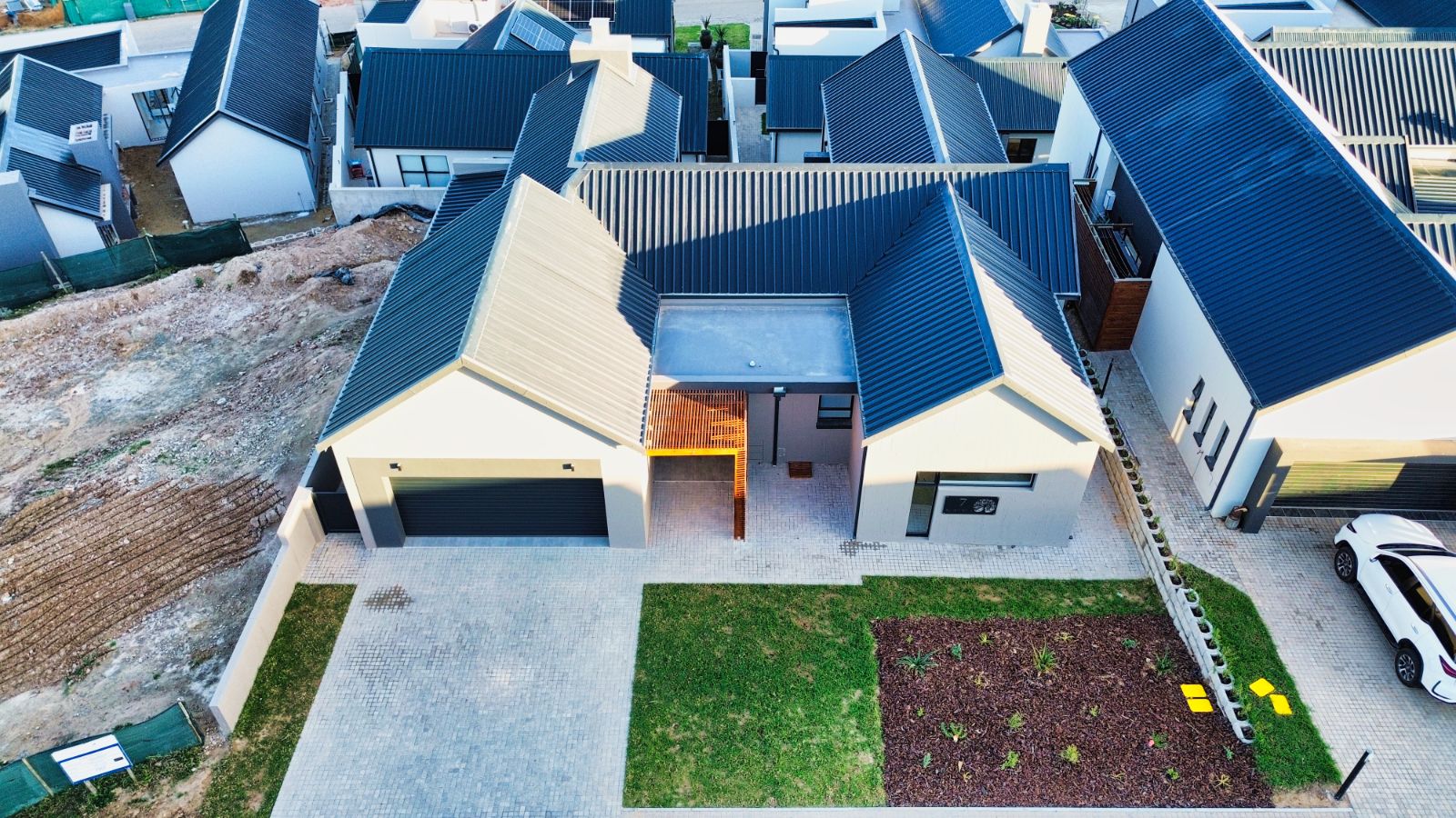 Discover the perfect blend of modern elegance and nature-inspired living in this newly built 5-bedroom home, nestled in the heart of the secure and sought-after Outeniquasbosch Wildlife Estate.