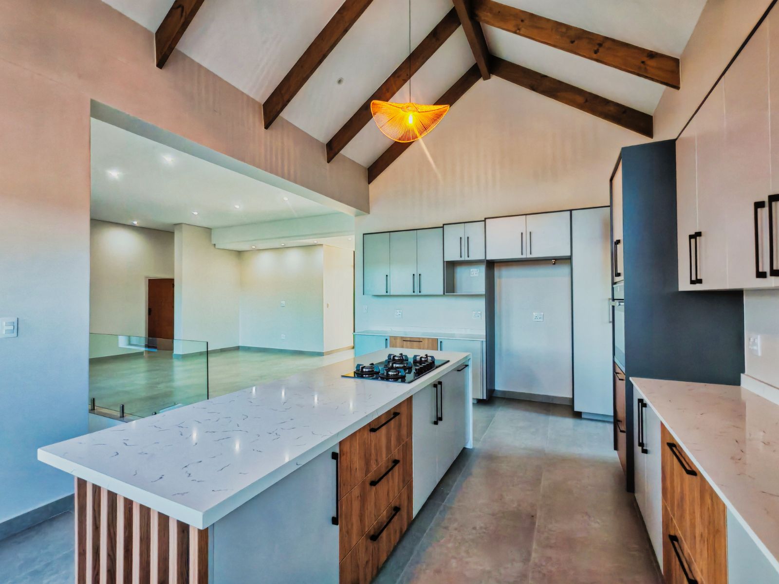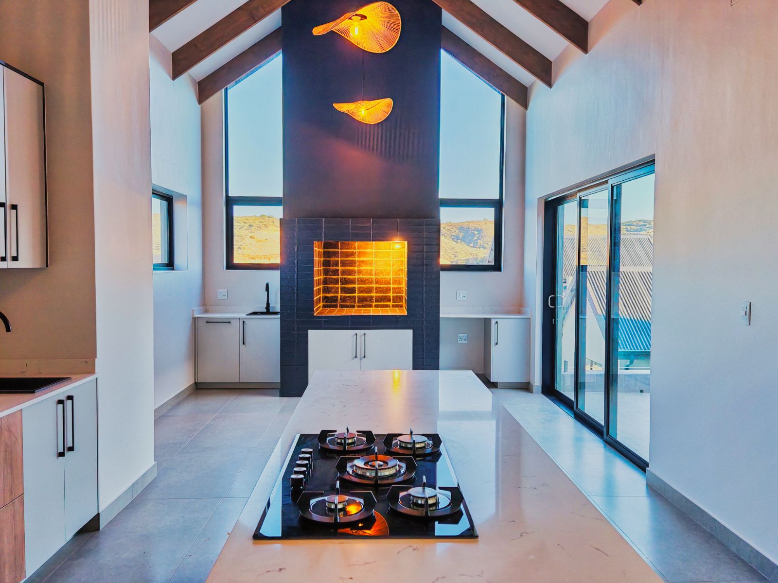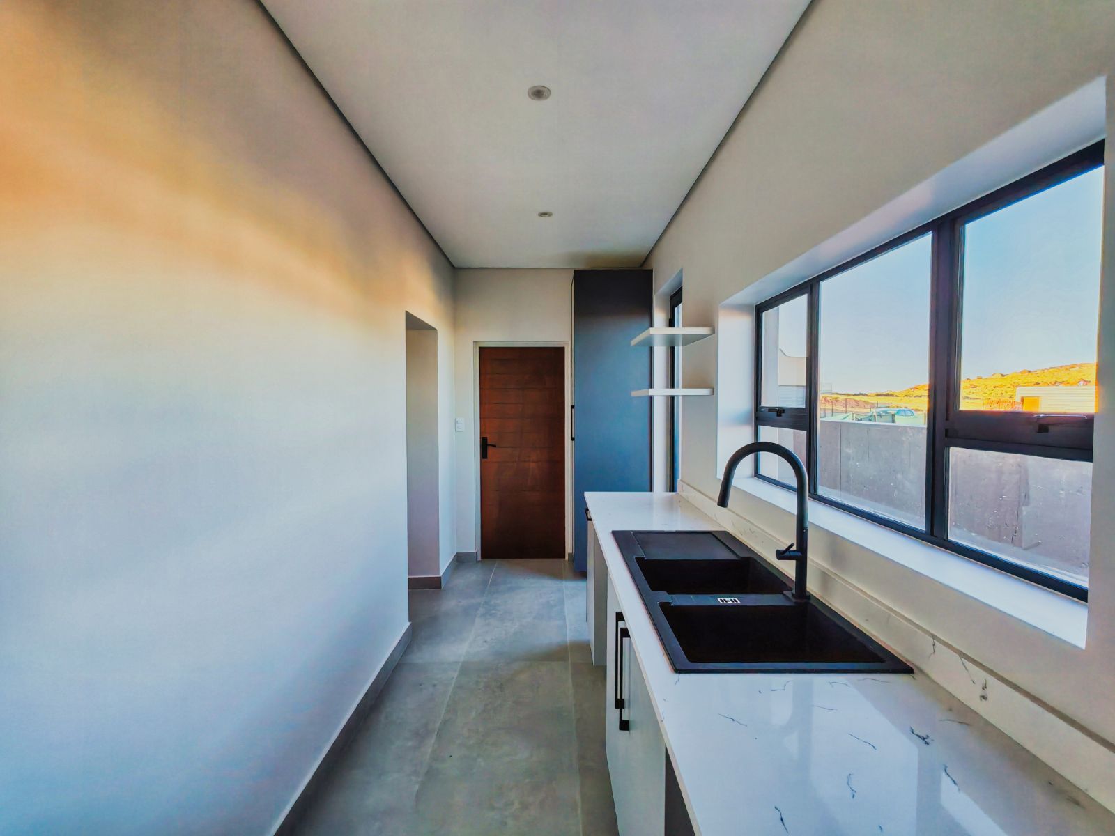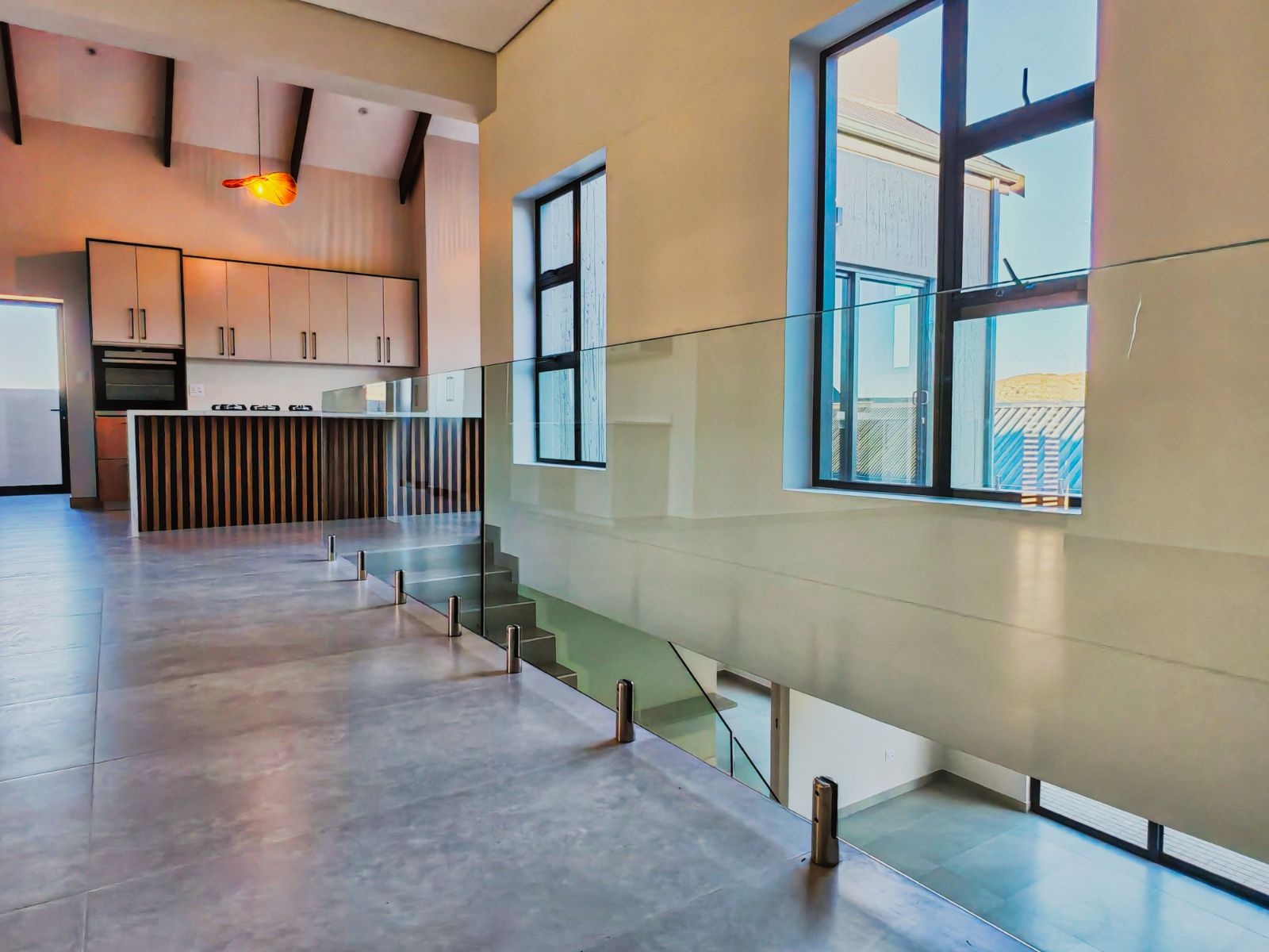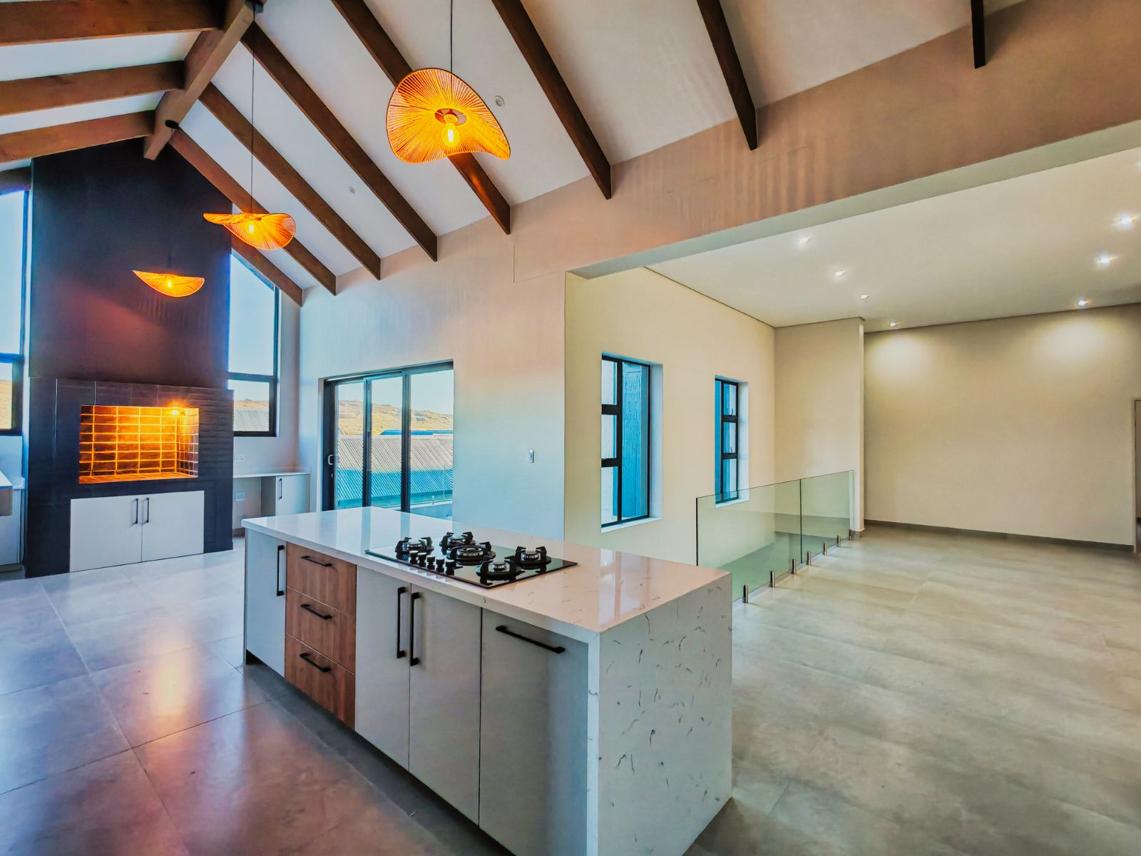 Step inside to a striking open-plan layout that welcomes you with natural light and seamless flow. The stylish formal lounge is positioned Infront, while right the ultra-modern designer kitchen boasts sleek finishes, a separate scullery, and direct access from the double automated garage. Entertain in style with a built-in braai area and expansive sliding doors opening onto a spacious balcony — the perfect spot to enjoy breathtaking sunsets over the western horizon.