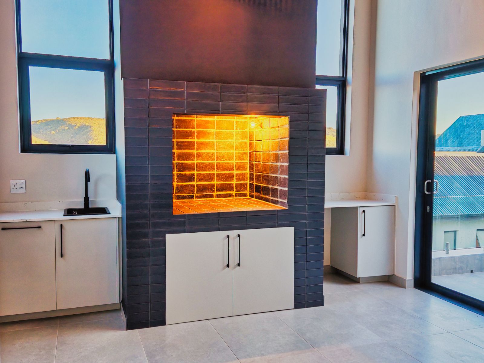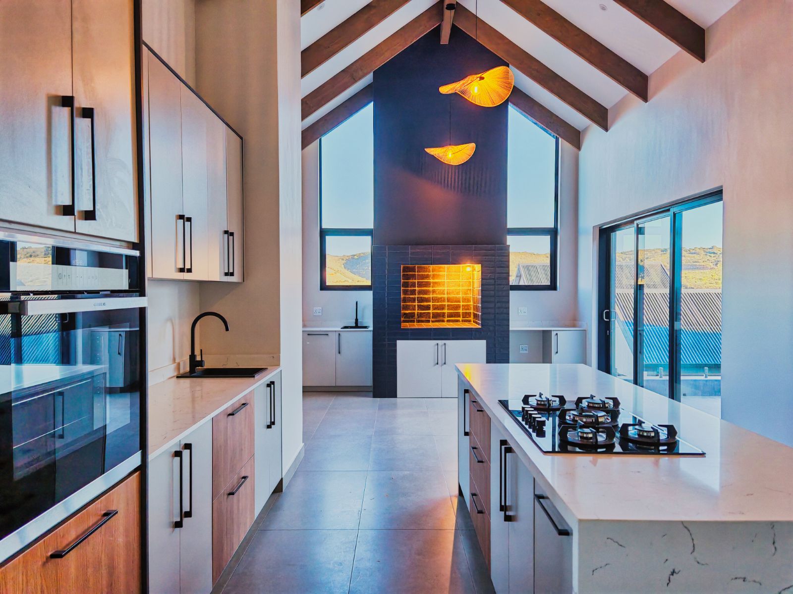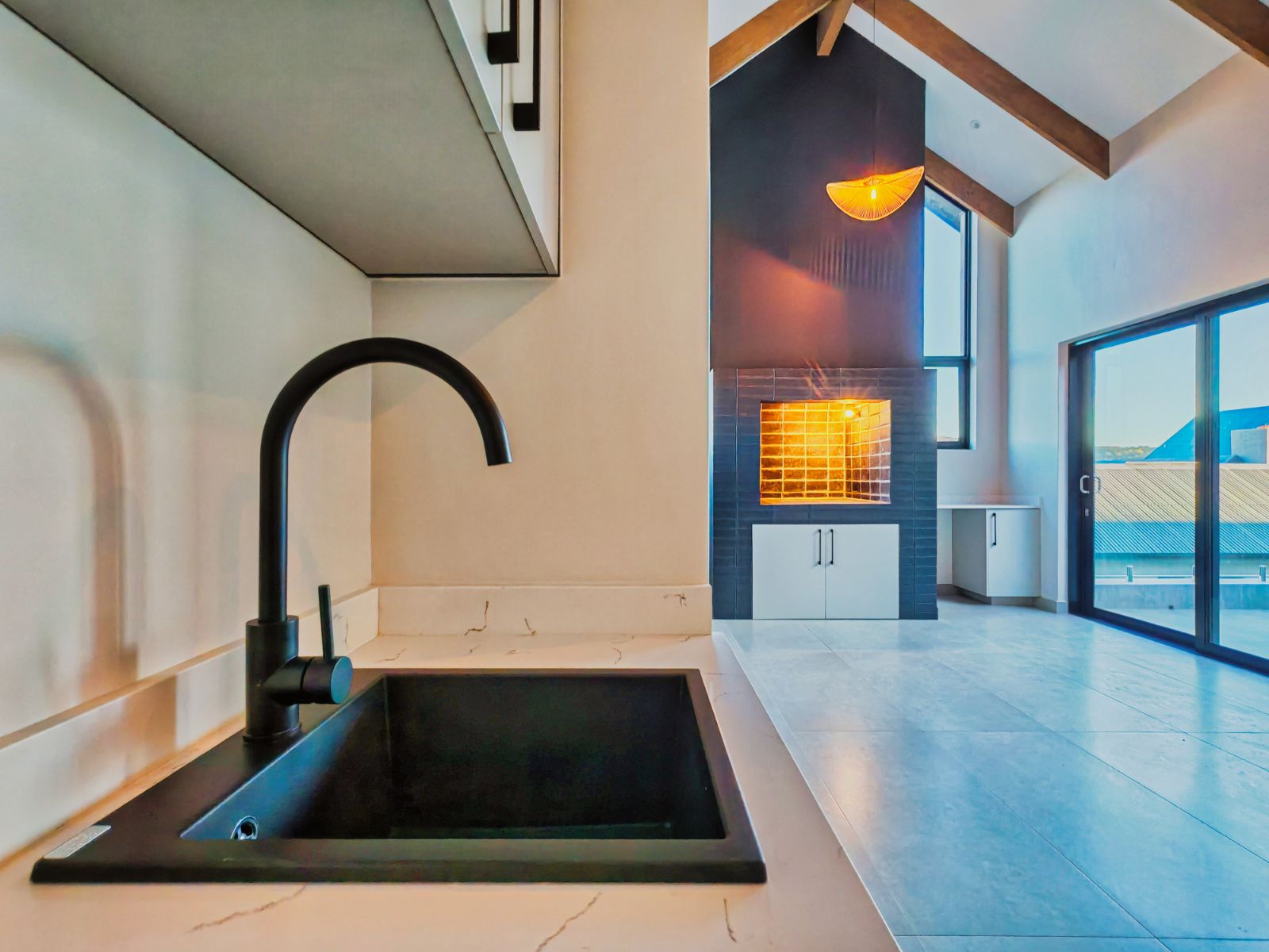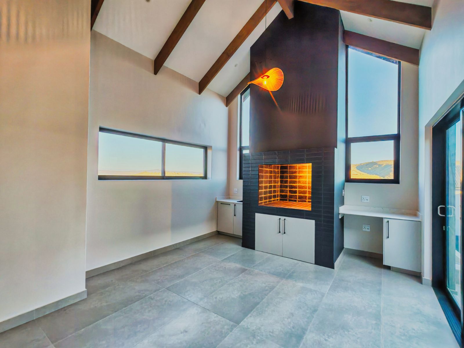 Step inside to a striking open-plan layout that welcomes you with natural light and seamless flow. The stylish formal lounge is positioned Infront, while right the ultra-modern designer kitchen boasts sleek finishes, a separate scullery, and direct access from the double automated garage. Entertain in style with a built-in braai area and expansive sliding doors opening onto a spacious balcony — the perfect spot to enjoy breathtaking sunsets over the western horizon.