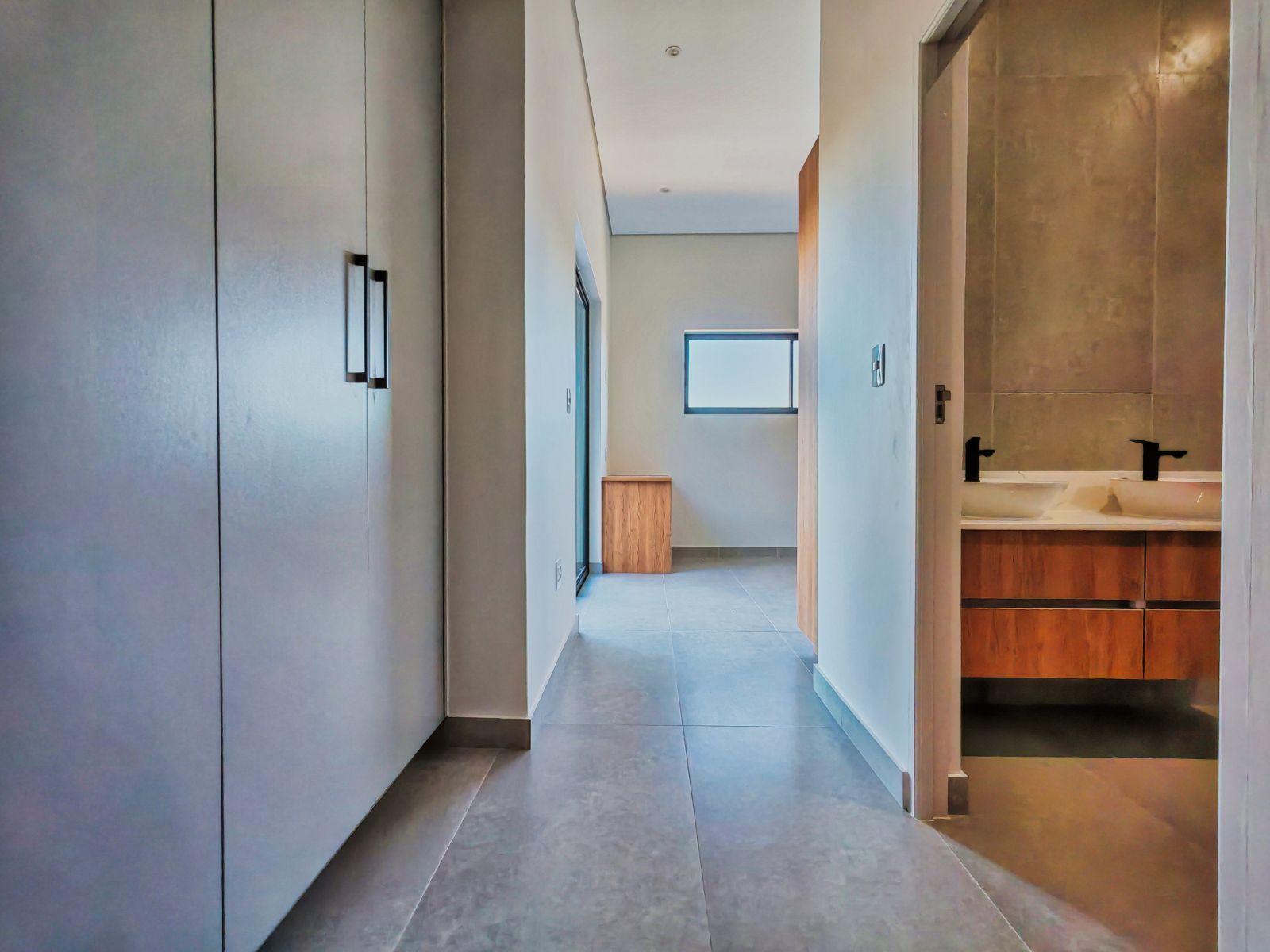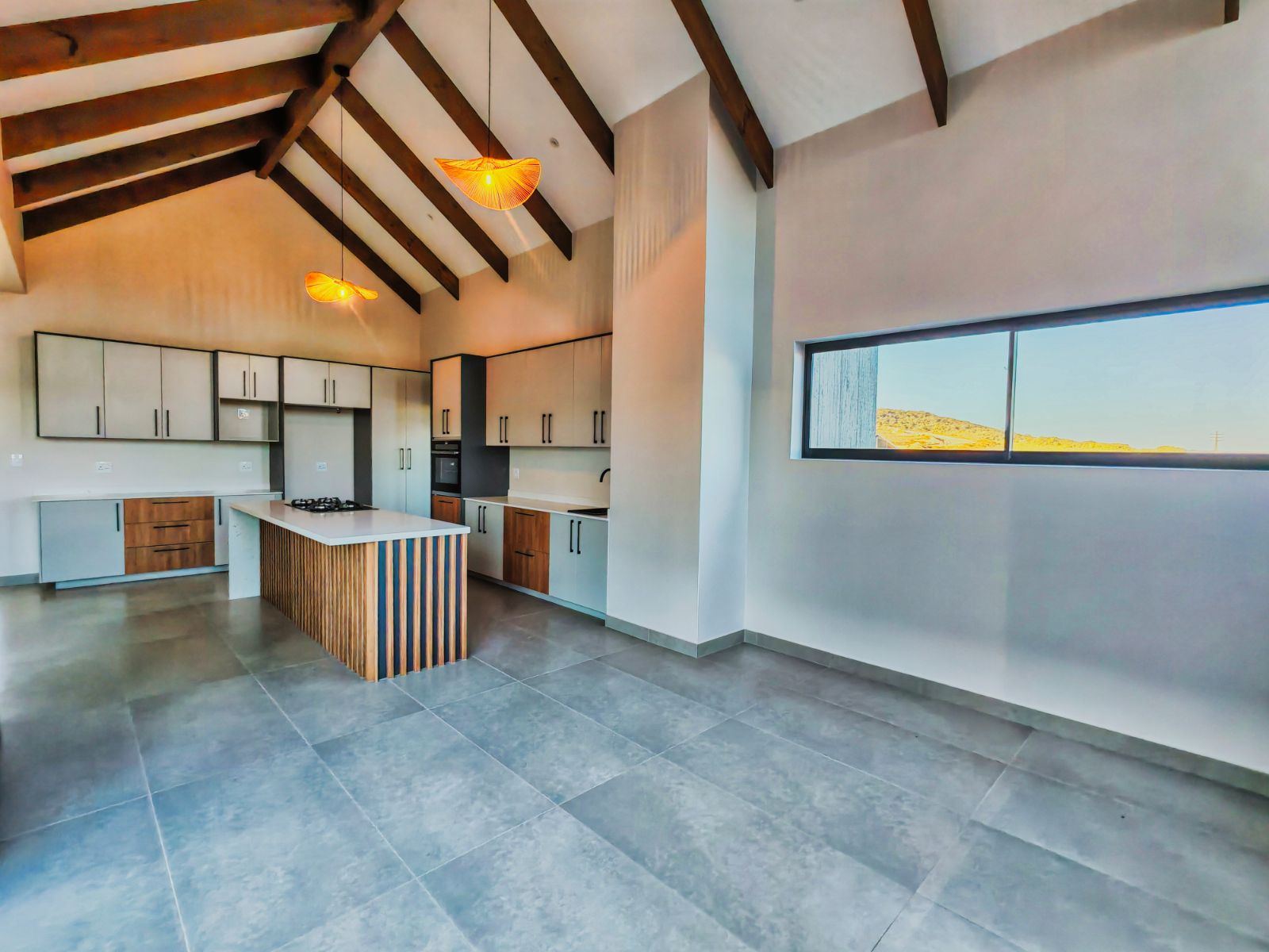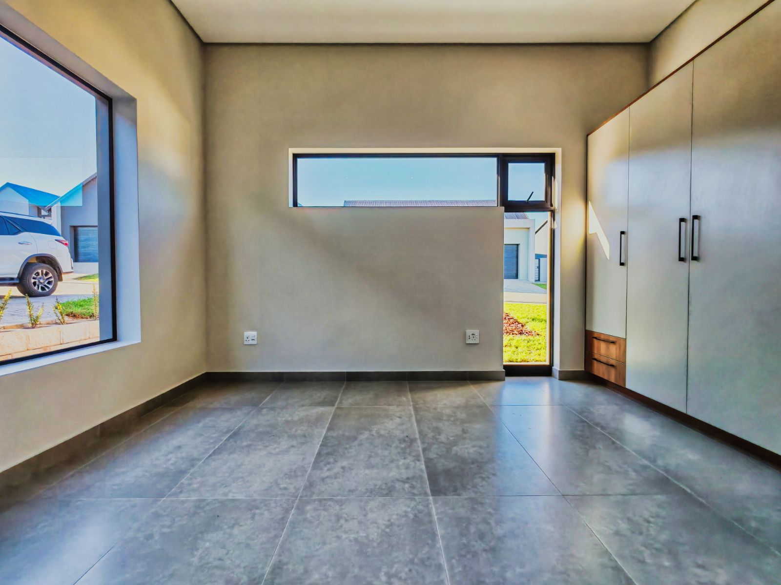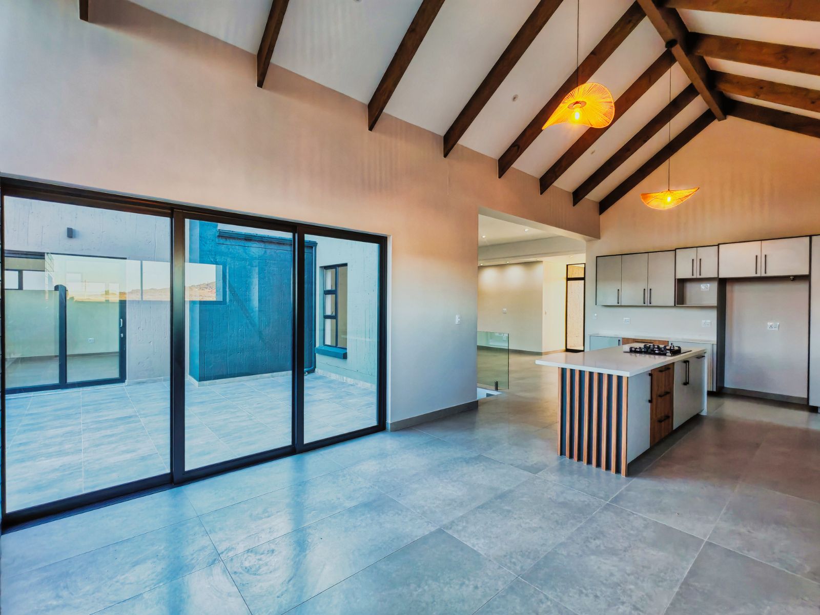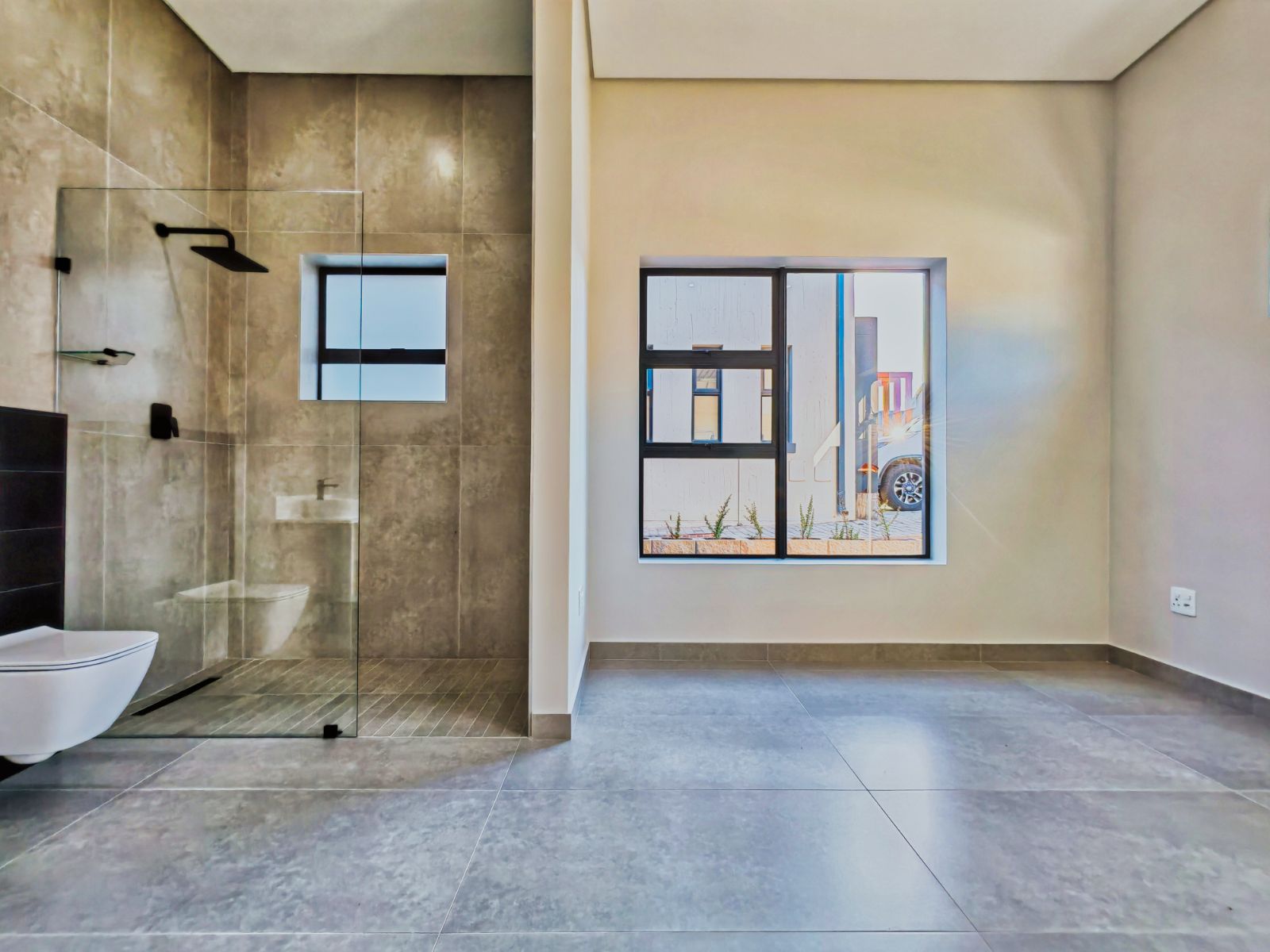 Step inside to a striking open-plan layout that welcomes you with natural light and seamless flow. The stylish formal lounge is positioned Infront, while right the ultra-modern designer kitchen boasts sleek finishes, a separate scullery, and direct access from the double automated garage. Entertain in style with a built-in braai area and expansive sliding doors opening onto a spacious balcony — the perfect spot to enjoy breathtaking sunsets over the western horizon.