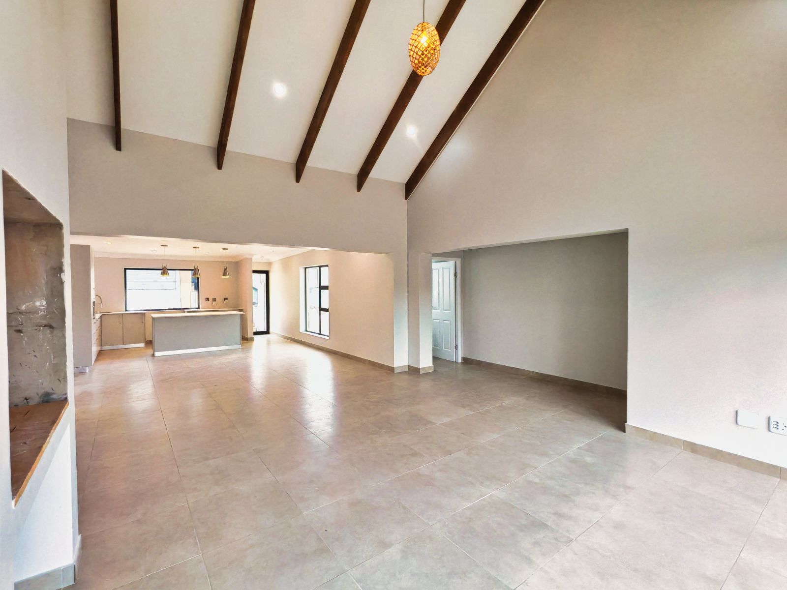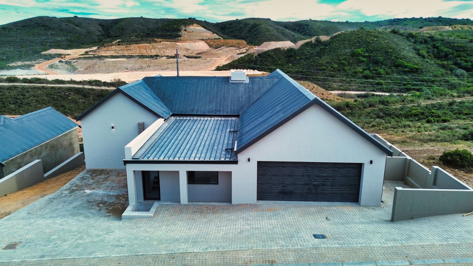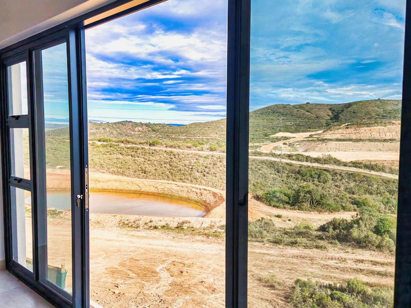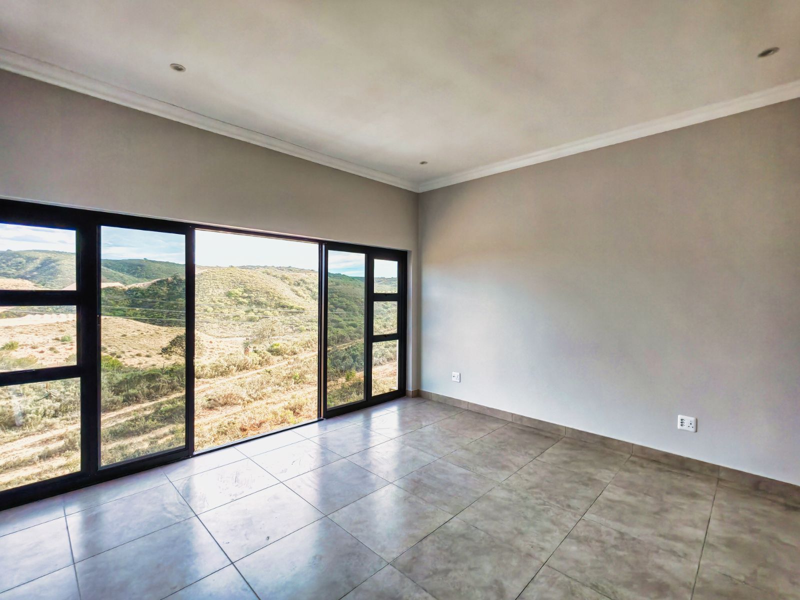 As you enter the home, you’re welcomed into an open-plan living area that includes a stylish kitchen, dining space, and a built-in braai — all designed to maximize comfort and sociability. Large windows and sliding doors invite you to enjoy the scenic views of lush greenery, with sightings of aloes in bloom and wild animals occasionally wandering through the surrounding fields. A nearby dam serves as a watering hole for wildlife, enhancing the authentic bushveld experience.