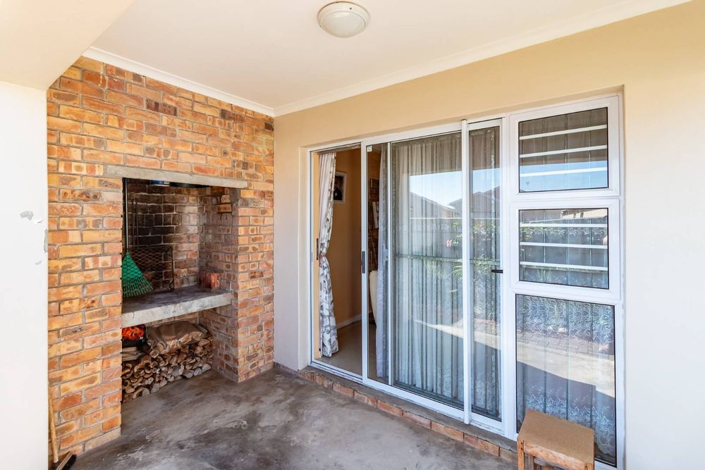 The home boasts an open-plan kitchen and lounge area, designed for easy living and entertaining. Sliding doors lead to a neat, enclosed stoep with a cozy fireplace — ideal for relaxing evenings or hosting guests all year round.
