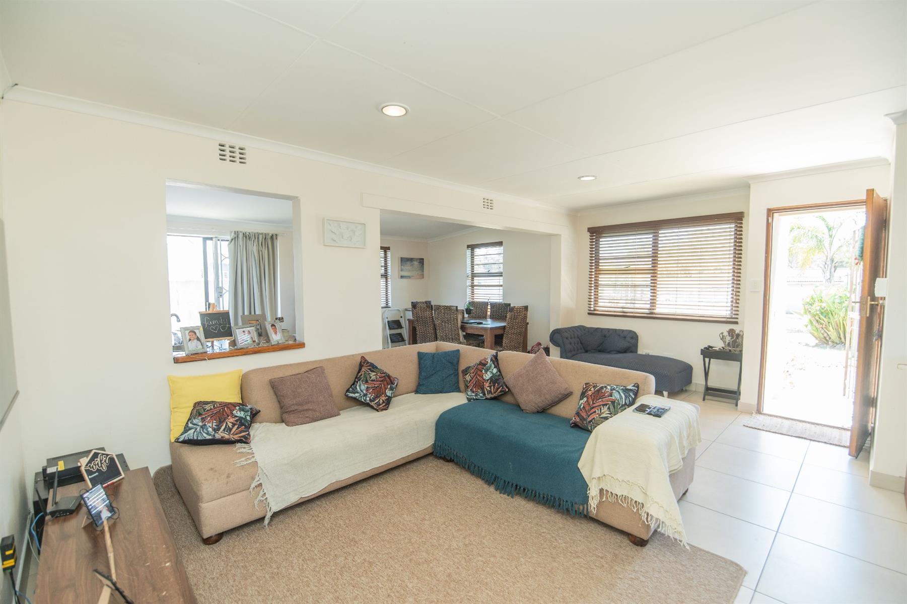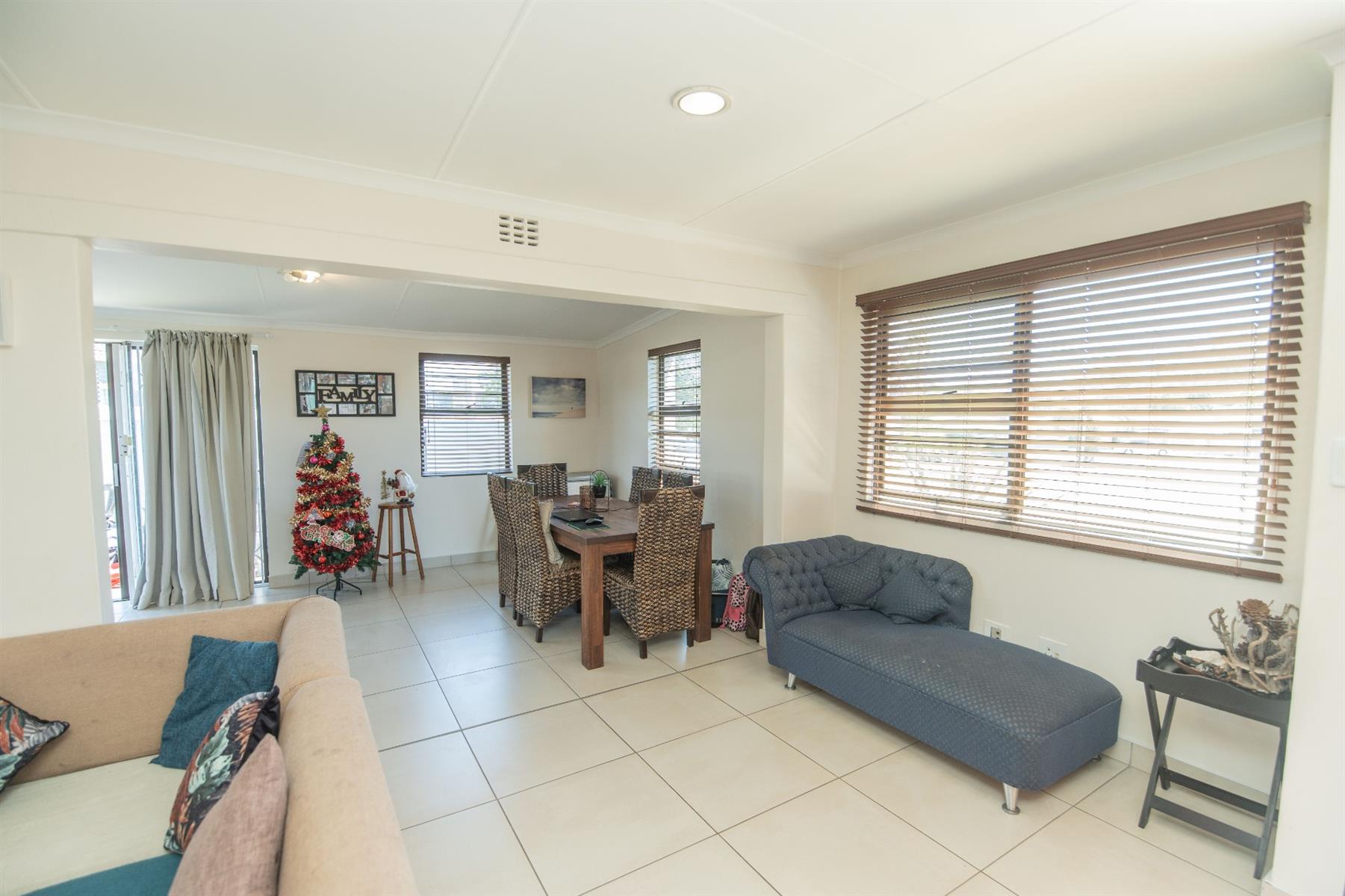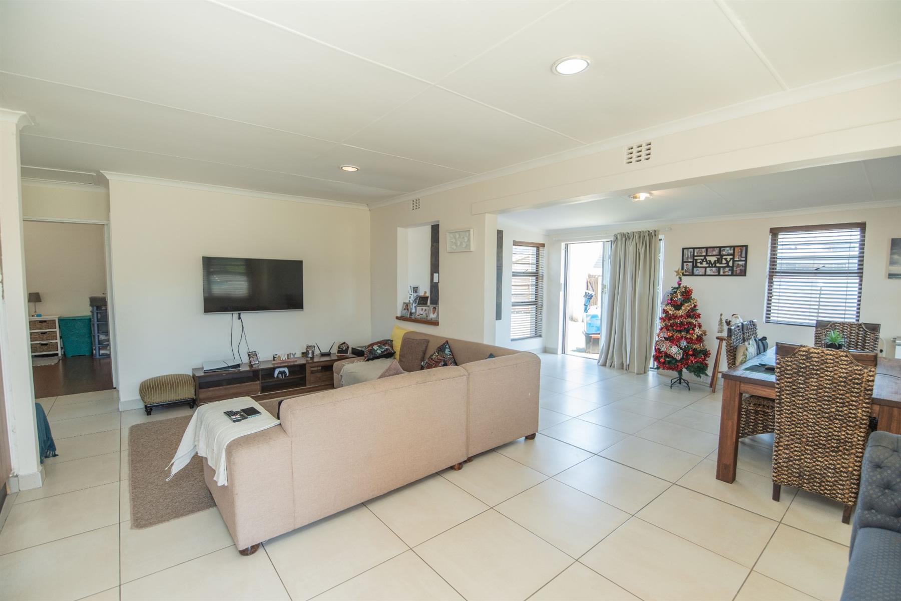 The home offers a very spacious open-plan lounge, dining room, and kitchen, seamlessly flowing into an indoor braai and entertainment area—ideal for relaxed family living and entertaining. The property is light, sunny, and beautifully finished, featuring high-quality fittings and fixtures throughout.