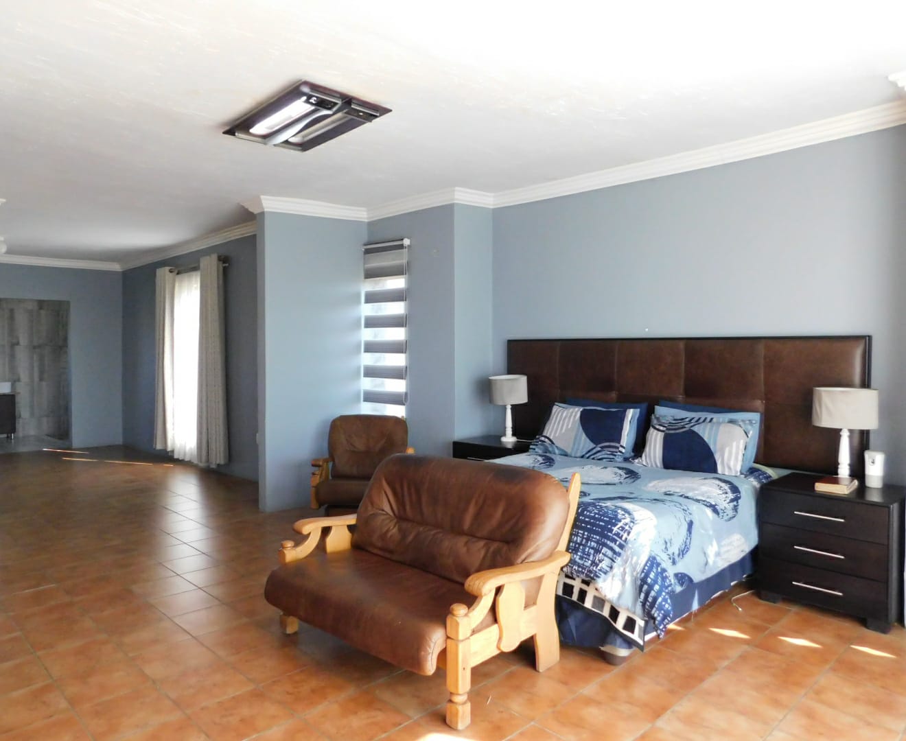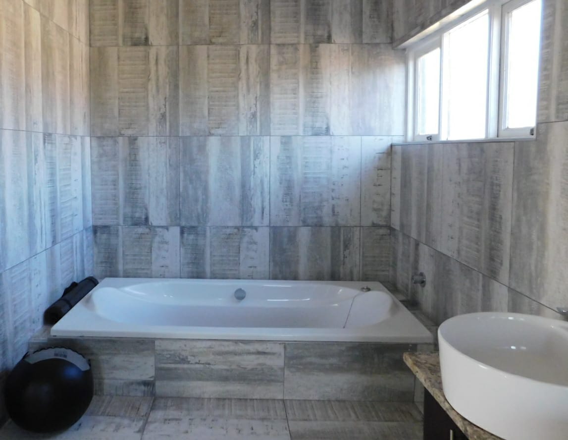 The master bedroom is a true retreat, featuring an en-suite bathroom, expansive built-in cupboards, and direct access to a private balcony — shared with one other bedroom — where you can enjoy your morning coffee while taking in panoramic views of the koppies that grace the backyard horizon. All bedrooms are generously sized with ample storage and natural light, offering both comfort and functionality.