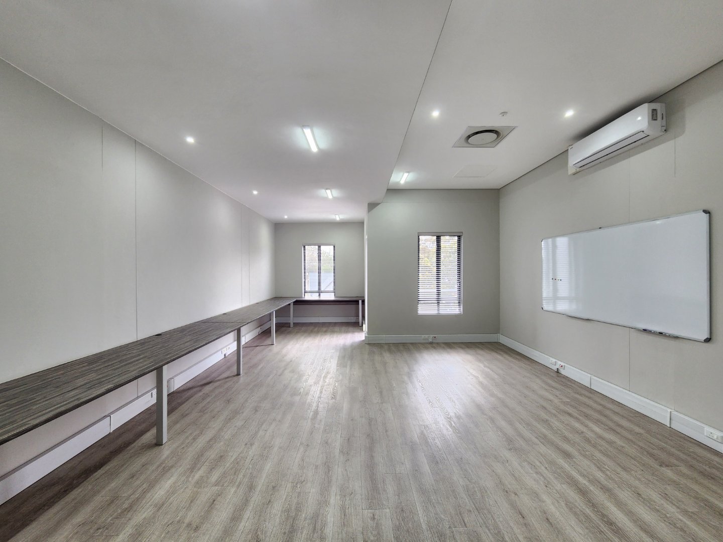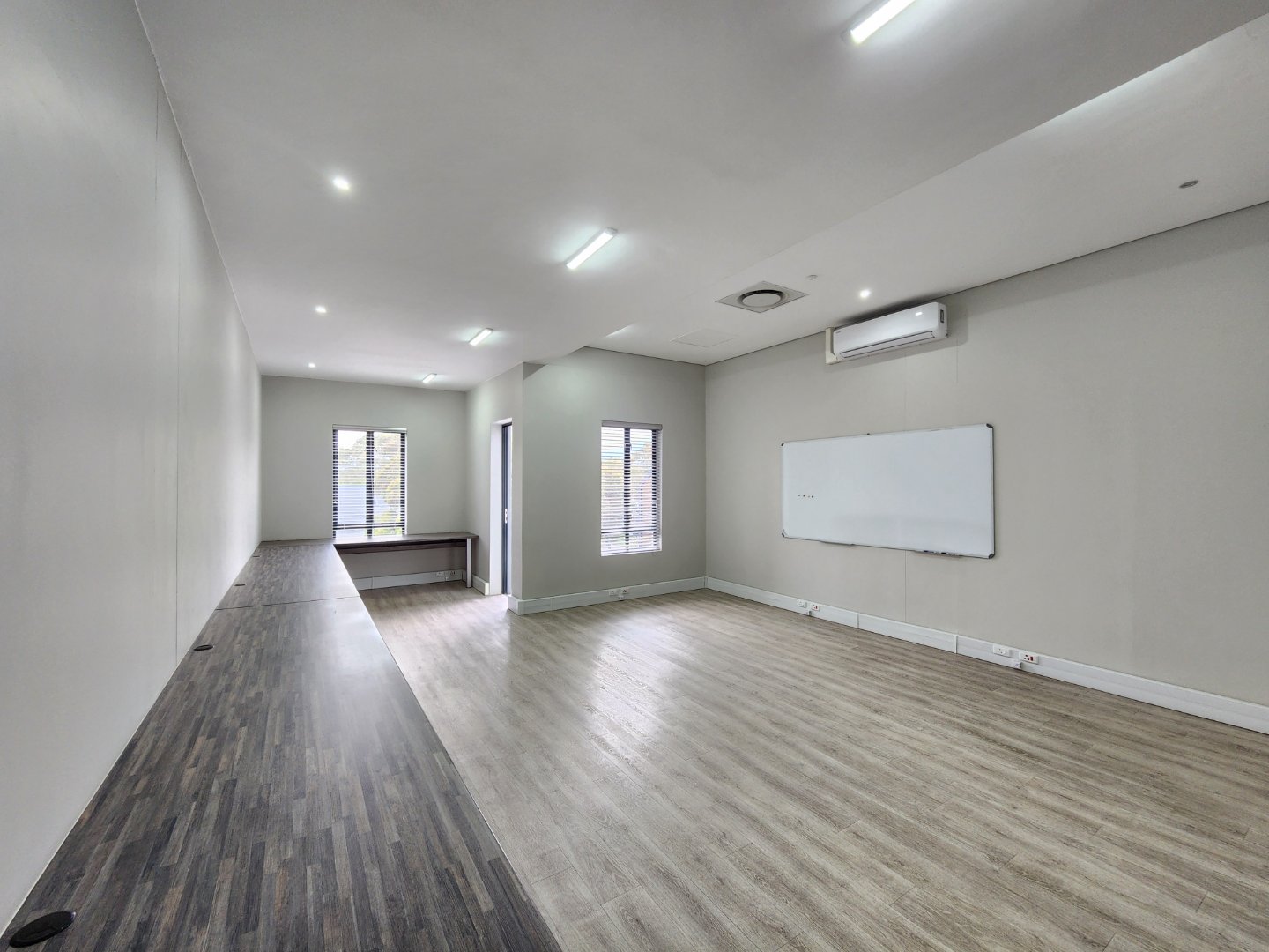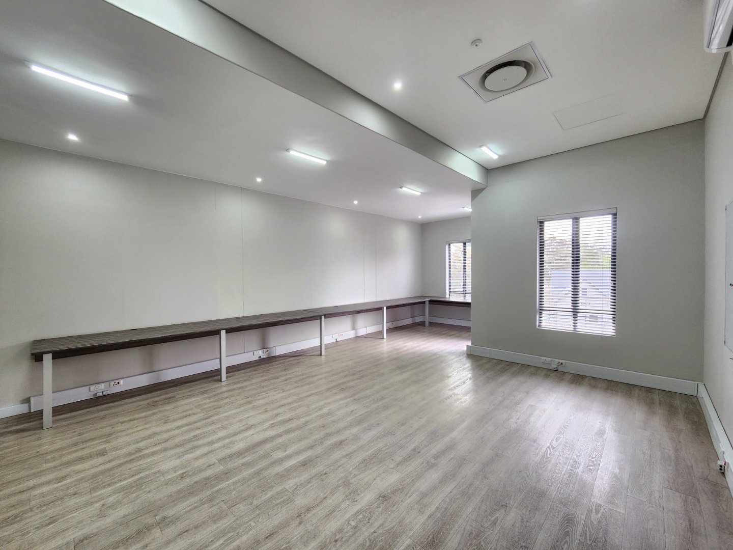 This modern office to let Paardevlei, Somerset West boasts large windows throughout, ensuring an abundance of natural light that enhances the workspace. The layout is completely open plan, already fitted with work desks, making it a ready-to-move-in solution. Added conveniences include a private balcony area, a dedicated kitchenette, and private ablution facilities, creating a comfortable and efficient working environment. The office is also fully air-conditioned and has back up power.