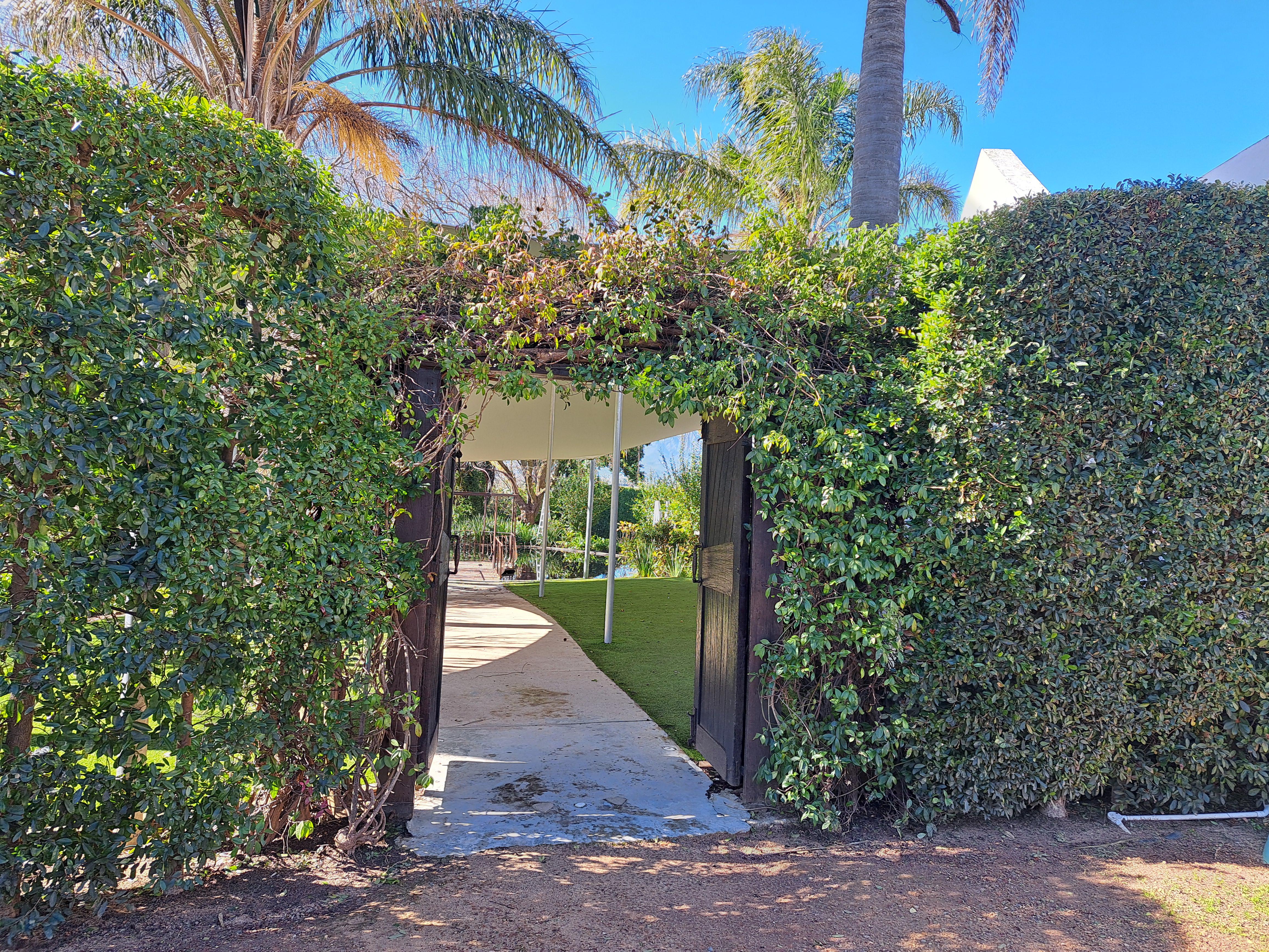 The 2 access gates are electronically controlled and taken off a tar road, allowing guest house guests and wedding function guests to use separate entrances. Sufficient safe parking is provided for all guests.