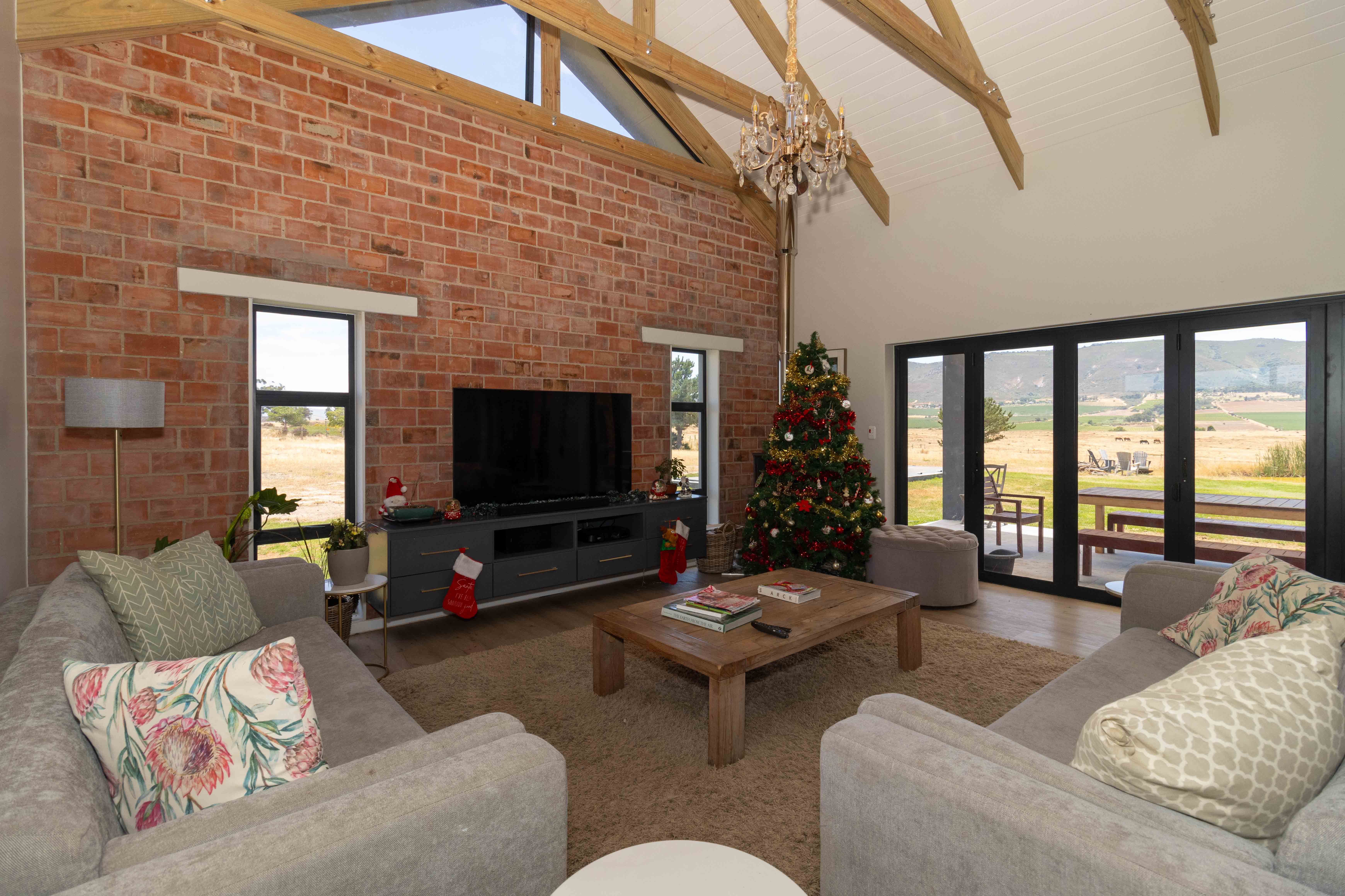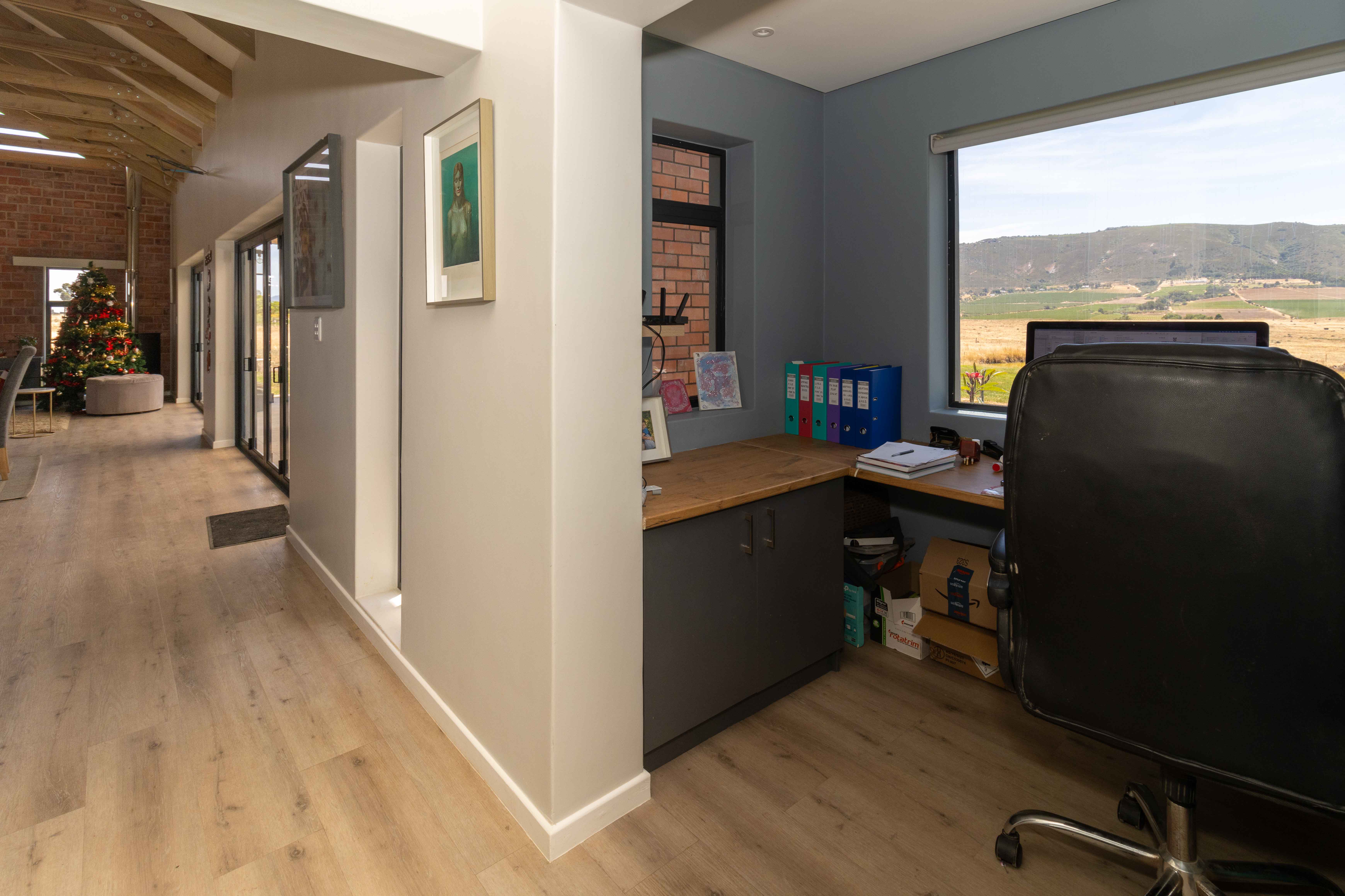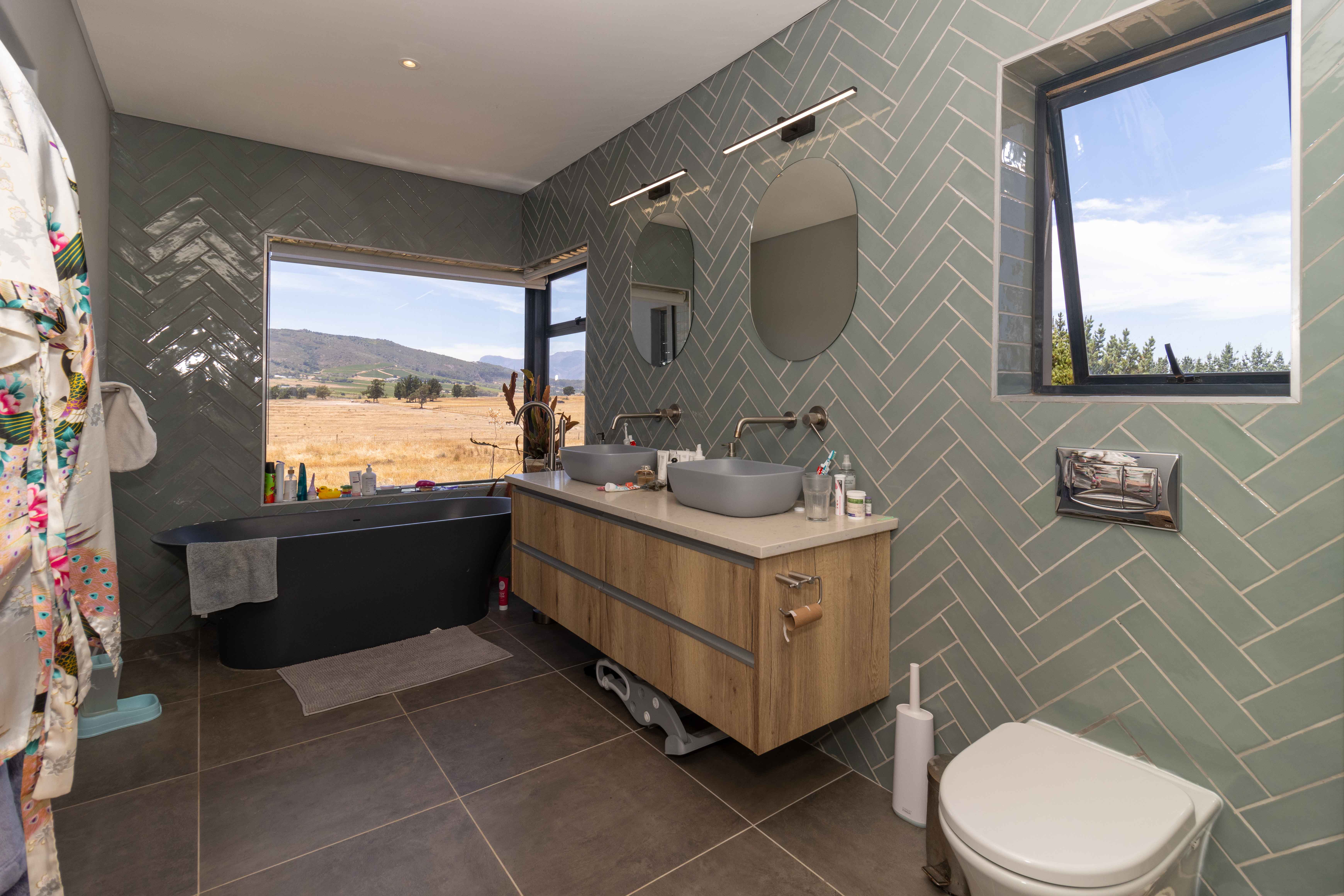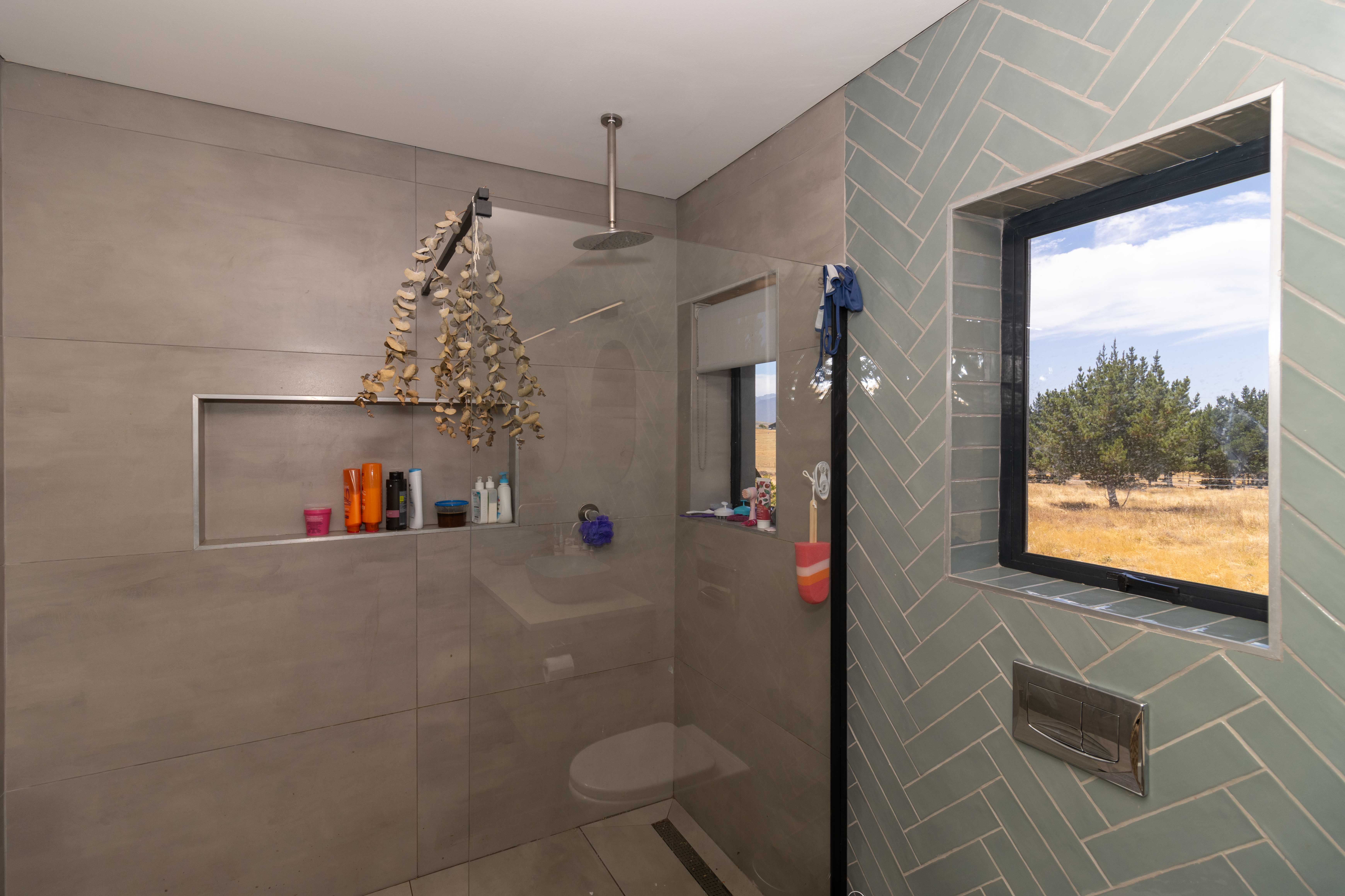 Both guest bedrooms are generously sized and serviced by a stylish, modern full bathroom. A guest toilet is conveniently located near the entrance. The dedicated study enjoys panoramic vistas of the estate, with horses roaming peacefully in the background — an inspiring setting for work-from-home living.
