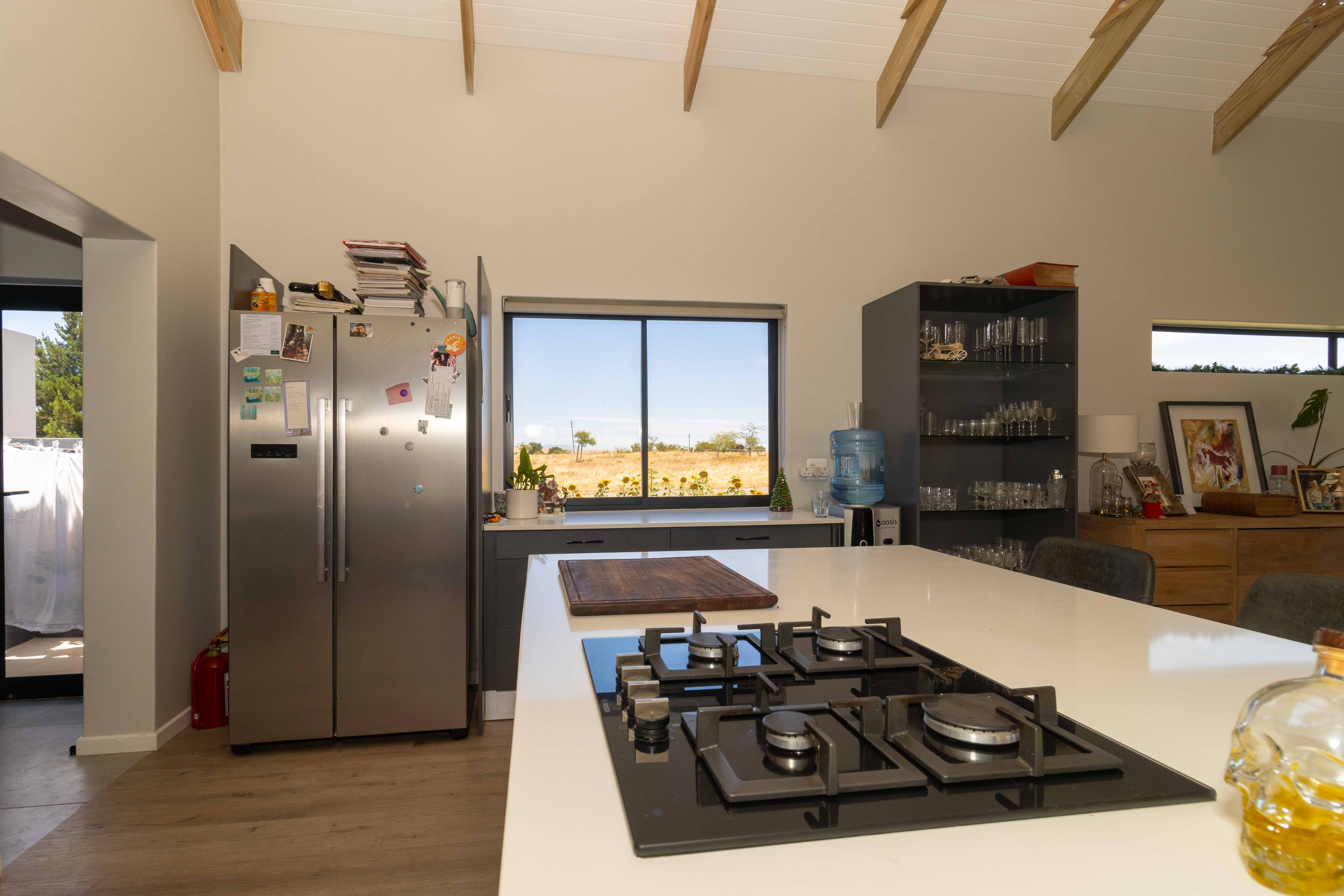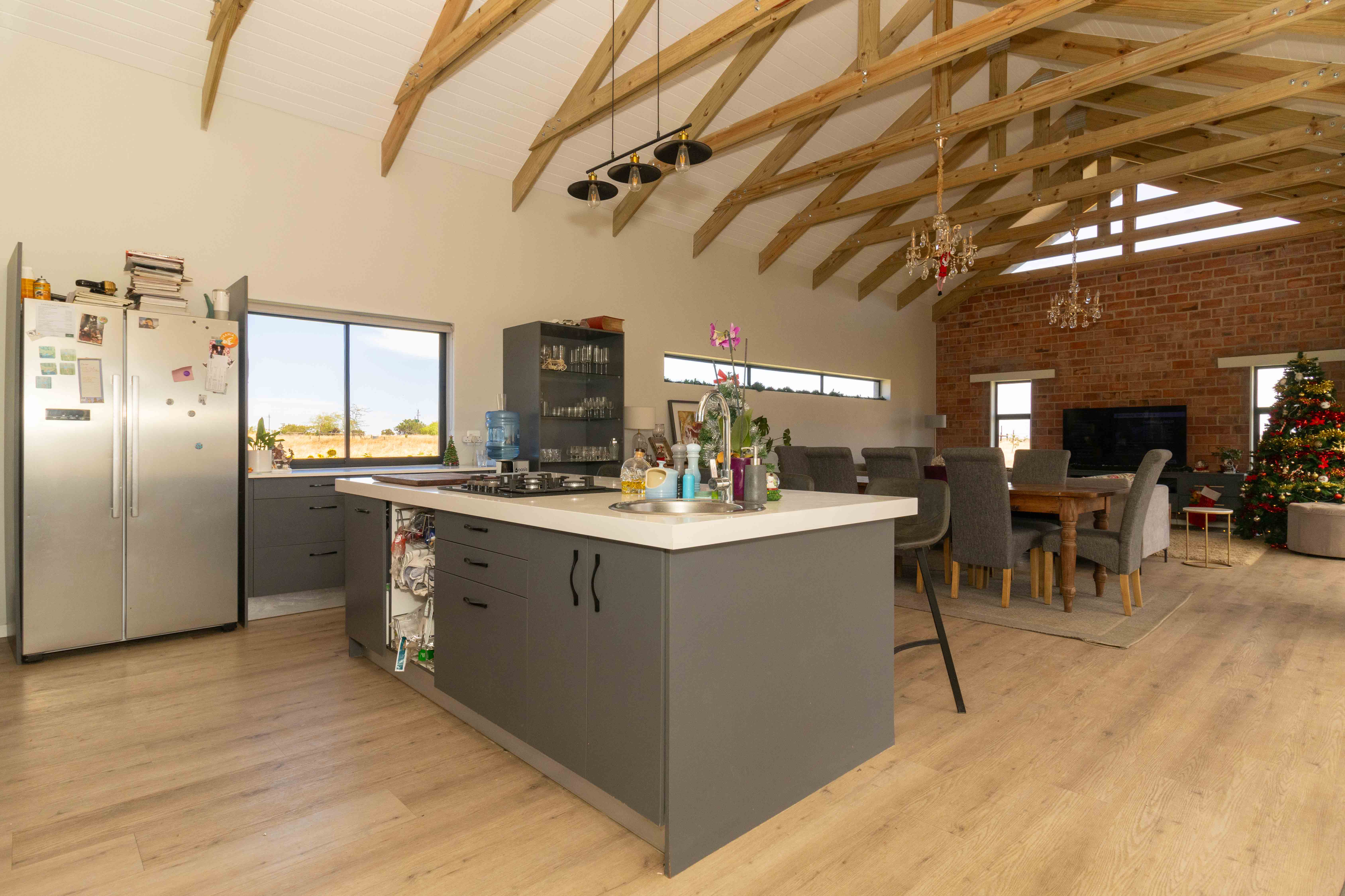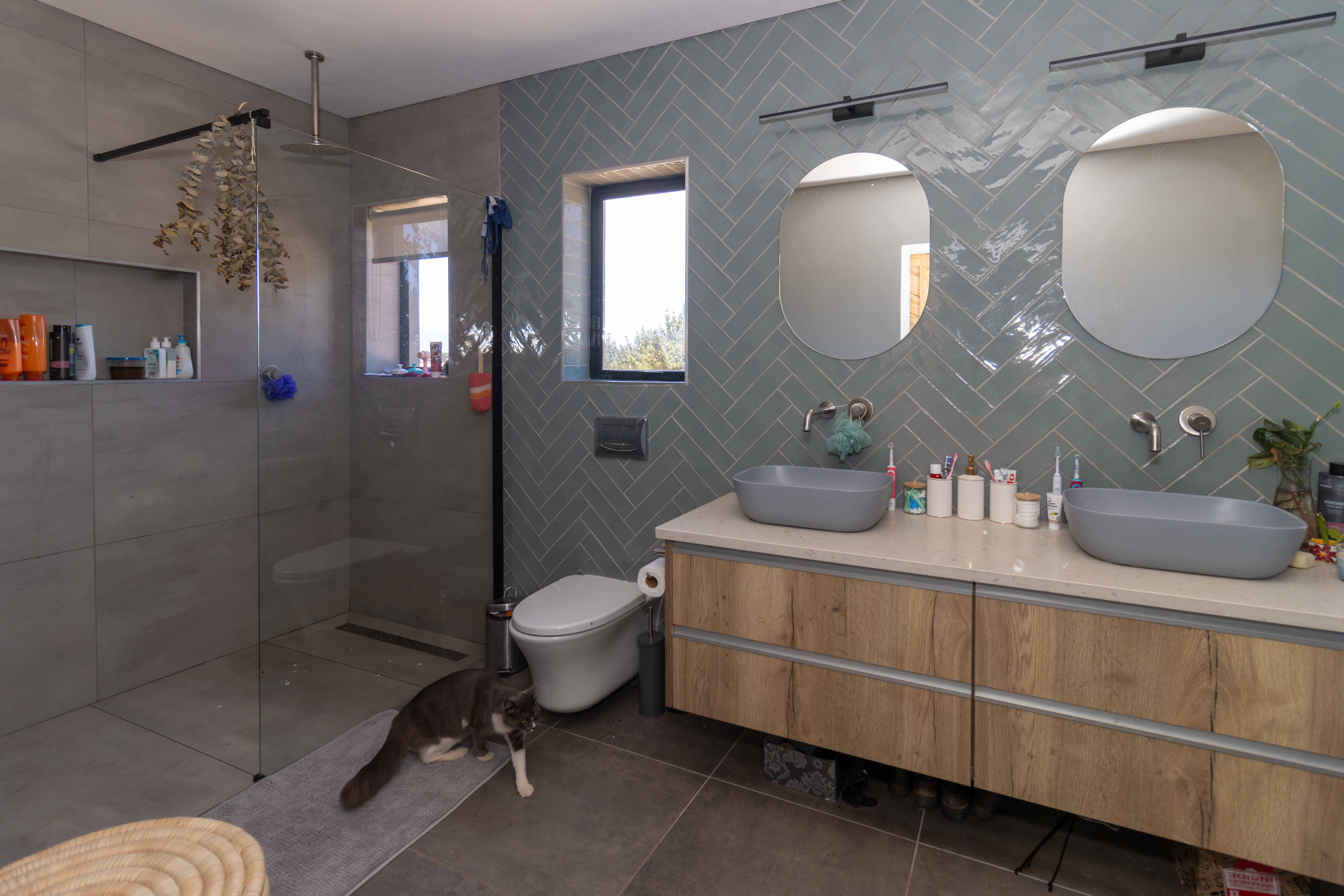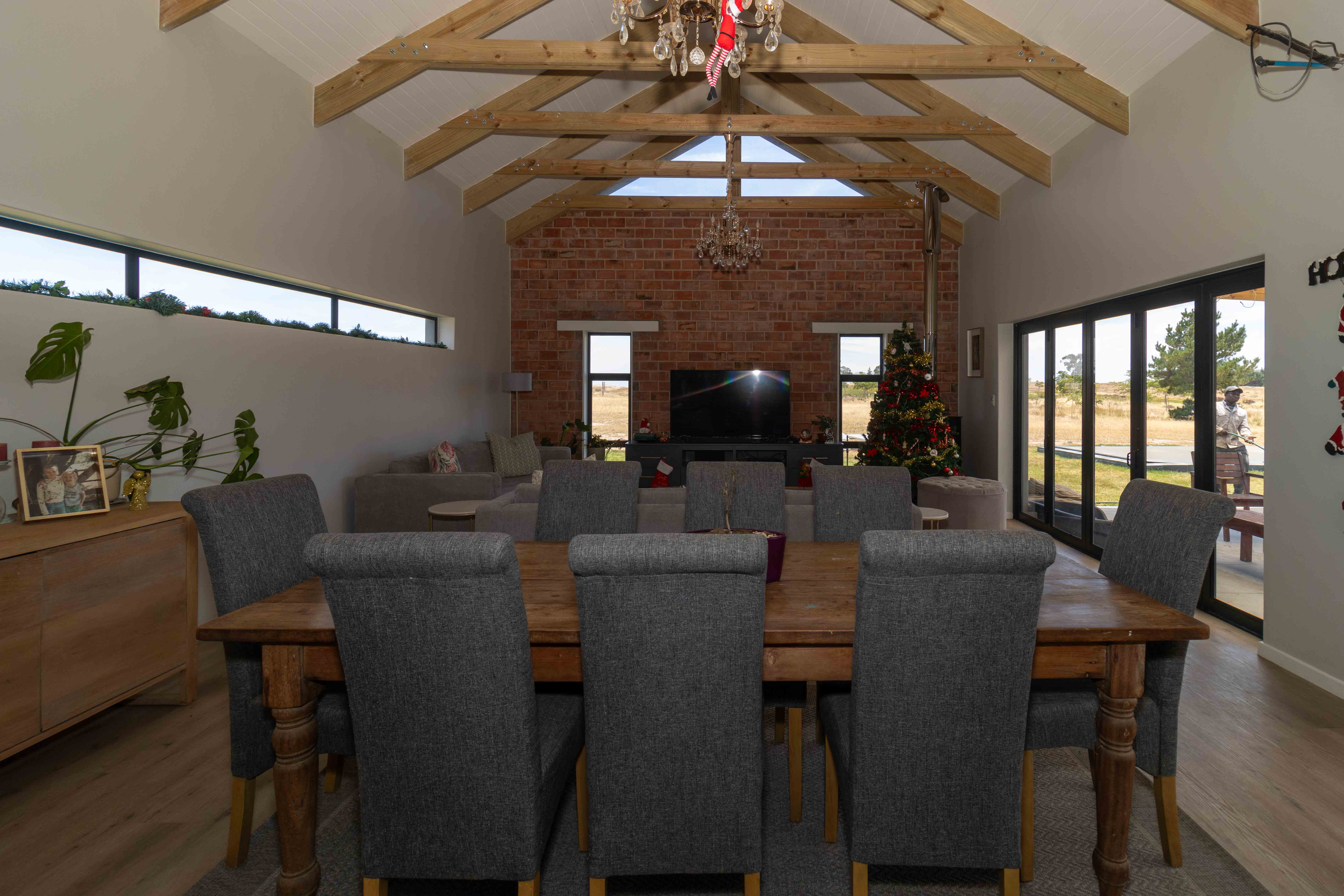 Both guest bedrooms are generously sized and serviced by a stylish, modern full bathroom. A guest toilet is conveniently located near the entrance. The dedicated study enjoys panoramic vistas of the estate, with horses roaming peacefully in the background — an inspiring setting for work-from-home living.