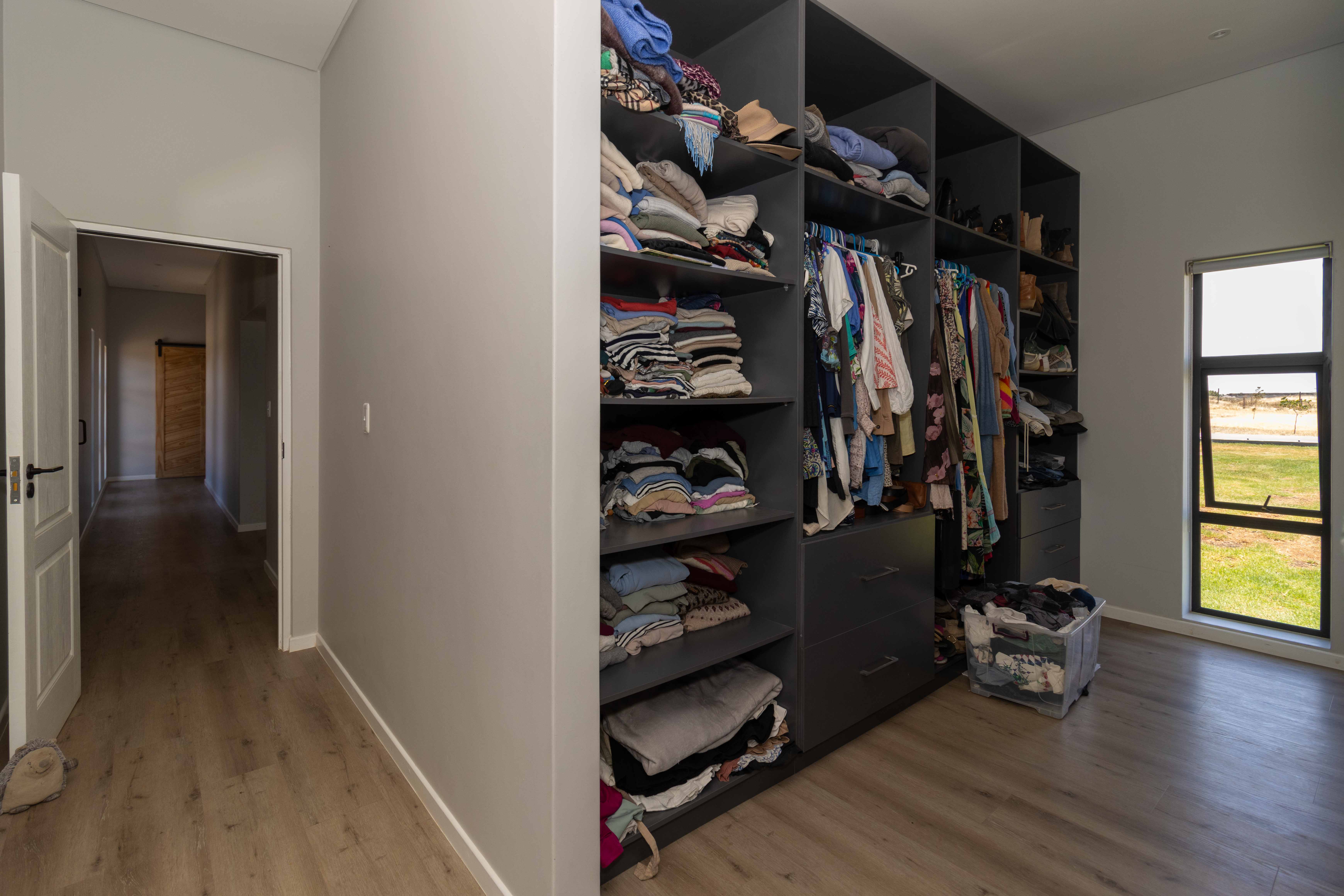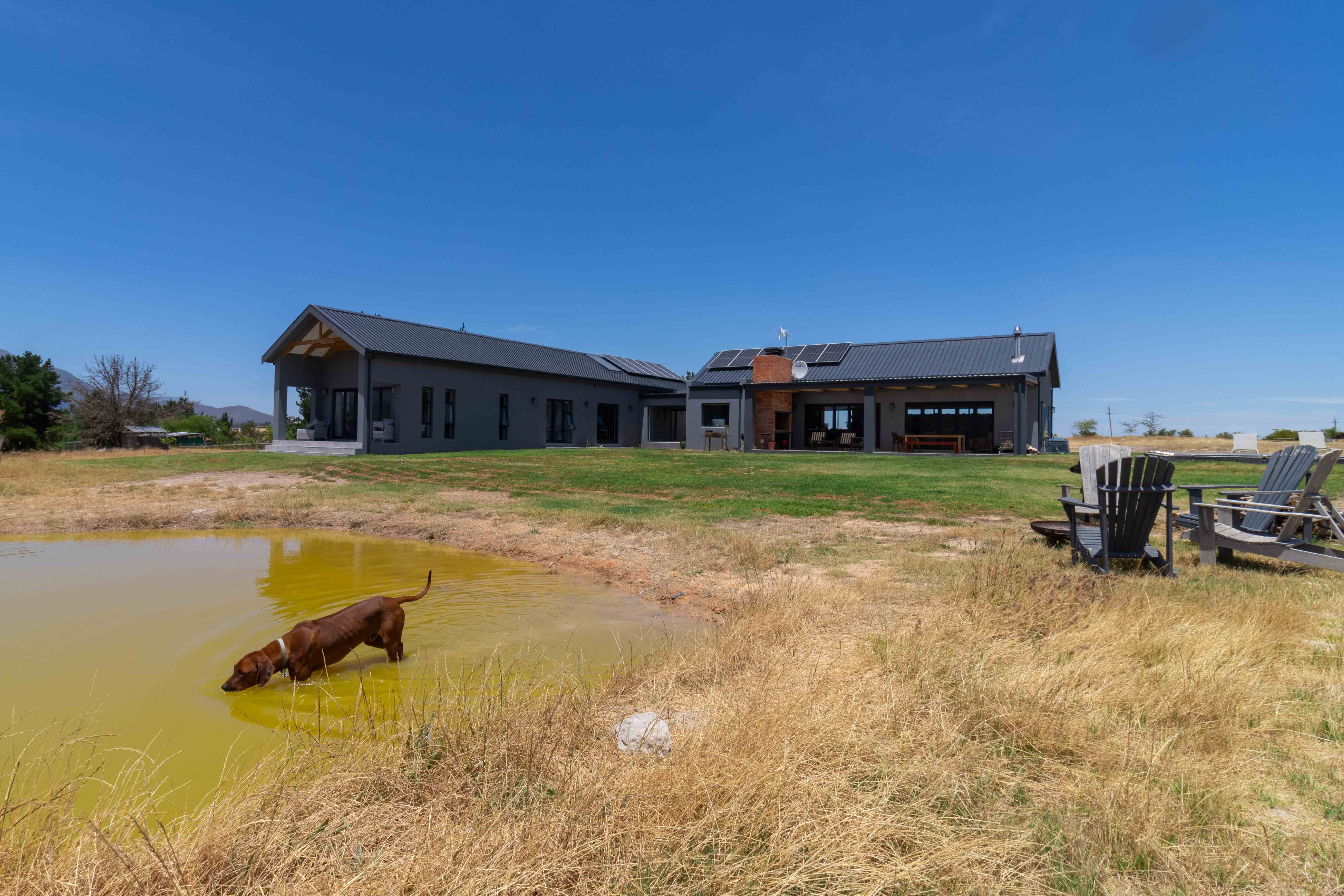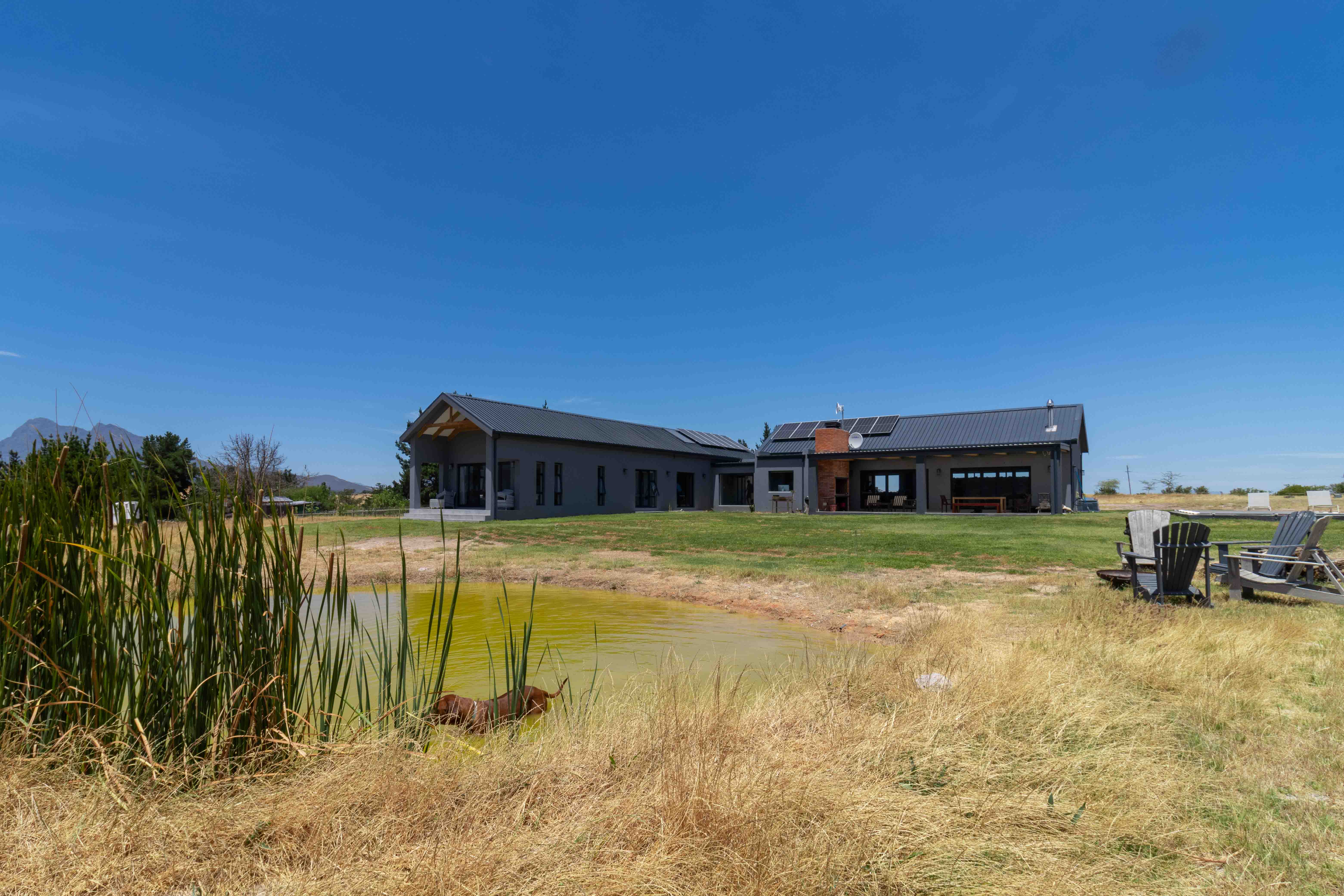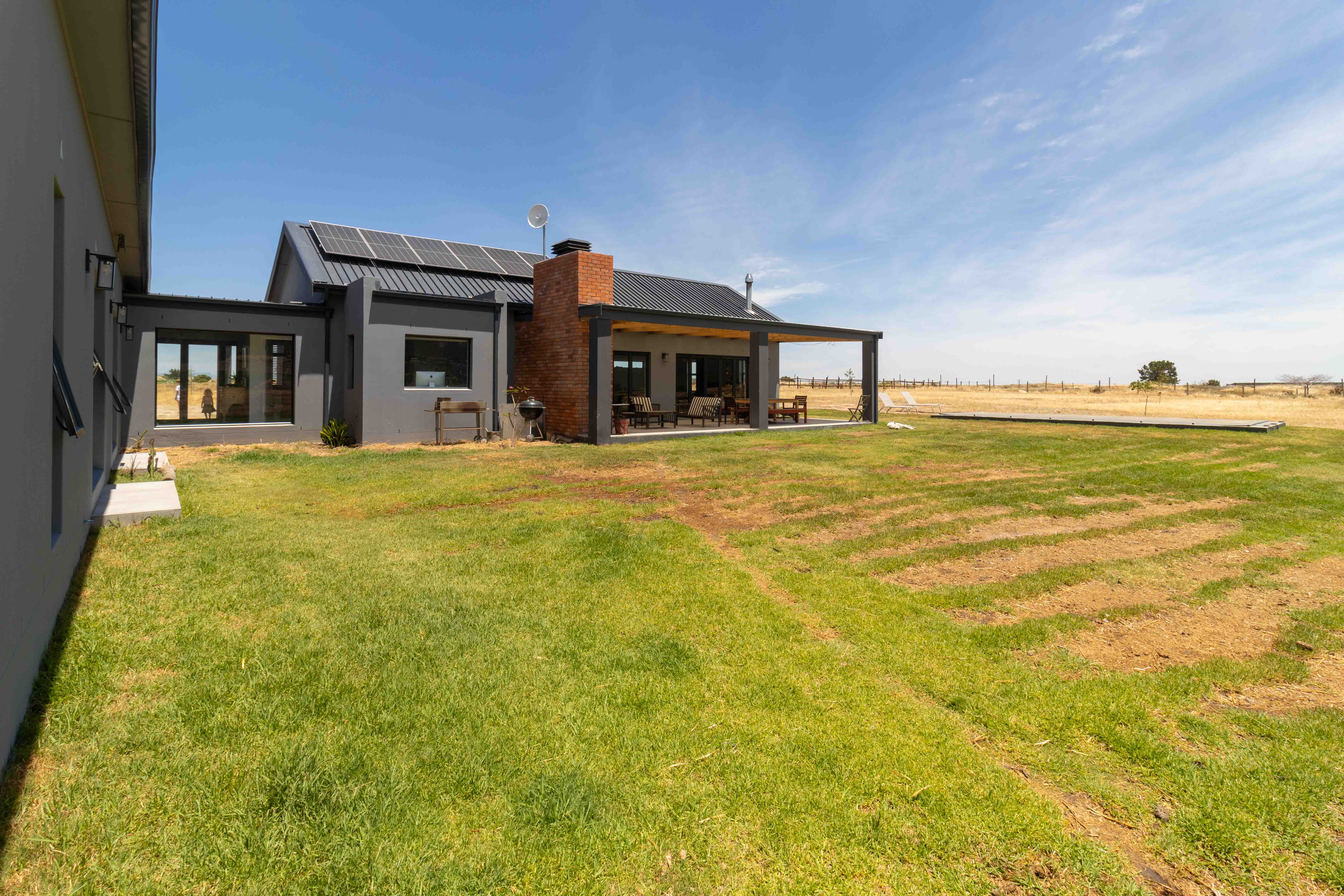 Completely off-grid living is made easy with a fully installed solar system, borehole, and a generous 4,000-litre daily water allocation from the estate. A charming pond enhances the landscape and attracts birdlife, bringing nature even closer to home.