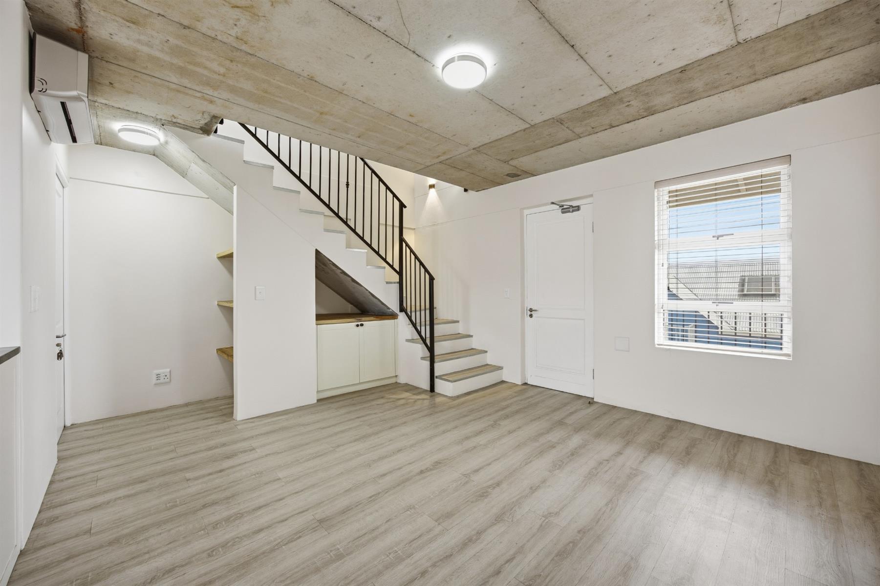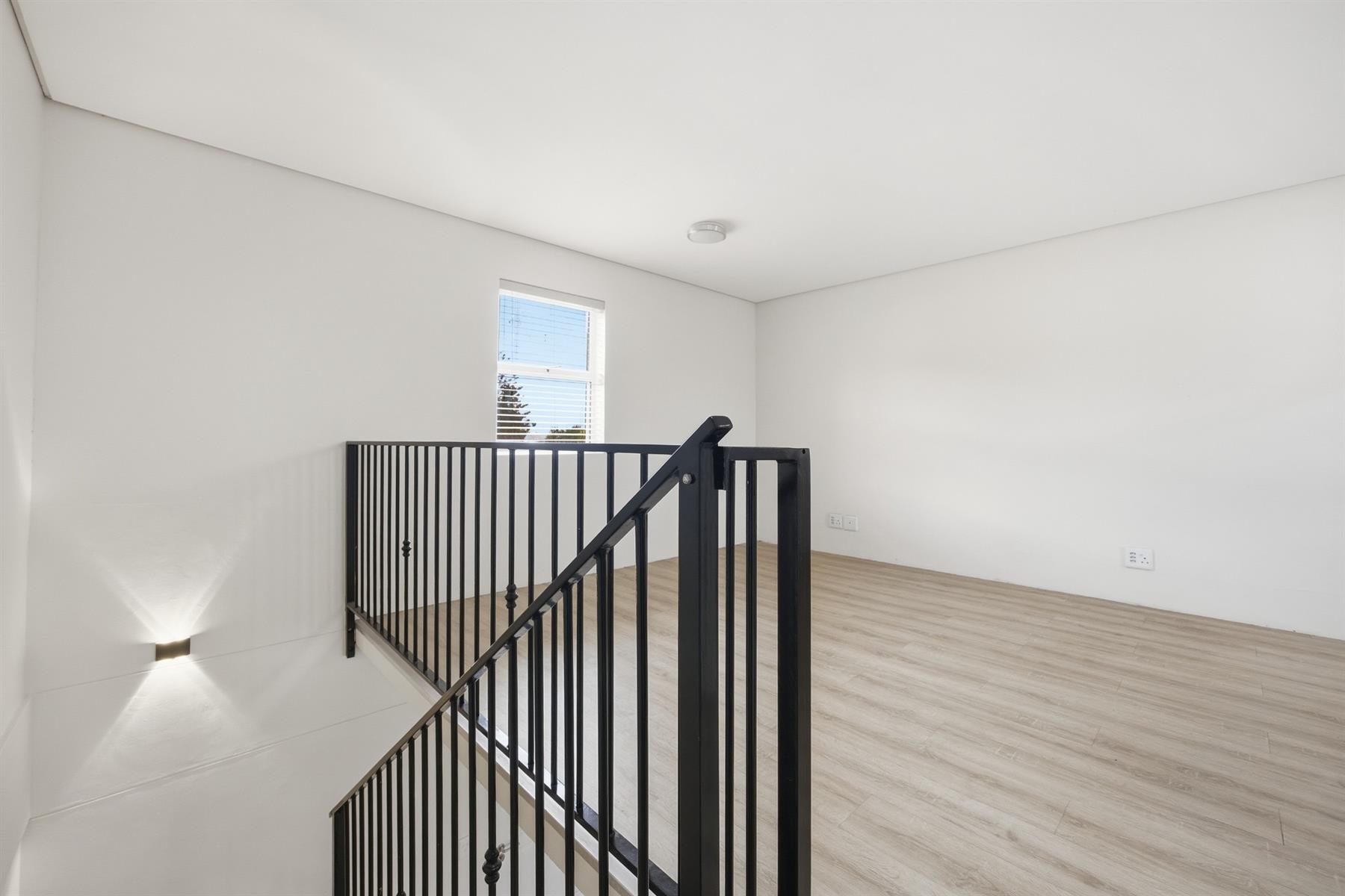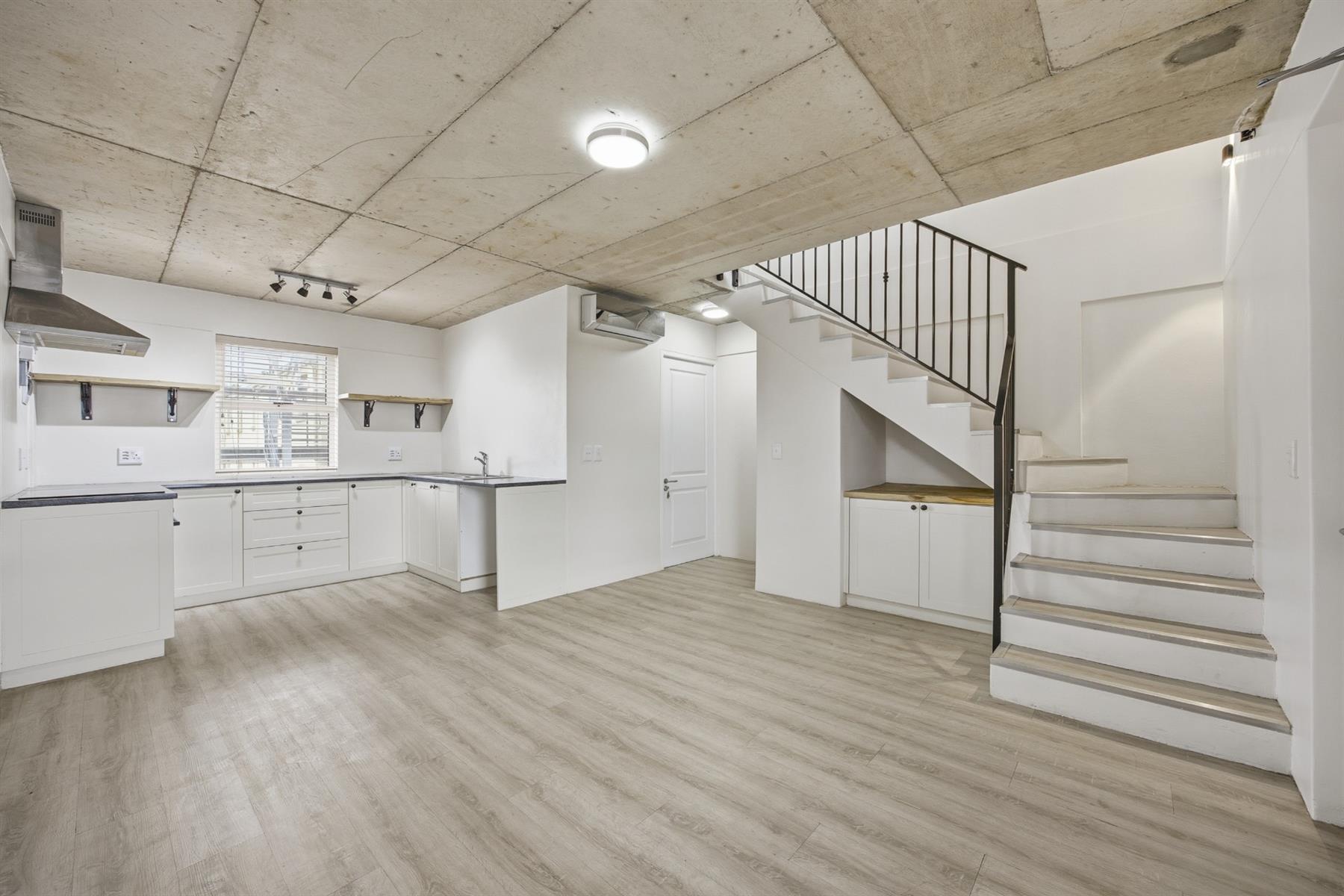 This well located 64 m2 duplex apartment blends clean lines with an industrial edge. Exposed concrete ceilings and light floors bring warmth and texture to the minimalist design. Set in Southern Paarl, it offers clear views of the Boland mountains and quick access to Paarl Mall and the N1.
