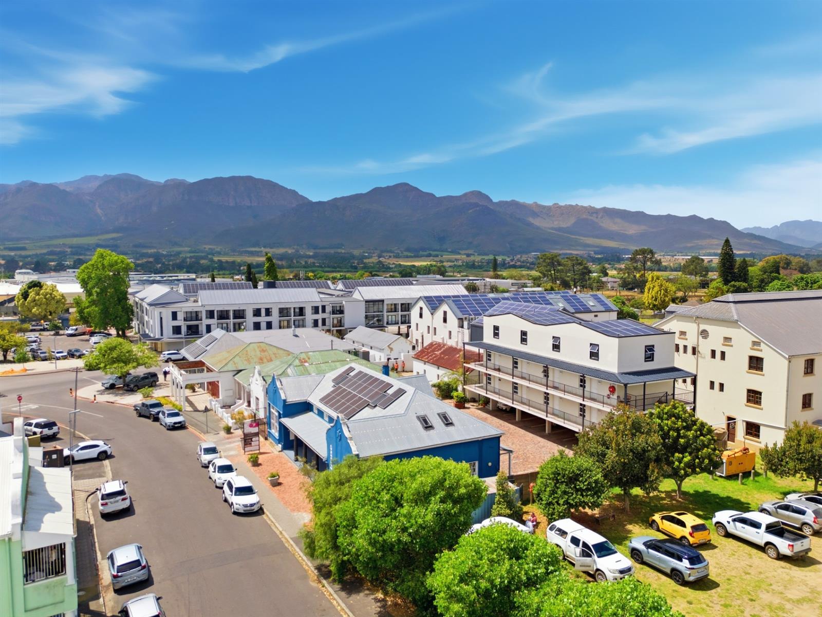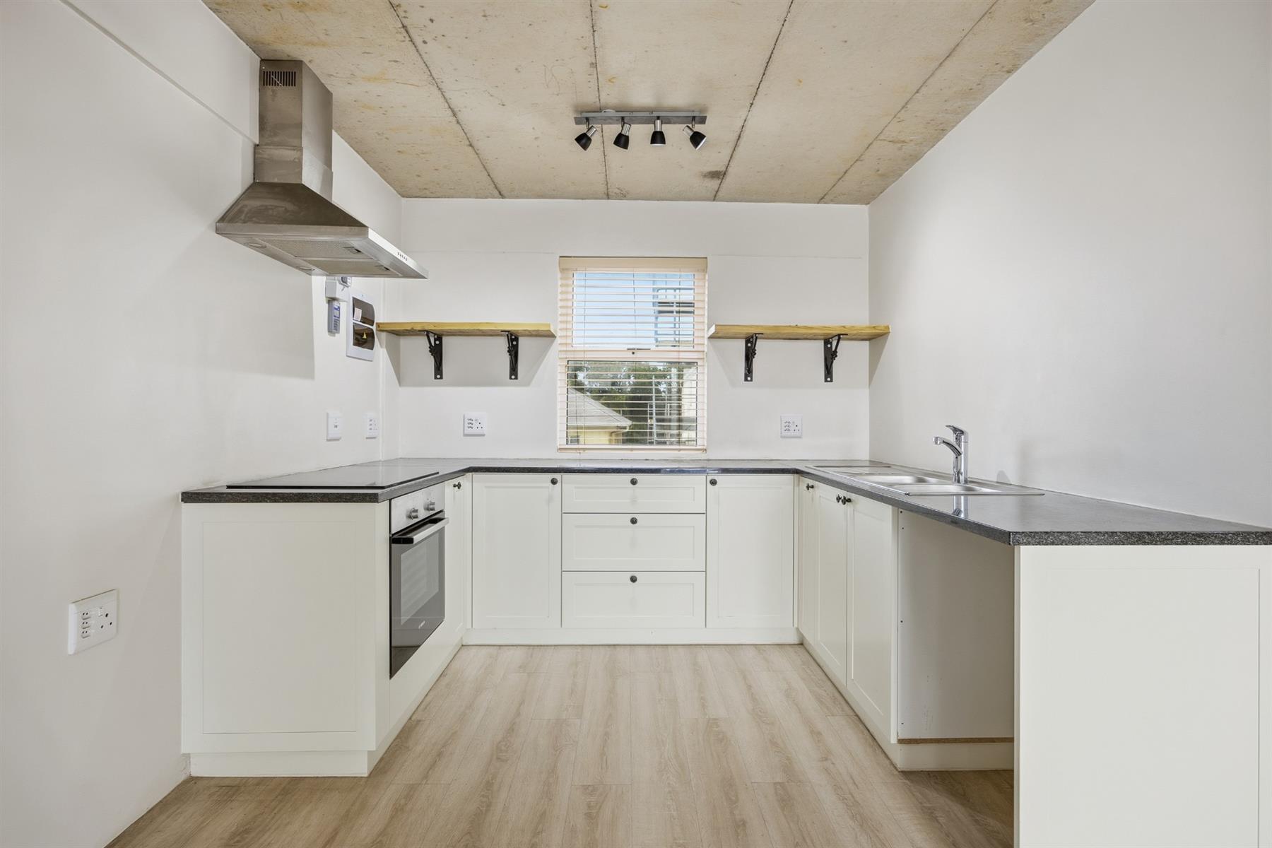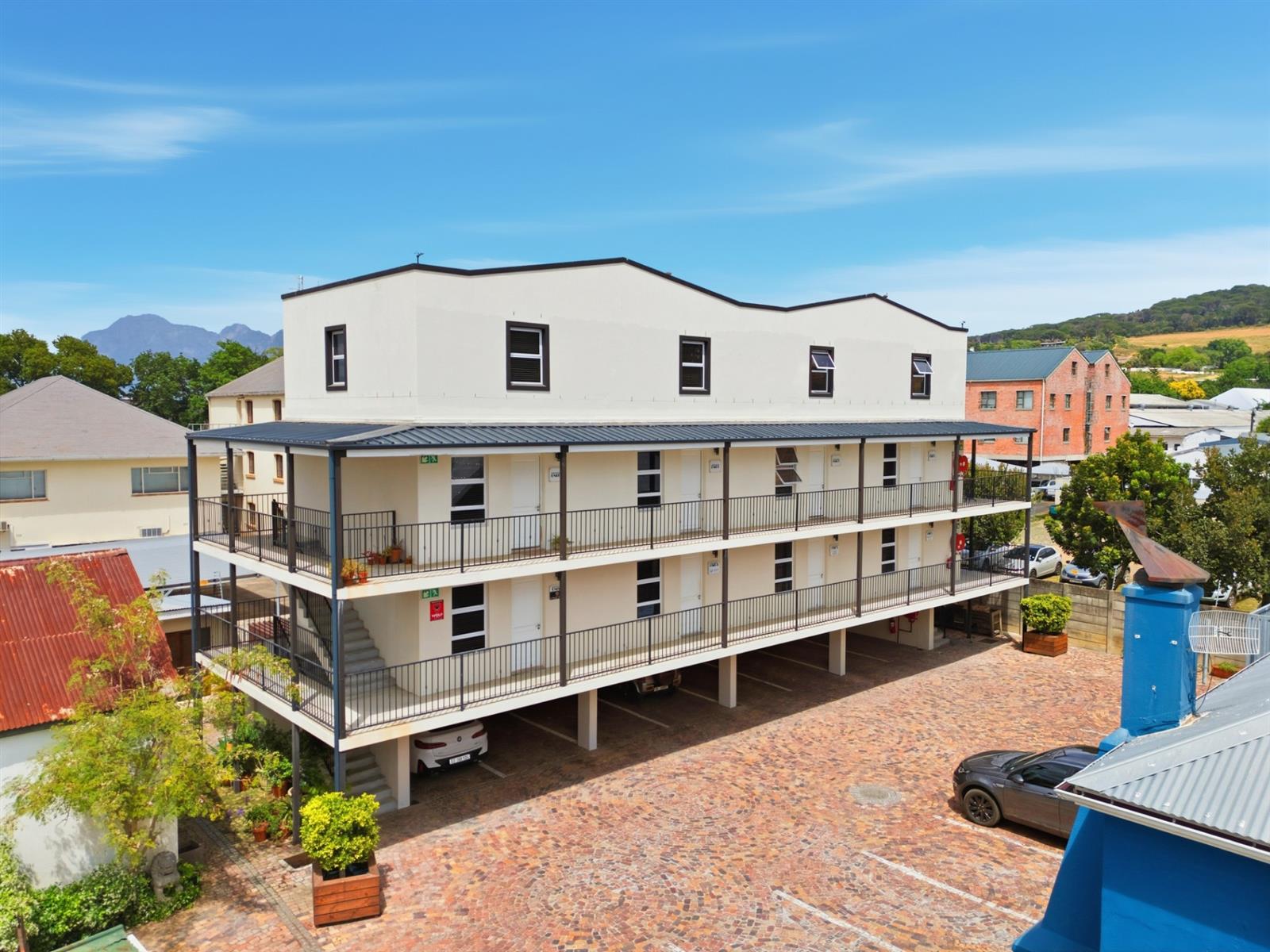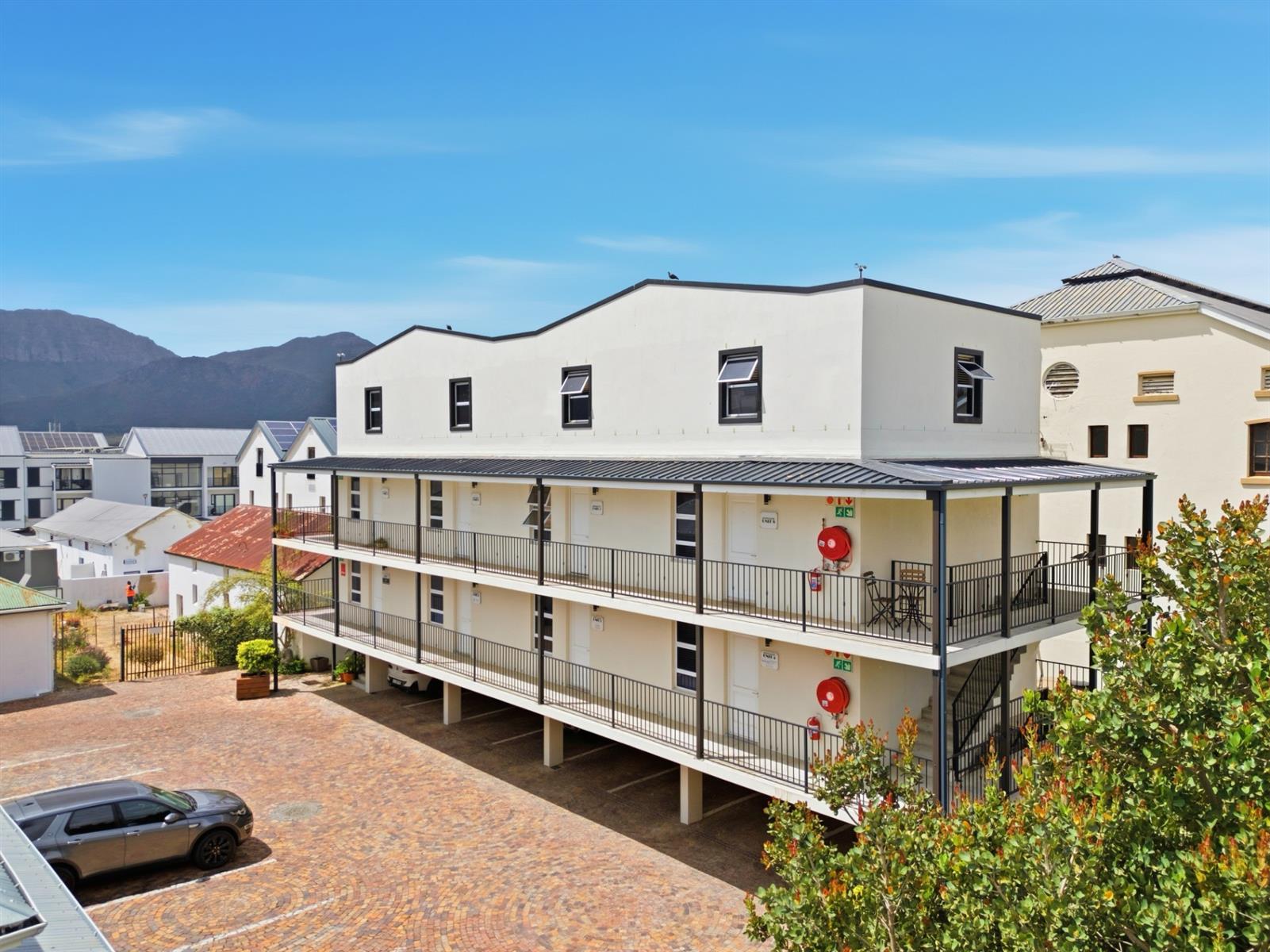 This well located 64 m2 duplex apartment blends clean lines with an industrial edge. Exposed concrete ceilings and light floors bring warmth and texture to the minimalist design. Set in Southern Paarl, it offers clear views of the Boland mountains and quick access to Paarl Mall and the N1.