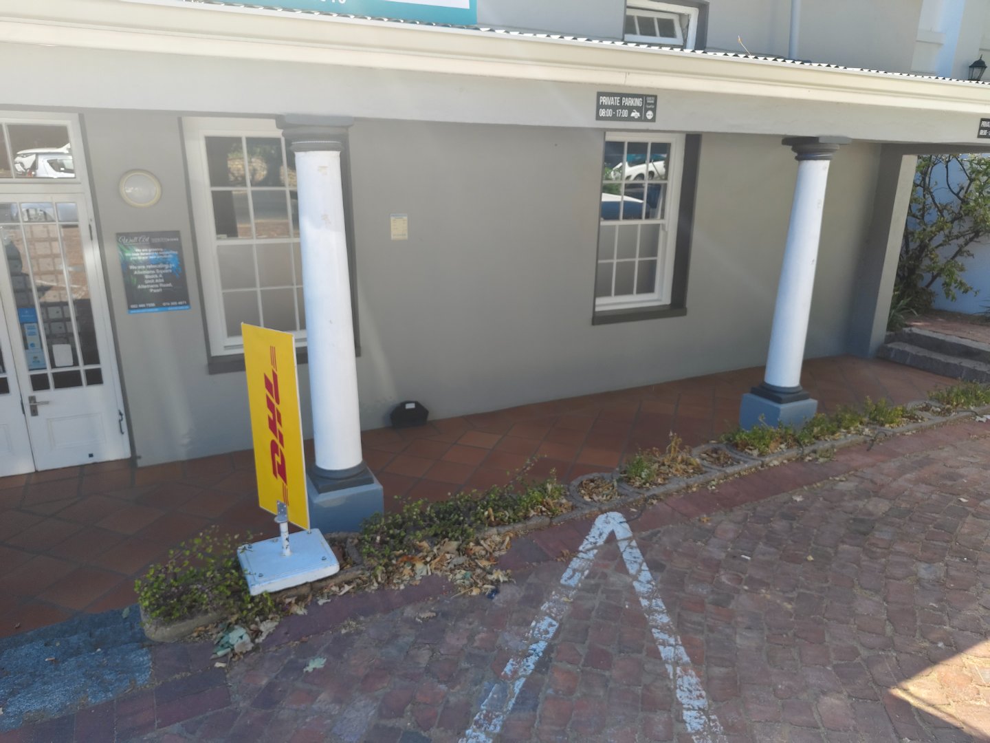 There is seven parking bays in front of the building and lots of parking in the Main road itself. The area consists out of three different spaces of which one can be used as an office and the other two for display areas of your product range. This will be a sublease with another tenant with whom you will be sharing a kitchen and bathroom.