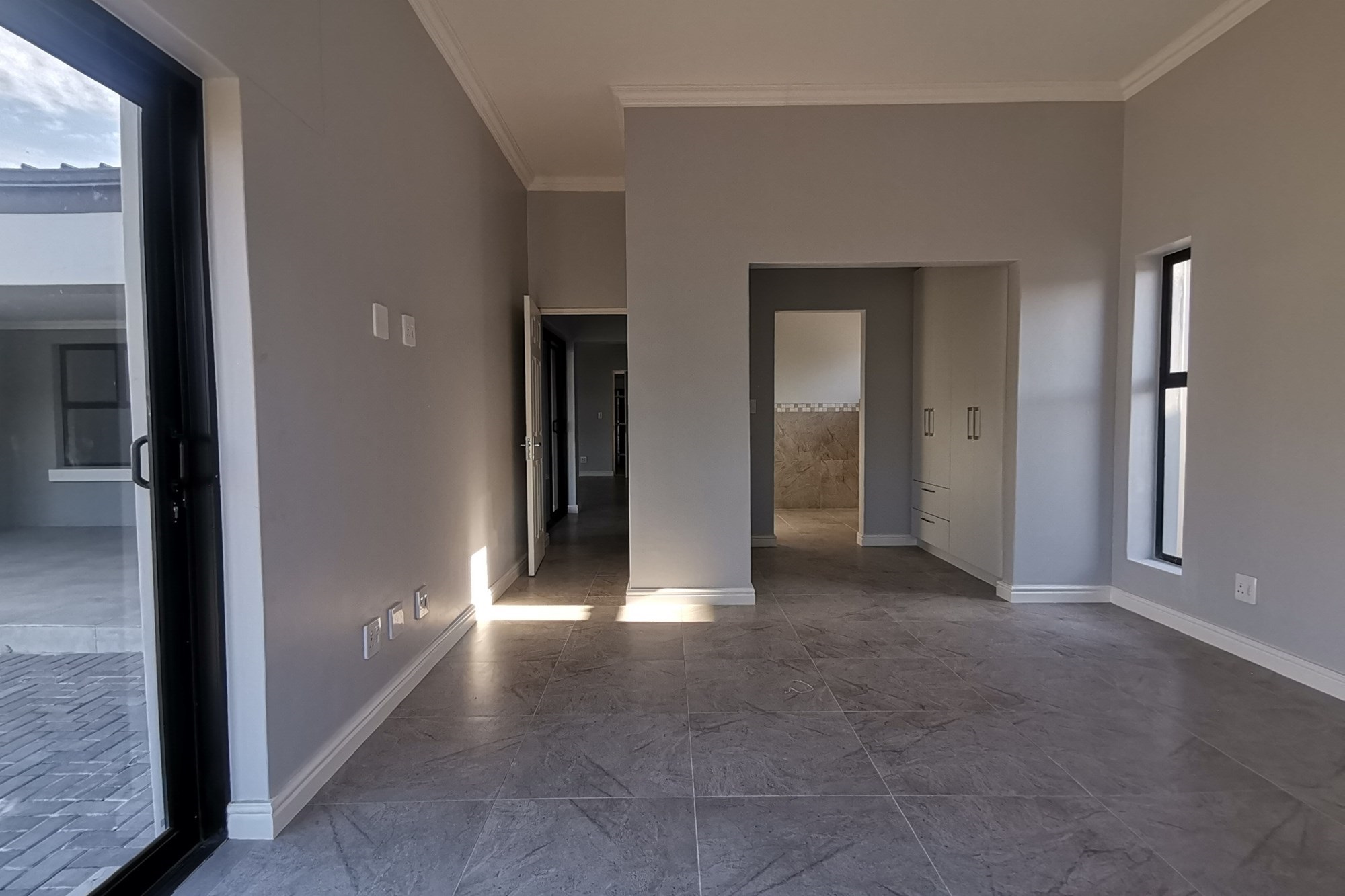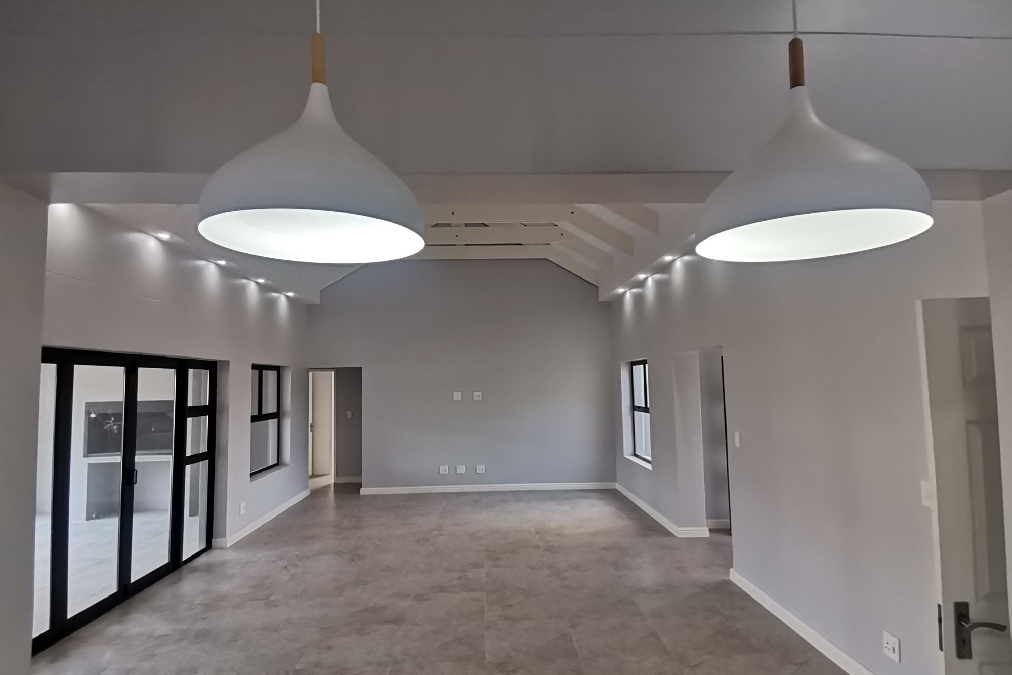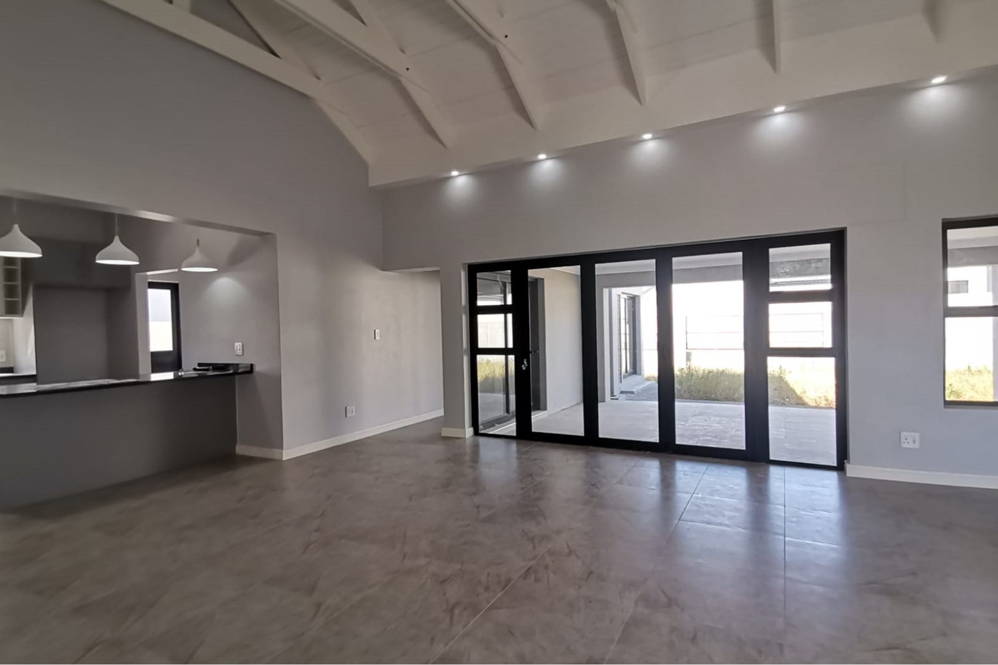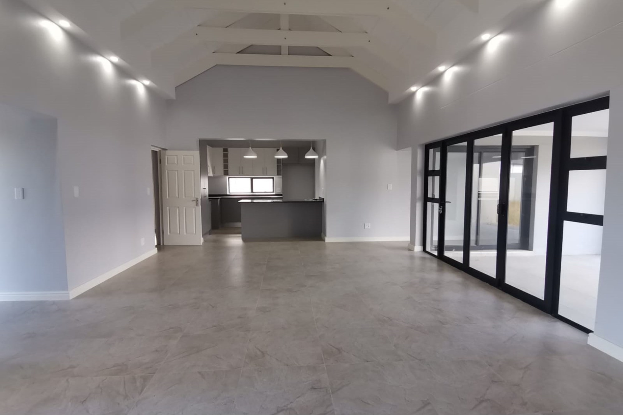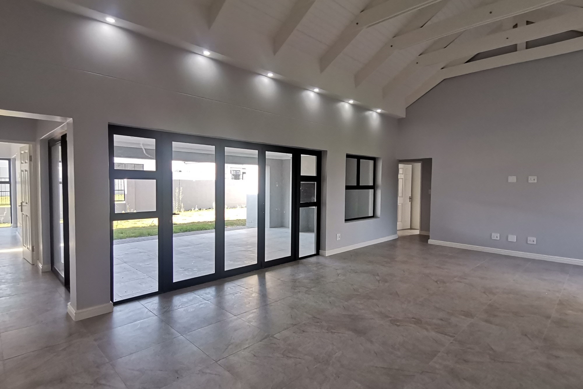 These 4 bedroom homes are designed with open-plan layouts, high ceilings, and expansive windows to maximize light and space. The open-plan living area, with its high ceilings and open trusses, leads to the patio with a braai and large erf space. Modern, open-plan kitchen perfect for entertaining. All four bedrooms have built-in cupboards and access to the shared bathroom with bath, shower, basin and toilet and an additional en-suite bathroom to the third bedroom. The main bedroom also has a full en-suite bathroom with large shower, bath, basin and toilet. An added benefit is the spacious double garage on remote.