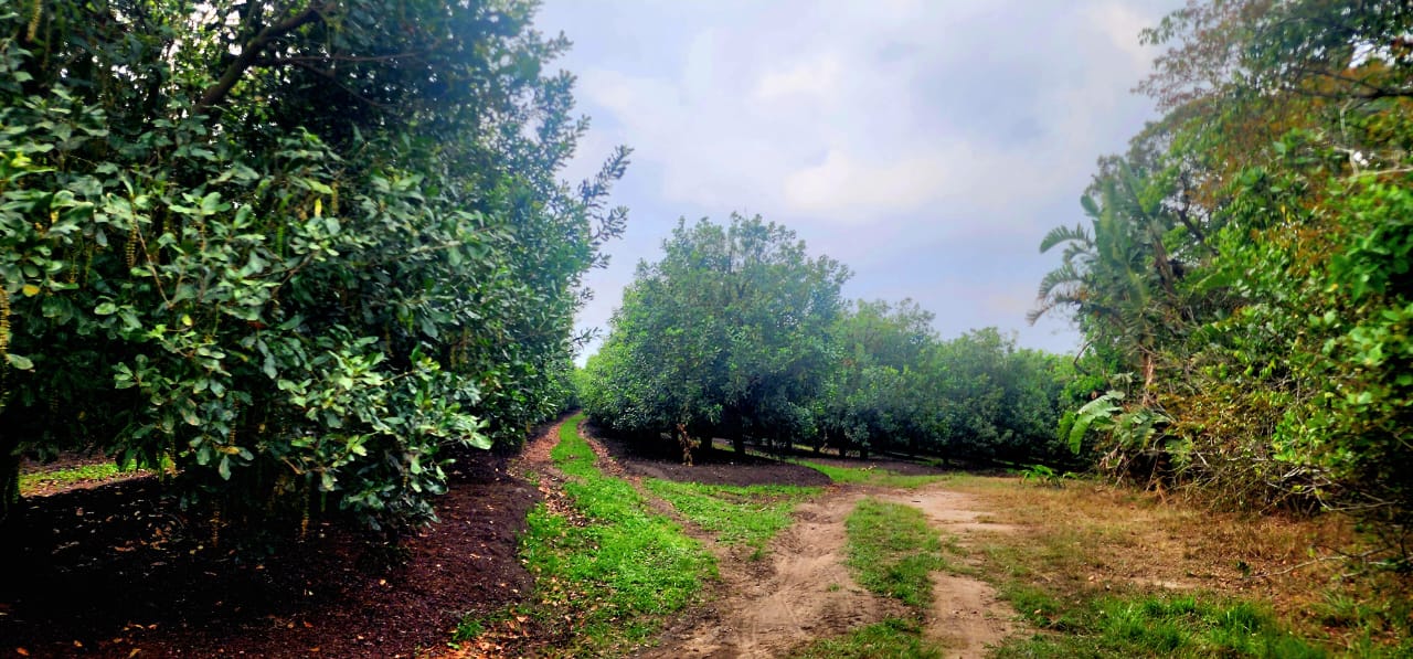 Located in Paddock, 20km from Port Shepstone and 2km from the Oribi Gorge Nature Reserve, set on gently sloping land with 2 large dams totaling 85,000m3. These dams supply the farm via a water purification plant. The farm is fully game fenced with concrete strips along the bottom (1,2m Bonnox, 6 strands Barbed wire and 20 strands electrified) All the houses are secured with electric fencing as well. All trees are under micro irrigation, linked to fertigation, all operated remotely. The 11,3ha of trees are 788, 741 and 816 and Beaumont cultivars ranging in age from 6 years (1,3ha) to between 20 and 24 years (10ha) planted at a density of 400 trees per ha, with a constant supply over the last 8 years of 5 tons per ha. to the factory wet-in-shell.