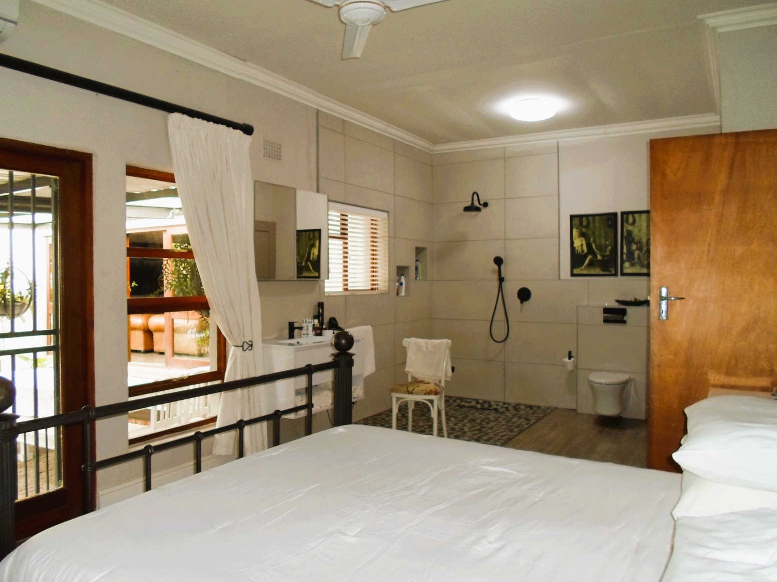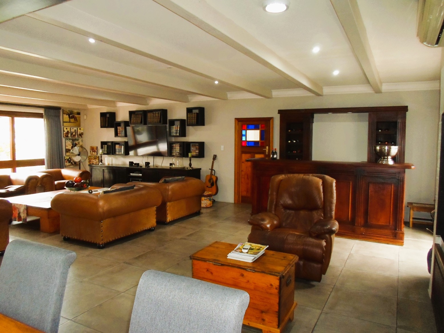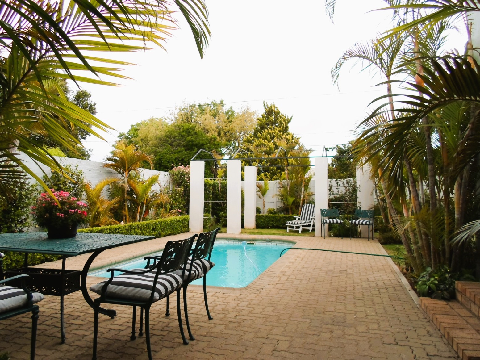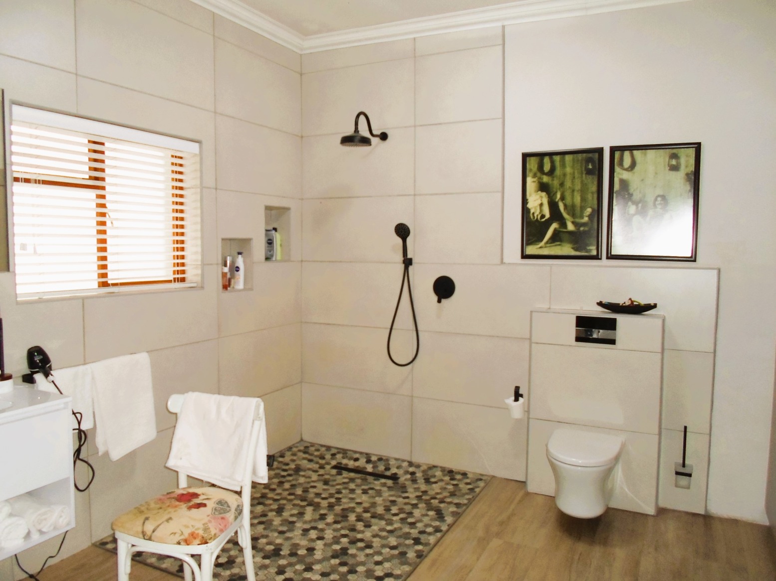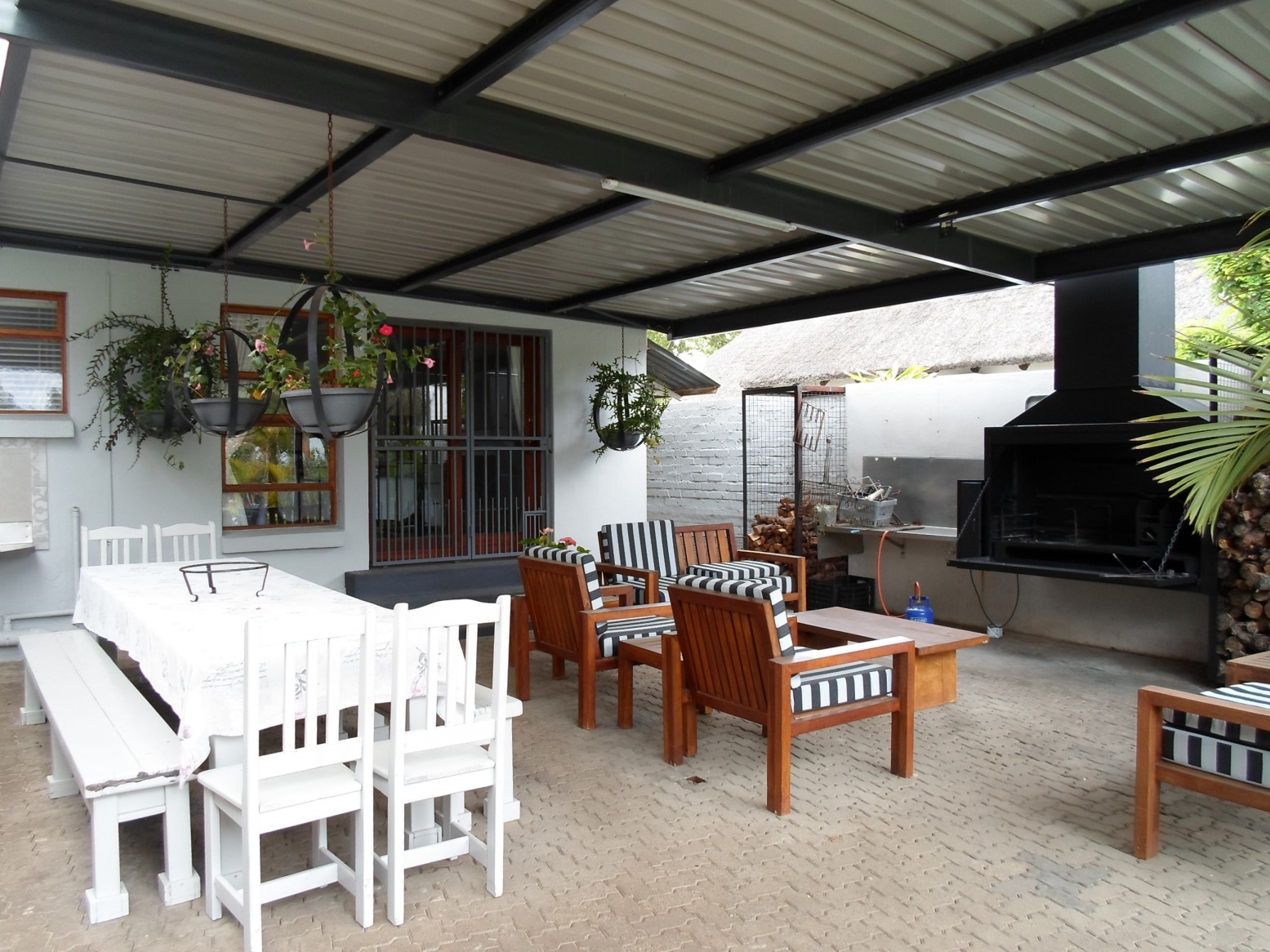 Step outside to the under-roof entertainment area, where you can unwind and enjoy the tranquil garden and sparkling pool. A built-in braai adds to the outdoor entertaining possibilities. The lush greenery surrounding the property provides a serene and peaceful atmosphere.