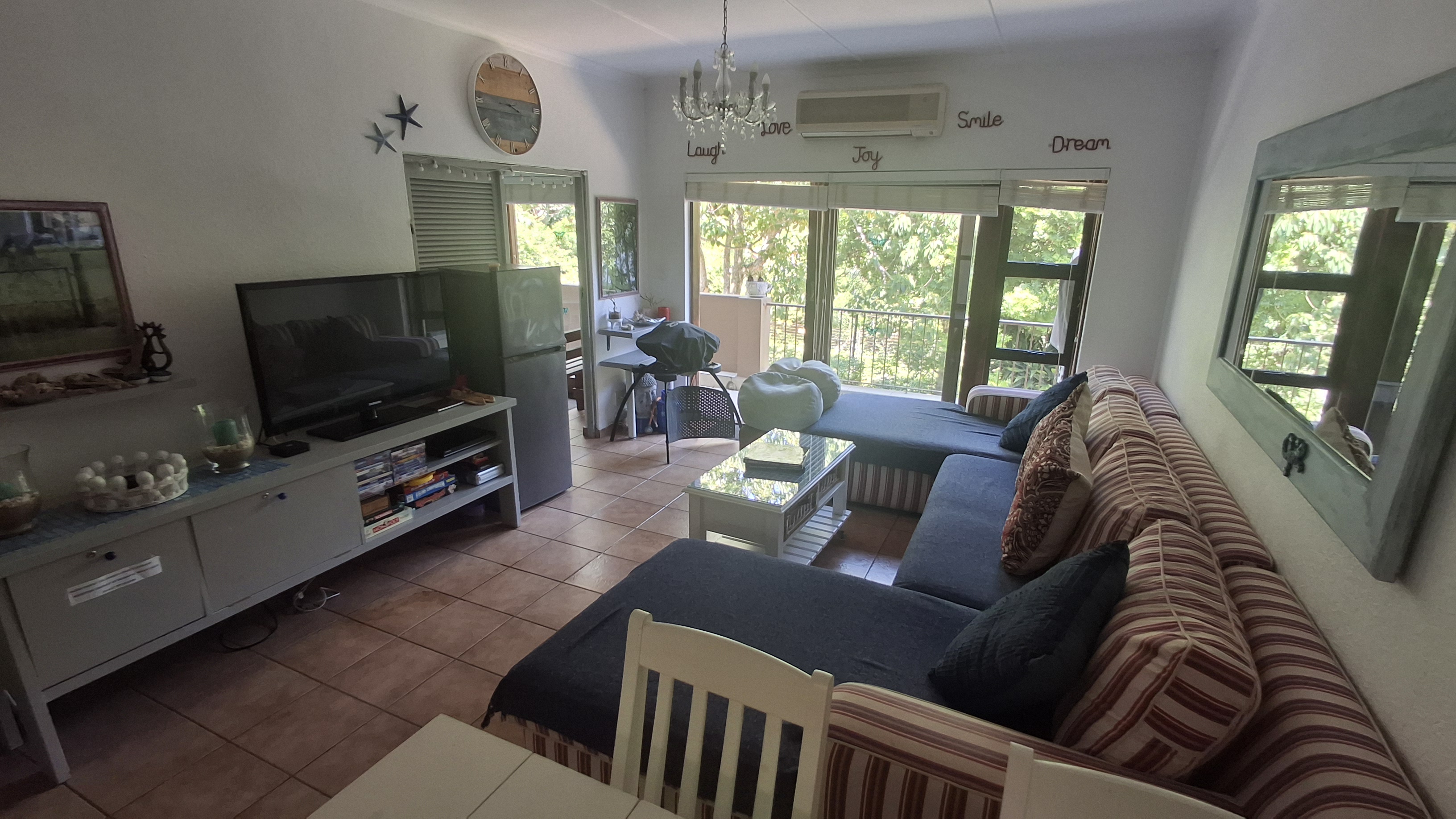 The main bedroom has direct access to the patio where you are so close to the beach that you can hear the waves and smell the sea air. The living room is spacious and includes an air conditioning unit making it comfortable all year round.