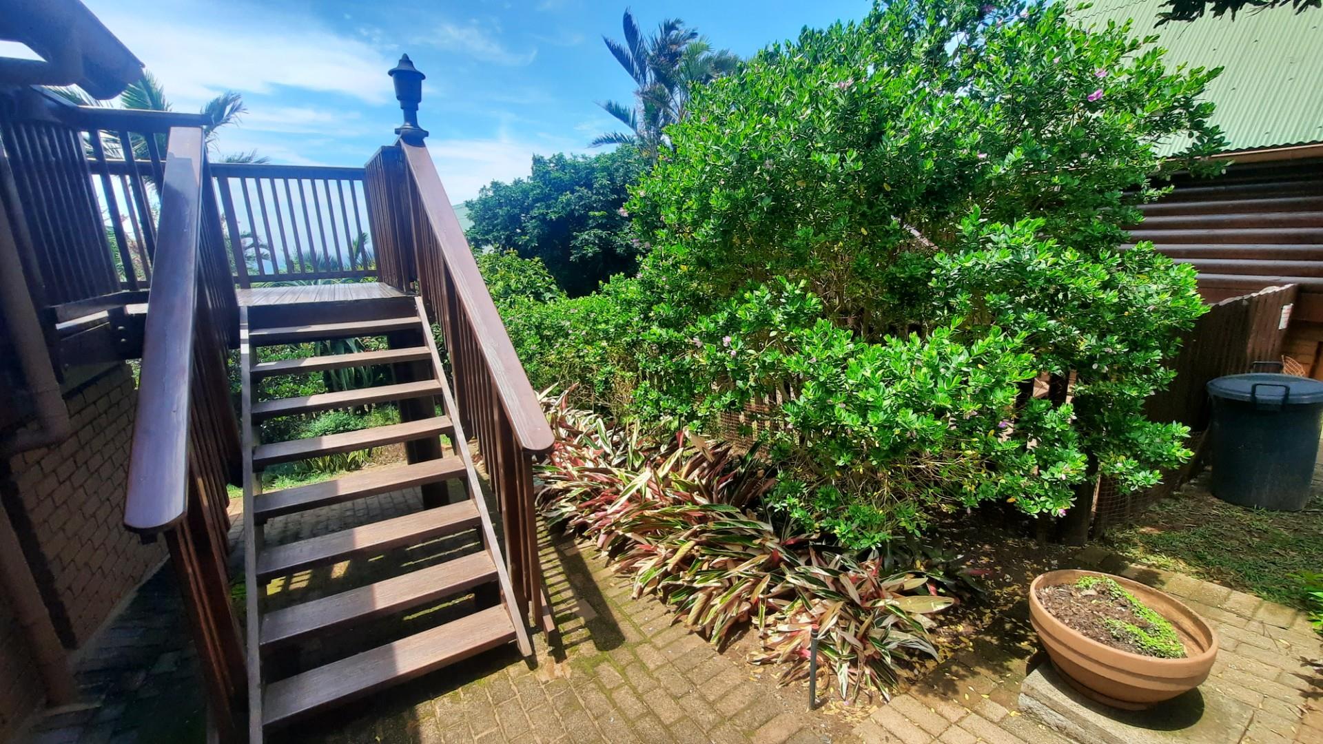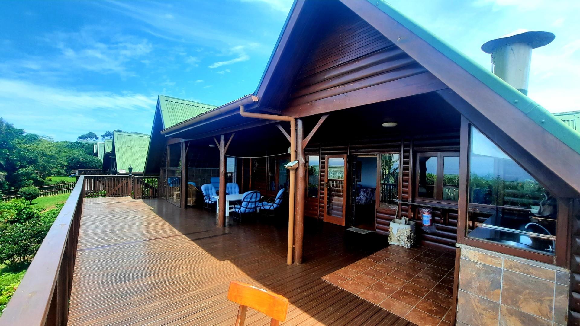 SOLE MANDATE - You will instantly fall in love with this beautiful , spacious log home in the highly popular Forest Homes estate. Pet friendly, ULTRA SECURE, with glorious BREAKER SEA VIEWS and a 4 minute stroll away from the pristine Palm Beach shores. Hear the sea, smell the sea and see the sea! What more could you ask for? Forest Homes is one of the most sought after security estates on the lower South Coast due to its beautiful position overlooking the Indian ocean and the lush forest surrounds. Should you want to let it out as a holiday home, up to R 3000 per night in high season can be attained.