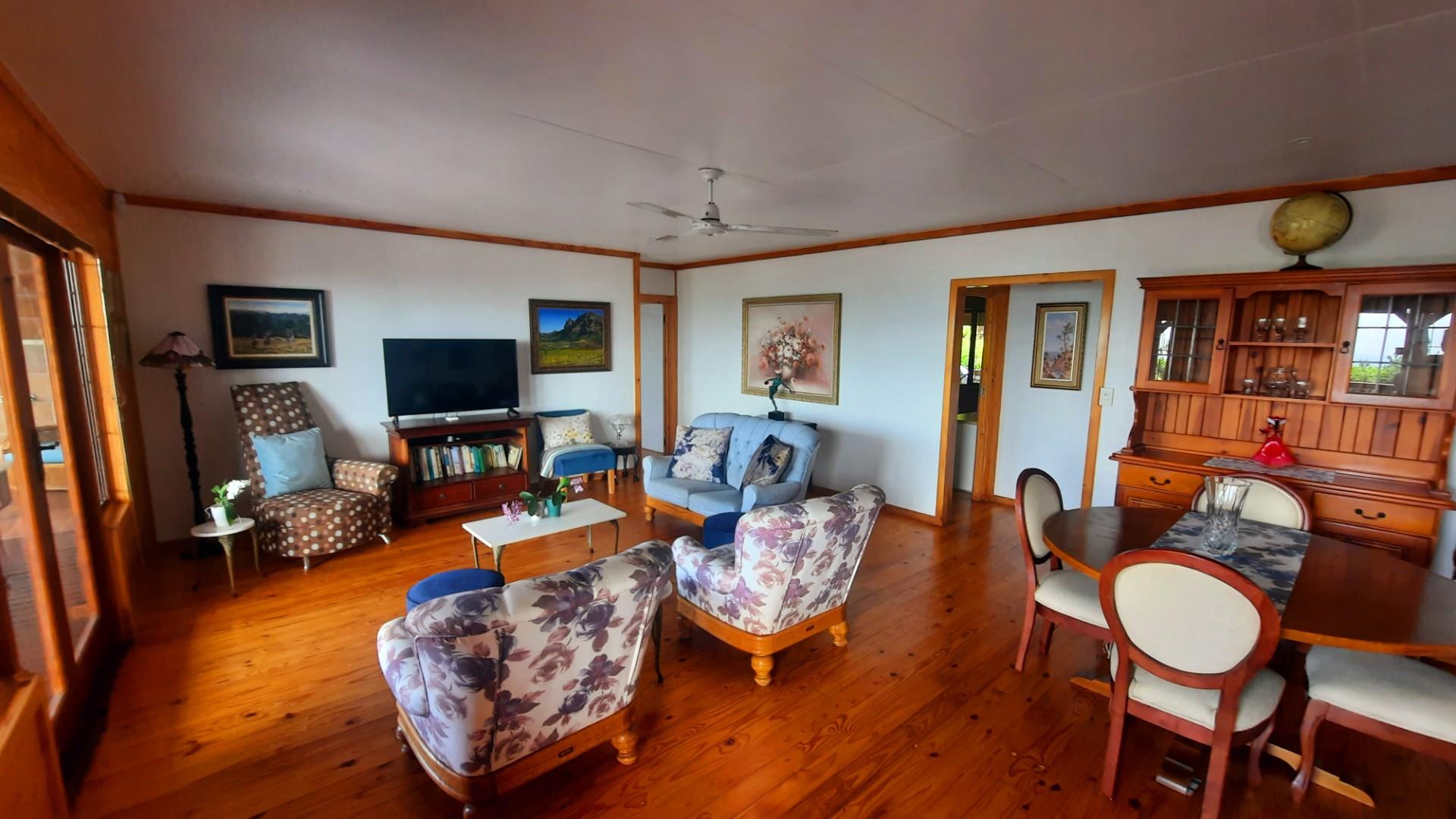 You are going to be enchanted by the ultra spacious wooden deck. The ocean vistas are simply incredible! This is most probably where you are going to want to spend most of your time!. There is a seamless inside/outside flow from large open plan living areas. The finishes throughout this home are beautiful and up to date. The bathrooms are modern, the bedrooms spacious and the tastefully renovated eat- in kitchen has plenty of cupboards, beautiful granite tops and space for all your appliances! Stacking windows open to the built in braai area in a corner of the deck. There is a tandem double carport an a huge seperate storage area for all your "toys". Two 5000 l water tanks ensure water at all times. Provision has also been made for rainwater harvesting.