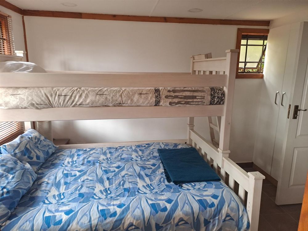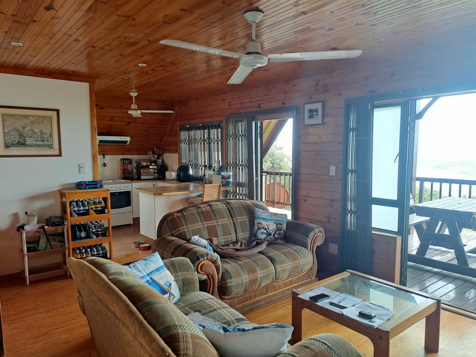 The upstairs unit is wheelchair accesible and consists of 3 bedrooms, 2 bathrooms( 1 en-suite) and a comfortable open plan living area opening to the ultra spacious deck with a built in gas braai. The 180 degree sea and breaker views from here are truly SPECTACULAR! All kitchen appliances and most of the furniture are included at no extra cost. An inside staircase linking upstairs to downstairs is already in place should you acquire this property for a larger family. Should you want the bottom unit to be completely seperate, it can be closed with ease. Downstairs could also be the ideal entertainment space. It is mostly open plan with one spacious bedroom , en suite bathroom , its own kitchen and a beautiful solid wood built in bar. It comes FULLY FURNISHED. As in the upstairs unit, French doors open from the living areas onto the expansive wooden deck with its beautiful sea views!