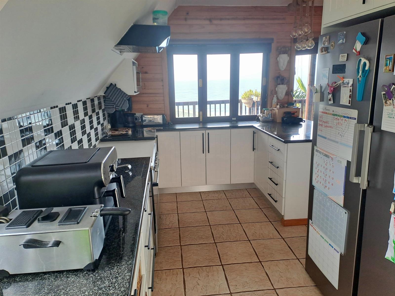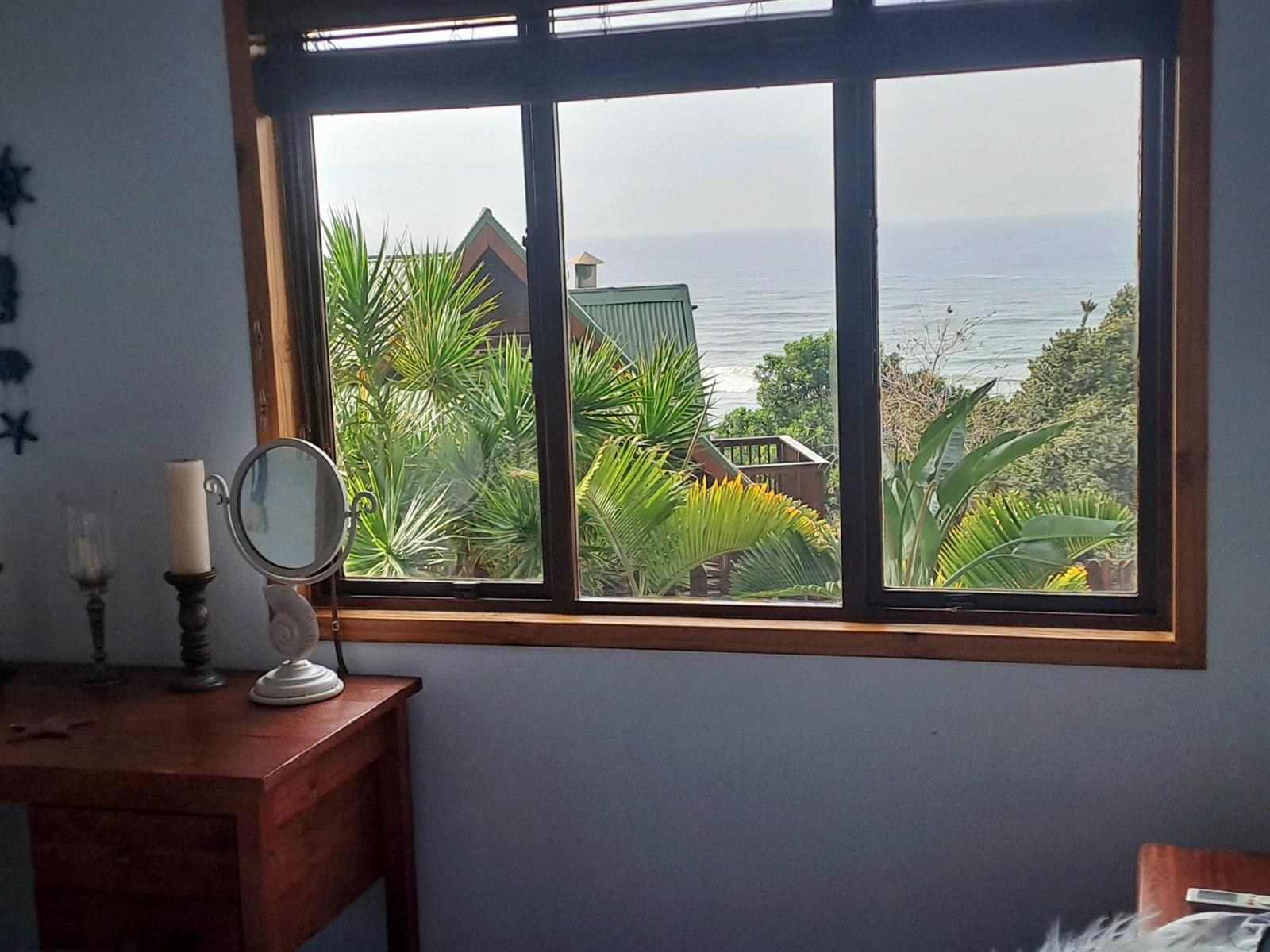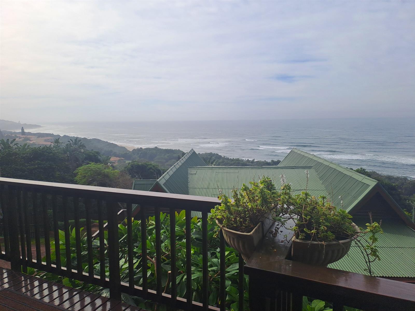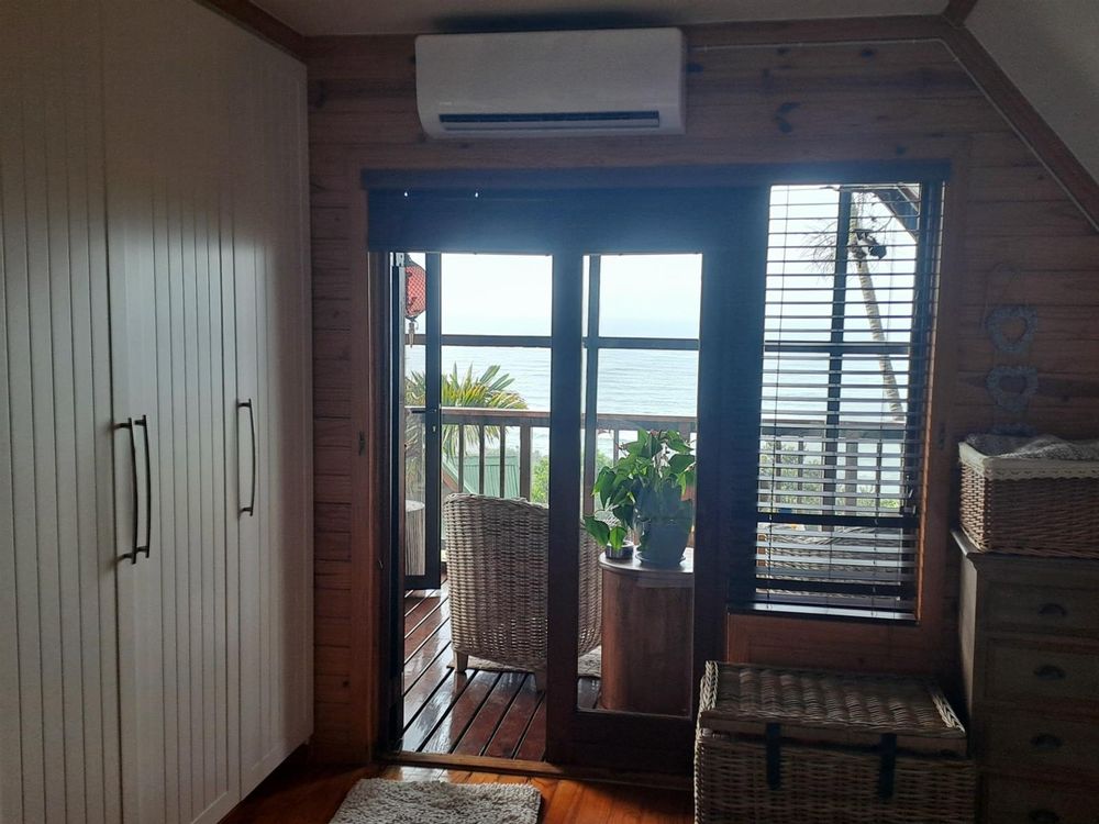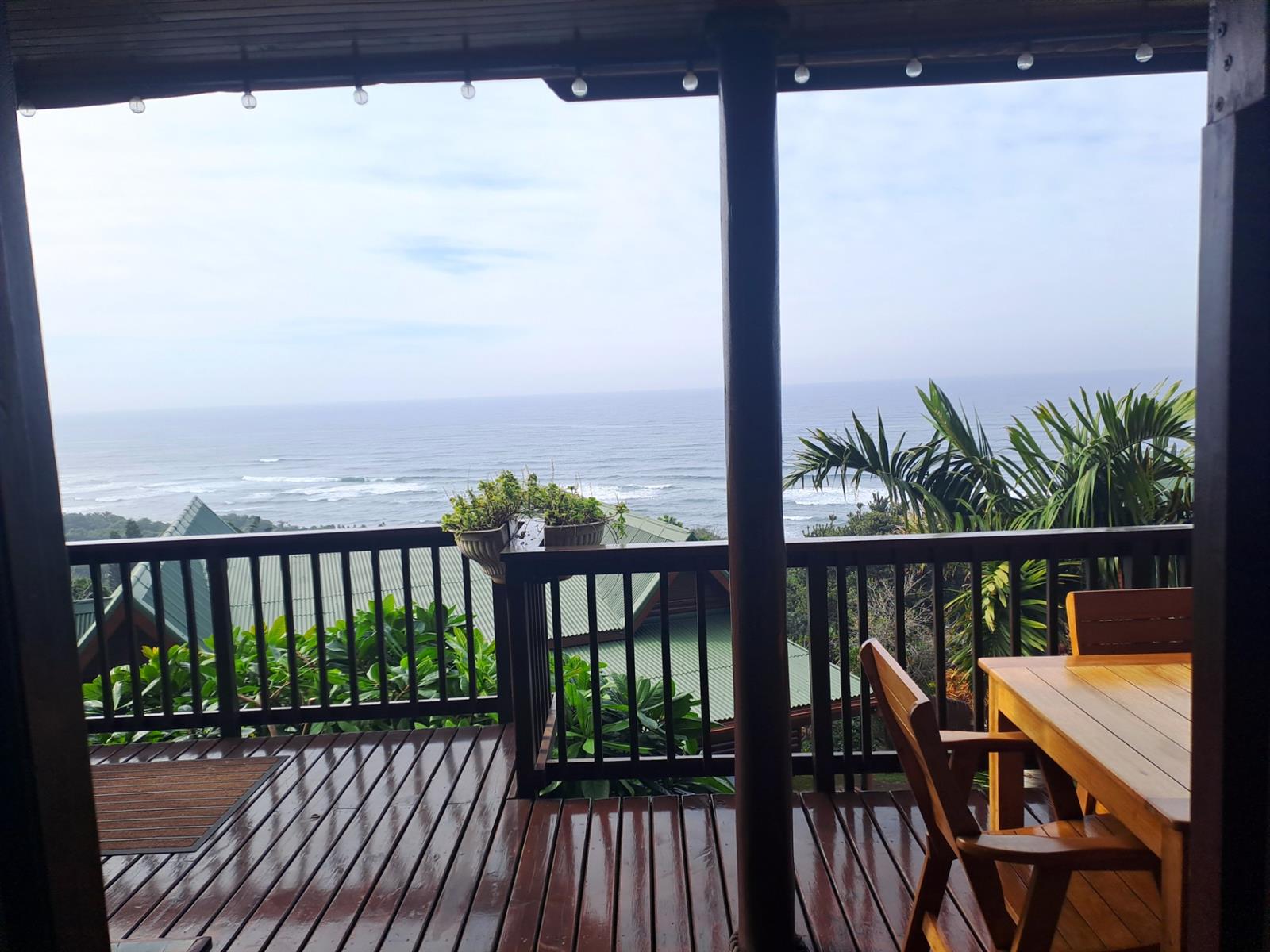 .You are going to be enchanted by the ultra private main house with its expansive wooden deck. The ocean vistas are simply incredible. This is probably where you are going to want to spend most of your time!. There is a seamless inside/outside flow from large open plan living areas. The finishes throughout this home are beautiful and up to date. The bathrooms are modern, the bedrooms spacious and the tastefully renovated eat- in kitchen has plenty of cupboards, beautiful granite tops and space for all your appliances! Stacking windows open to the built in braai area in a corner of the deck. A delightful feauture is the enclosed " pajama lounge" linked to the master bedroom. It forms part of the deck. There is a tandem double garage with a seperate storage area for all your "toys", as well as APPROVED plans for a carport. An INVERTER with 3 batteries and two 5000 l water tanks ensure electricity and water at all times. Provision has also been made for rainwater harvesting. Many extras include 5 airconditioners- 3 upstairs and 2 downstairs.