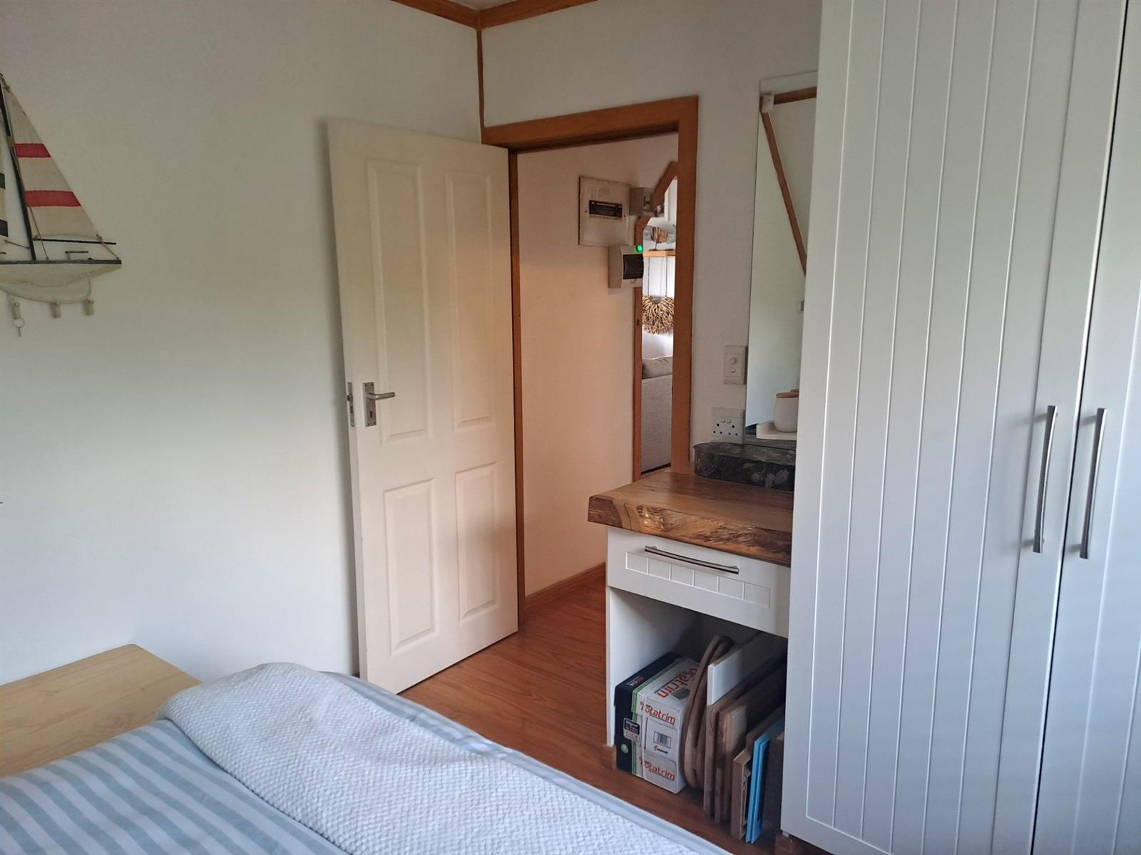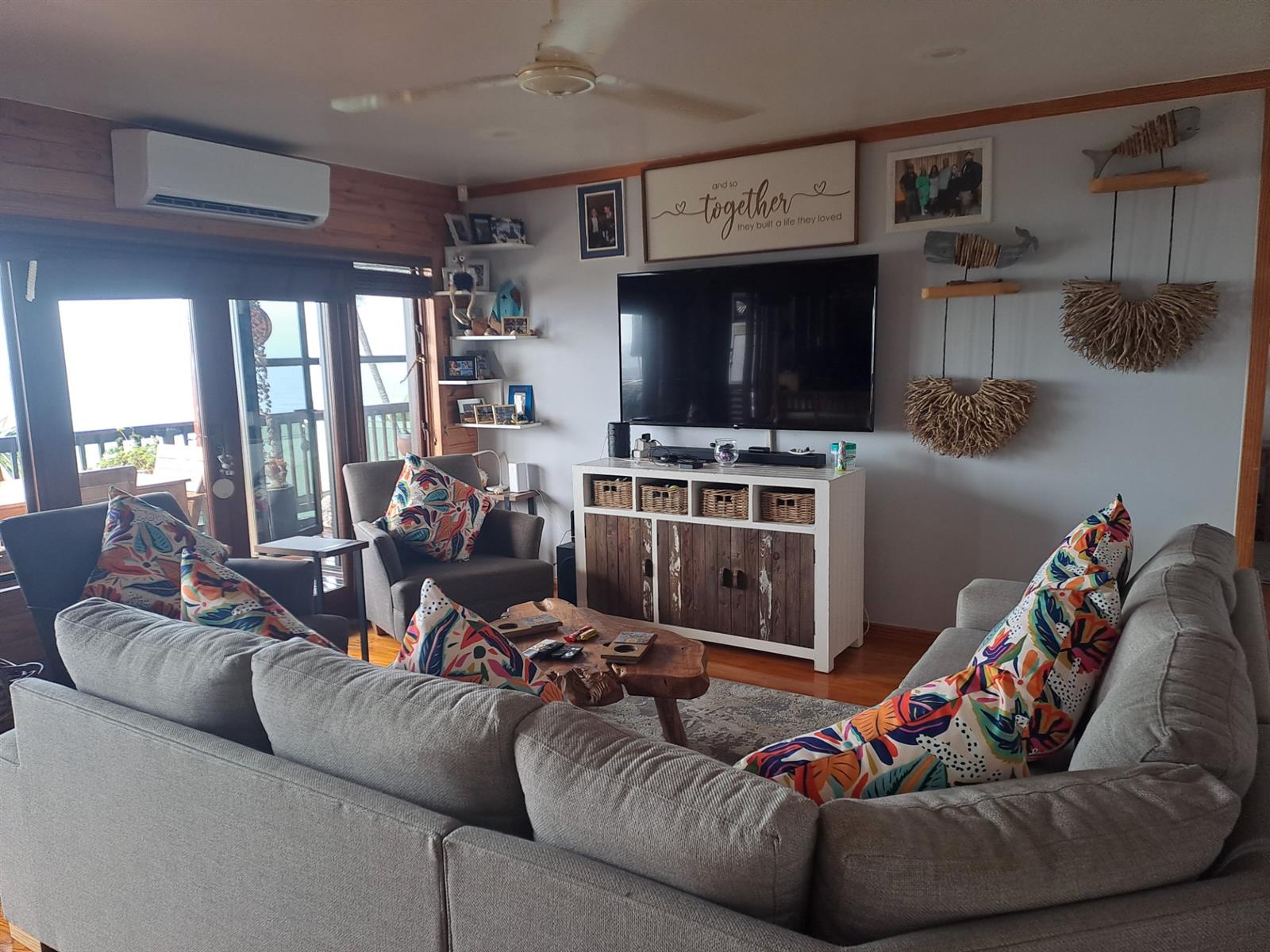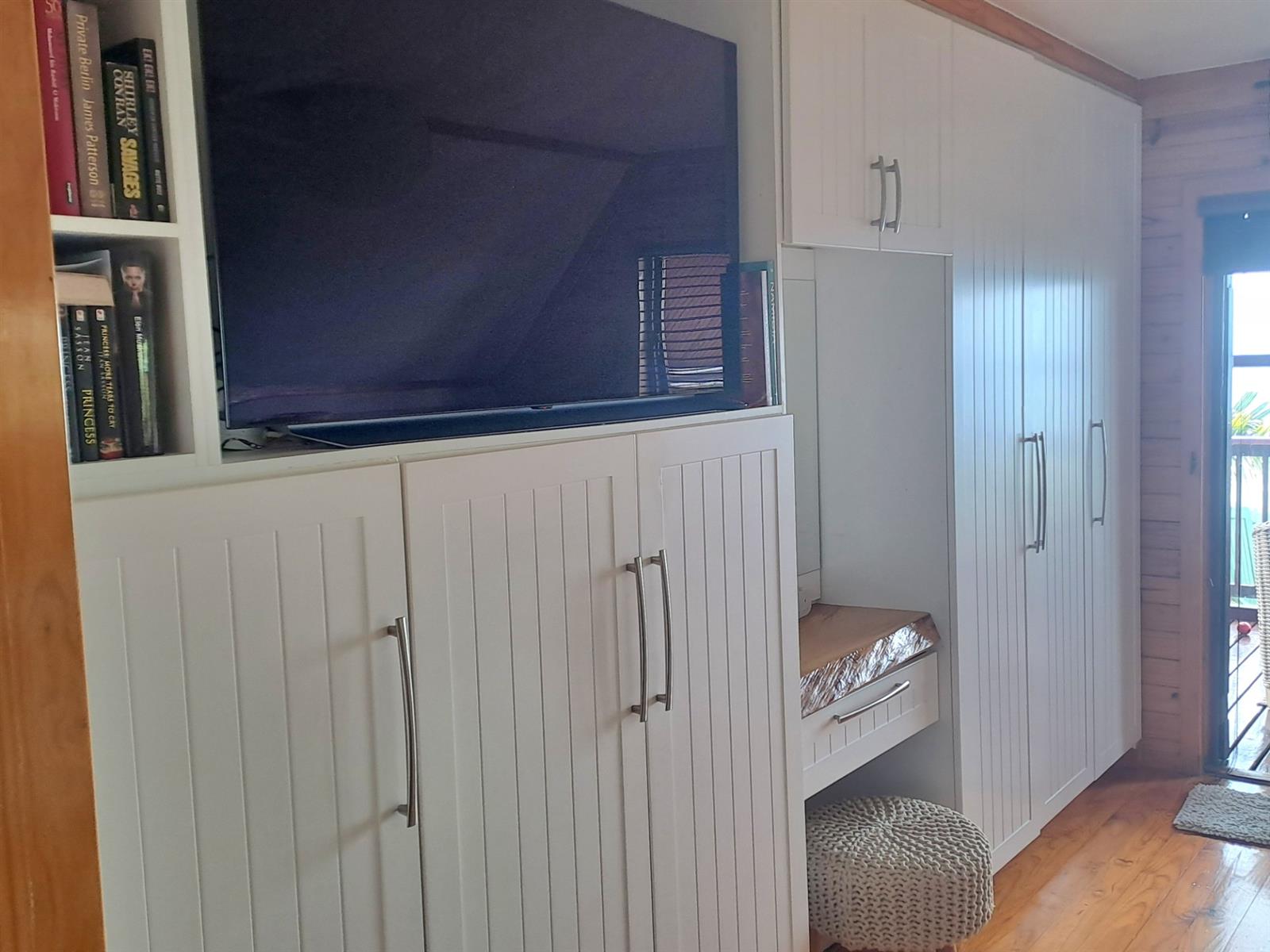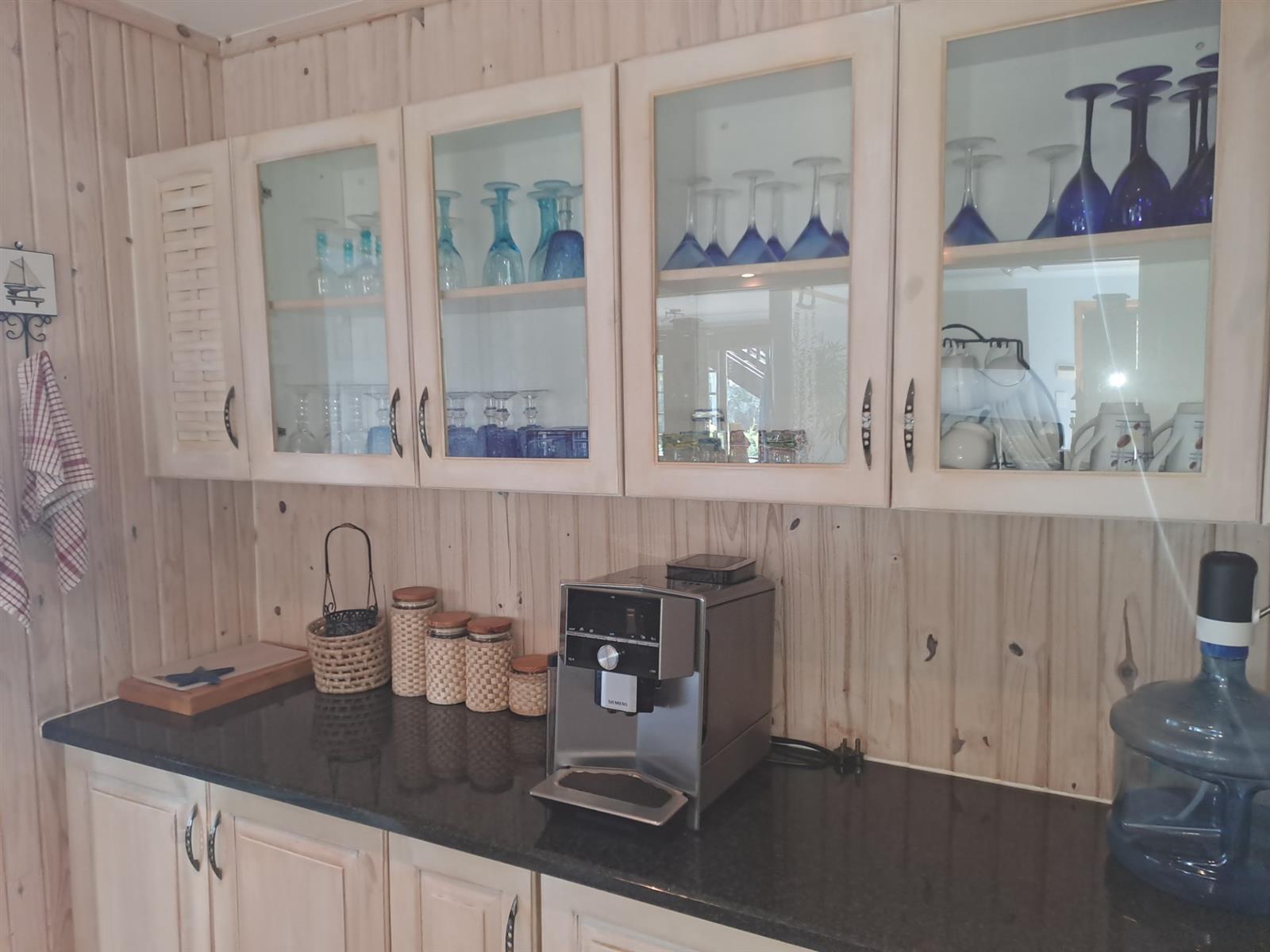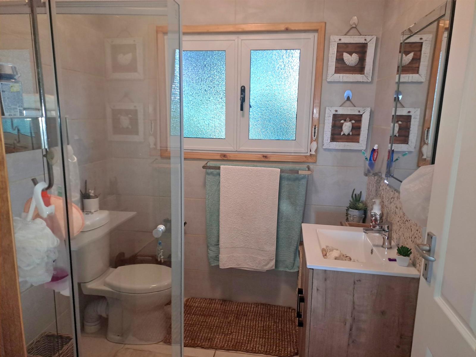 .You are going to be enchanted by the ultra private main house with its expansive wooden deck. The ocean vistas are simply incredible. This is probably where you are going to want to spend most of your time!. There is a seamless inside/outside flow from large open plan living areas. The finishes throughout this home are beautiful and up to date. The bathrooms are modern, the bedrooms spacious and the tastefully renovated eat- in kitchen has plenty of cupboards, beautiful granite tops and space for all your appliances! Stacking windows open to the built in braai area in a corner of the deck. A delightful feauture is the enclosed " pajama lounge" linked to the master bedroom. It forms part of the deck. There is a tandem double garage with a seperate storage area for all your "toys", as well as APPROVED plans for a carport. An INVERTER with 3 batteries and two 5000 l water tanks ensure electricity and water at all times. Provision has also been made for rainwater harvesting. Many extras include 5 airconditioners- 3 upstairs and 2 downstairs.