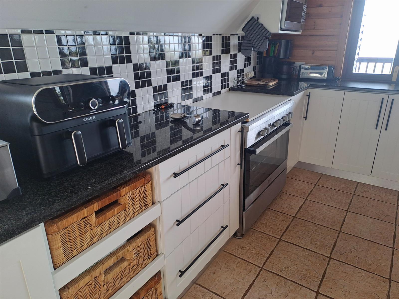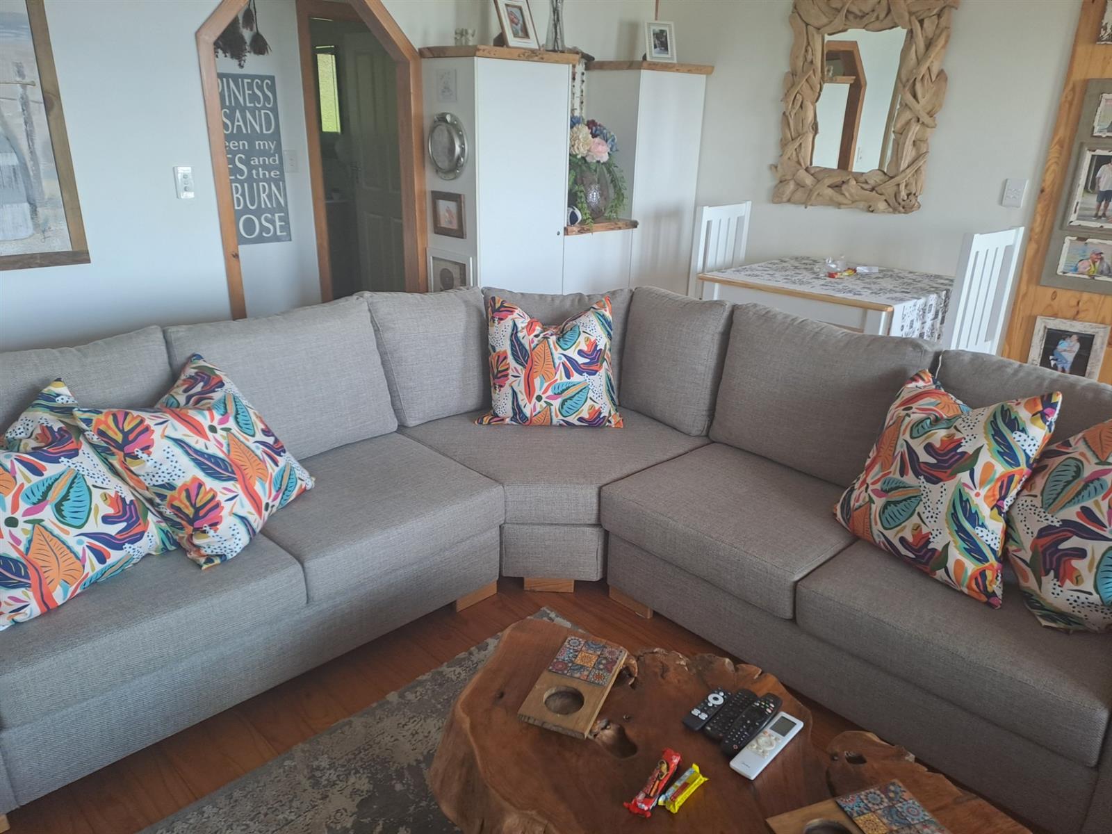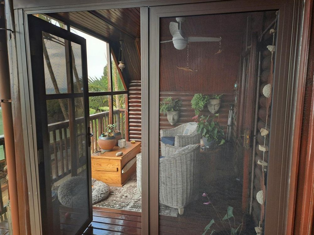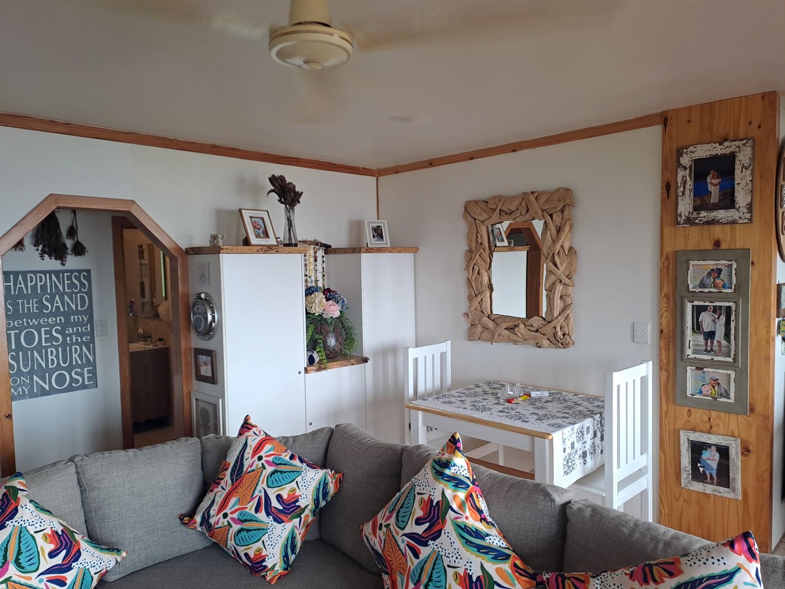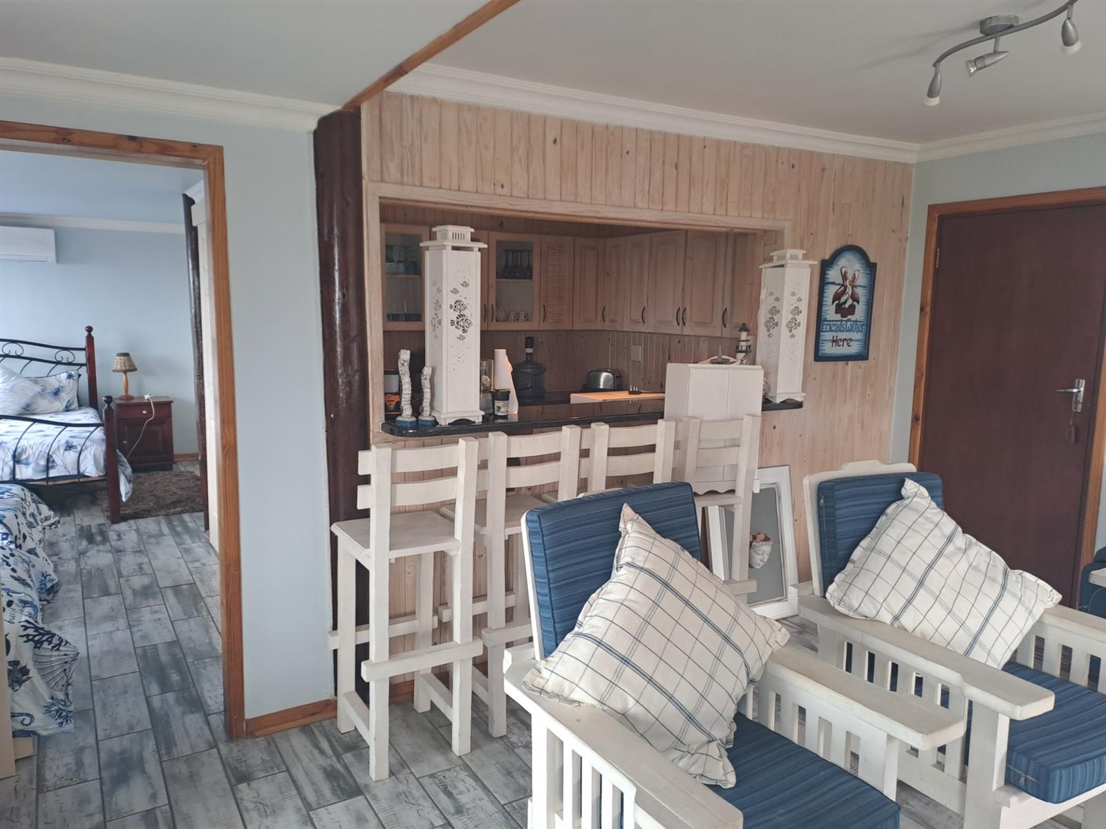 .You are going to be enchanted by the ultra private main house with its expansive wooden deck. The ocean vistas are simply incredible. This is probably where you are going to want to spend most of your time!. There is a seamless inside/outside flow from large open plan living areas. The finishes throughout this home are beautiful and up to date. The bathrooms are modern, the bedrooms spacious and the tastefully renovated eat- in kitchen has plenty of cupboards, beautiful granite tops and space for all your appliances! Stacking windows open to the built in braai area in a corner of the deck. A delightful feauture is the enclosed " pajama lounge" linked to the master bedroom. It forms part of the deck. There is a tandem double garage with a seperate storage area for all your "toys", as well as APPROVED plans for a carport. An INVERTER with 3 batteries and two 5000 l water tanks ensure electricity and water at all times. Provision has also been made for rainwater harvesting. Many extras include 5 airconditioners- 3 upstairs and 2 downstairs.