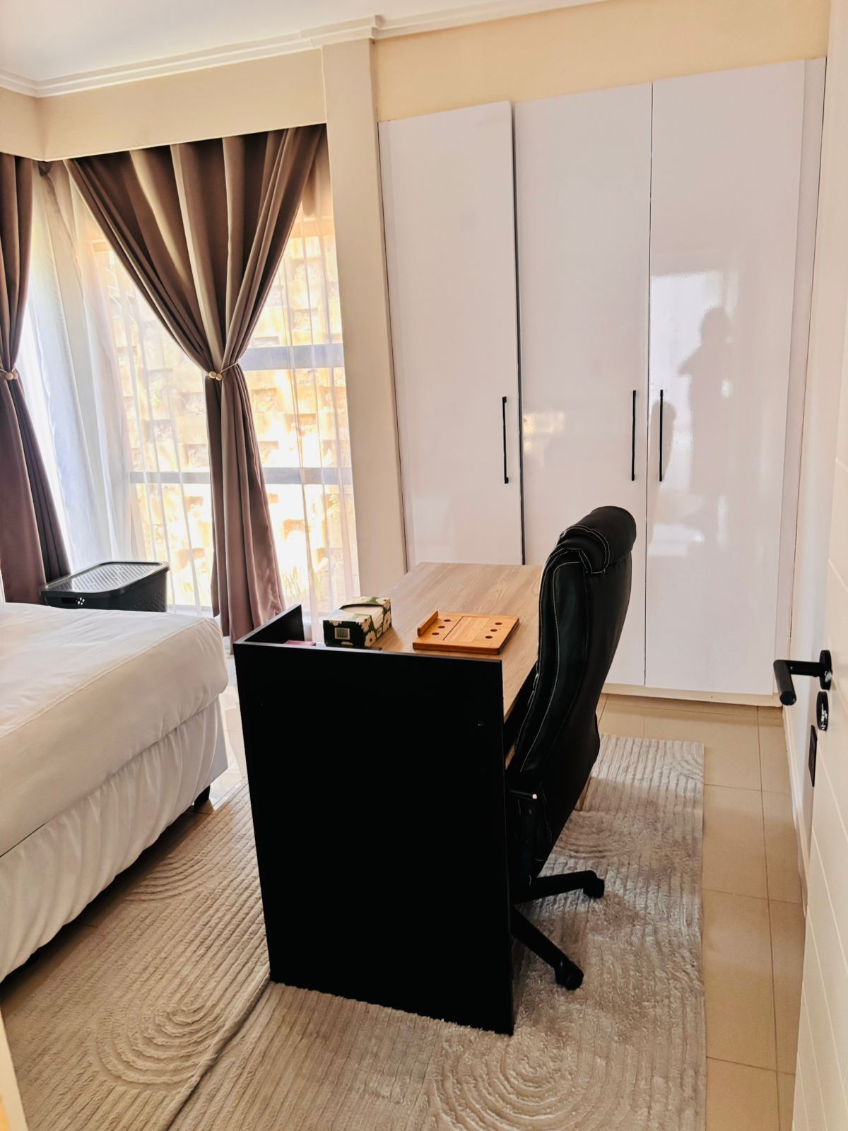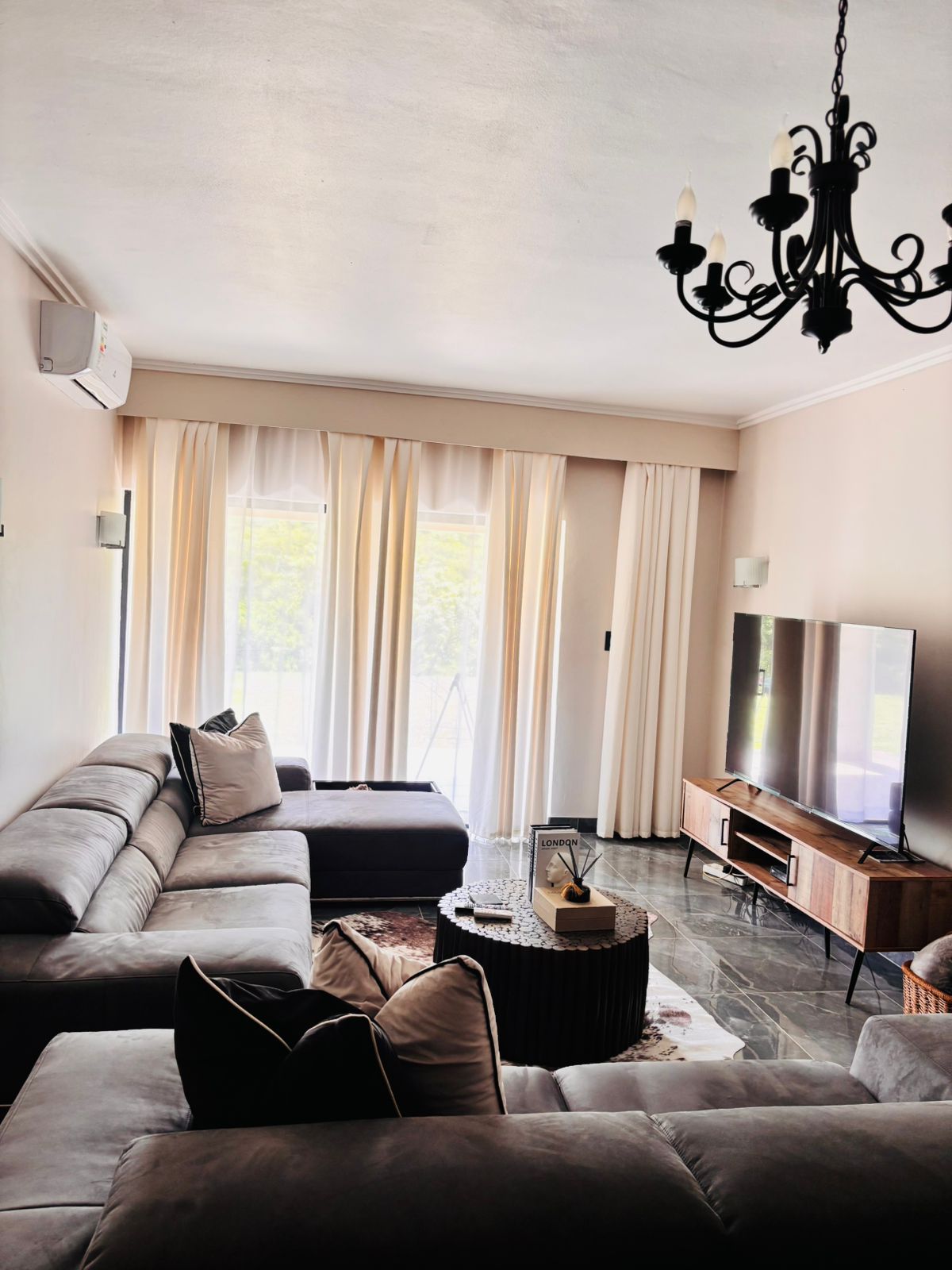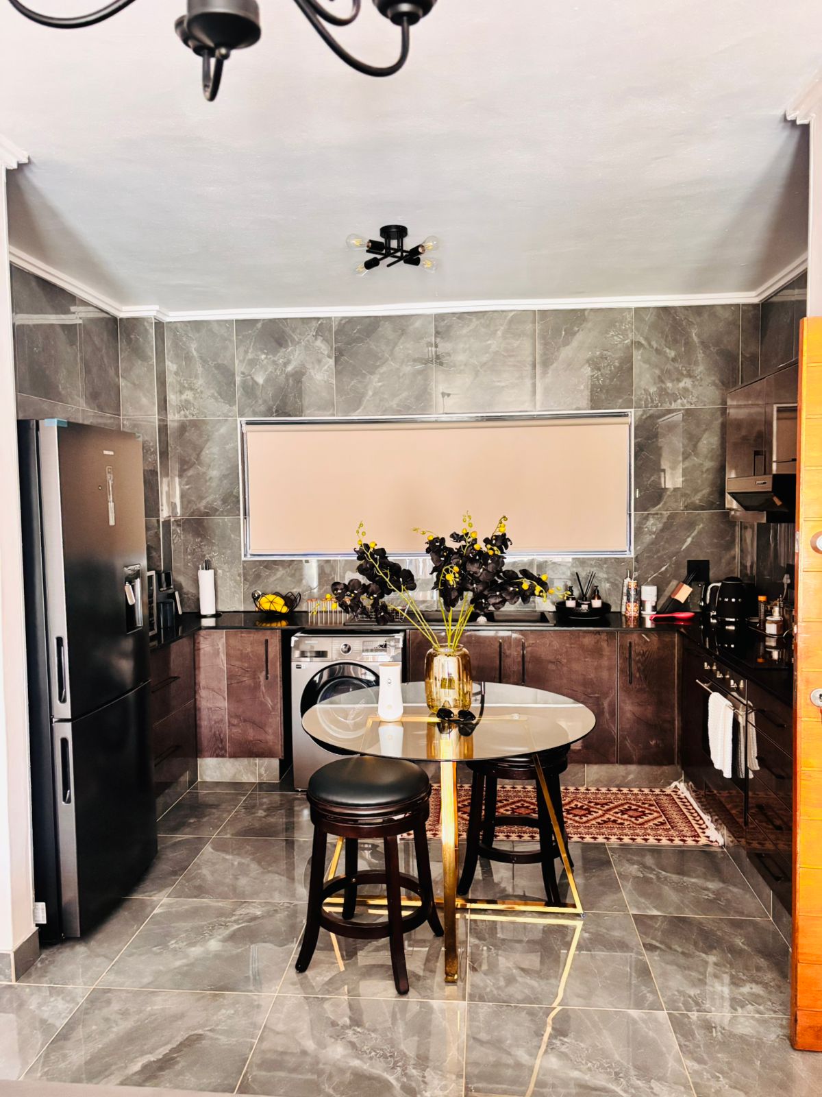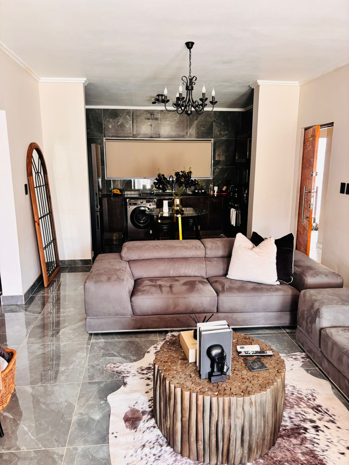 As you enter, you’re welcomed by a spacious, open-plan kitchen featuring contemporary finishes and ample cupboard space. This stylish kitchen effortlessly combines functionality and elegance, making meal preparation a pleasure. The airy layout is filled with natural light and flows seamlessly into the dining area and living room, creating a warm and inviting space for everyday living or entertaining.