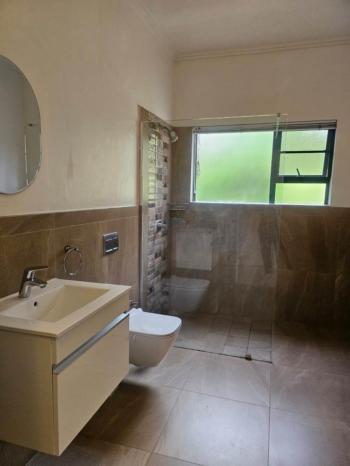 All three bedrooms are well-sized, with built-in cupboards and plenty of natural light. The main bedroom features an en-suite bathroom, while the second bathroom is full and neatly finished, serving the additional bedrooms with ease.