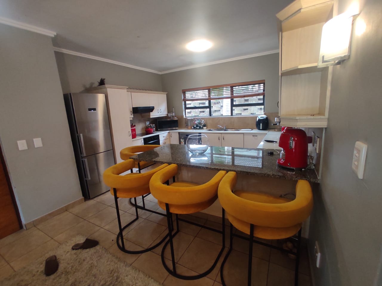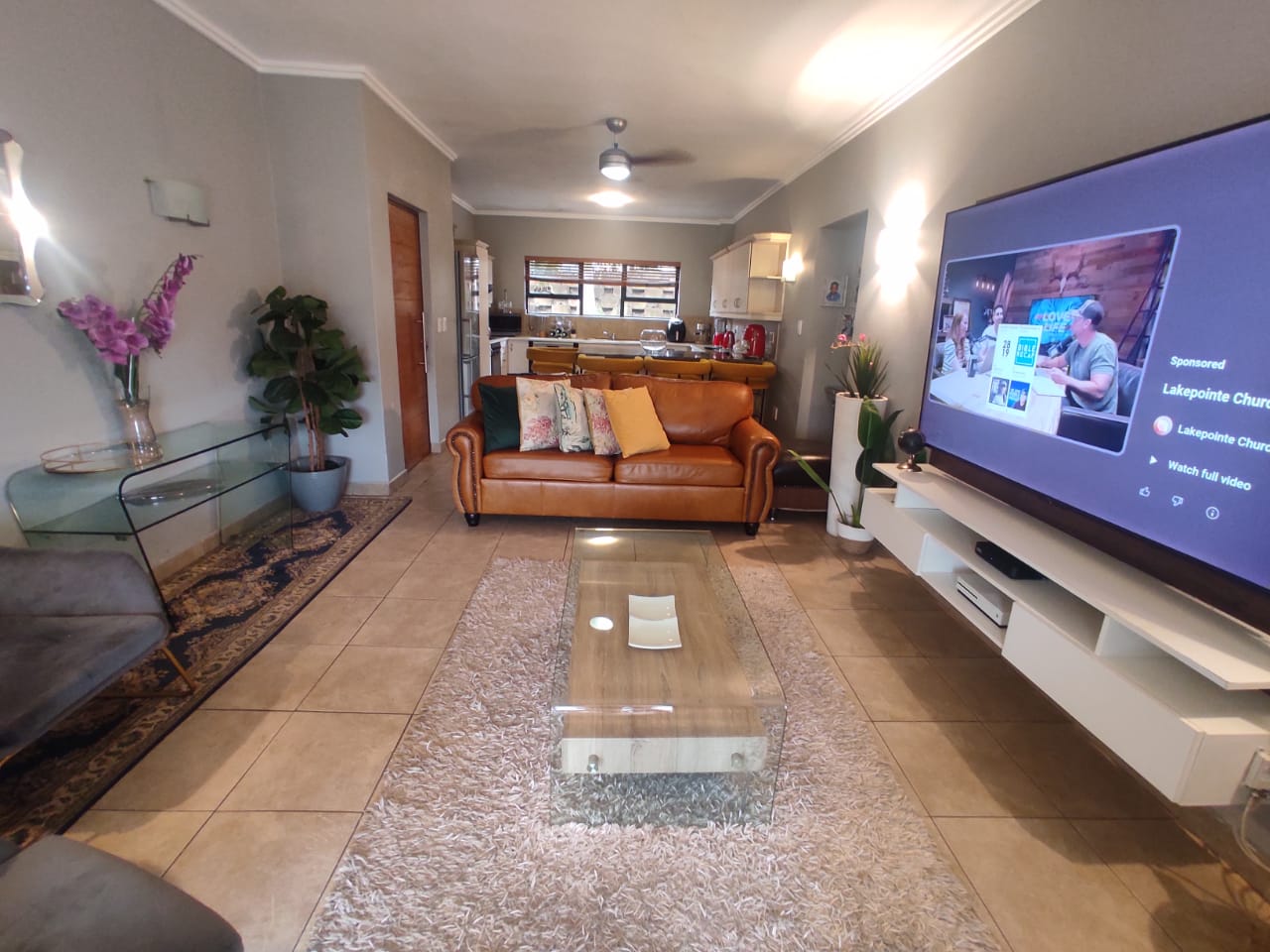 The apartment includes two covered parking bays. The living area opens onto a communal garden with a lovely view, perfect for relaxing or enjoying time outdoors. Conveniently situated within a secure, beautifully maintained estate, this property is ideal for families seeking a safe, peaceful, and contemporary lifestyle.