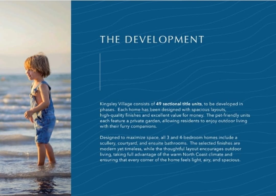 Kingsley Village consists of 49 sectional title units. Each home has been designed with spacious layouts, high-quality finishes and excellent value for money. The pet-friendly units each feature a private garden.