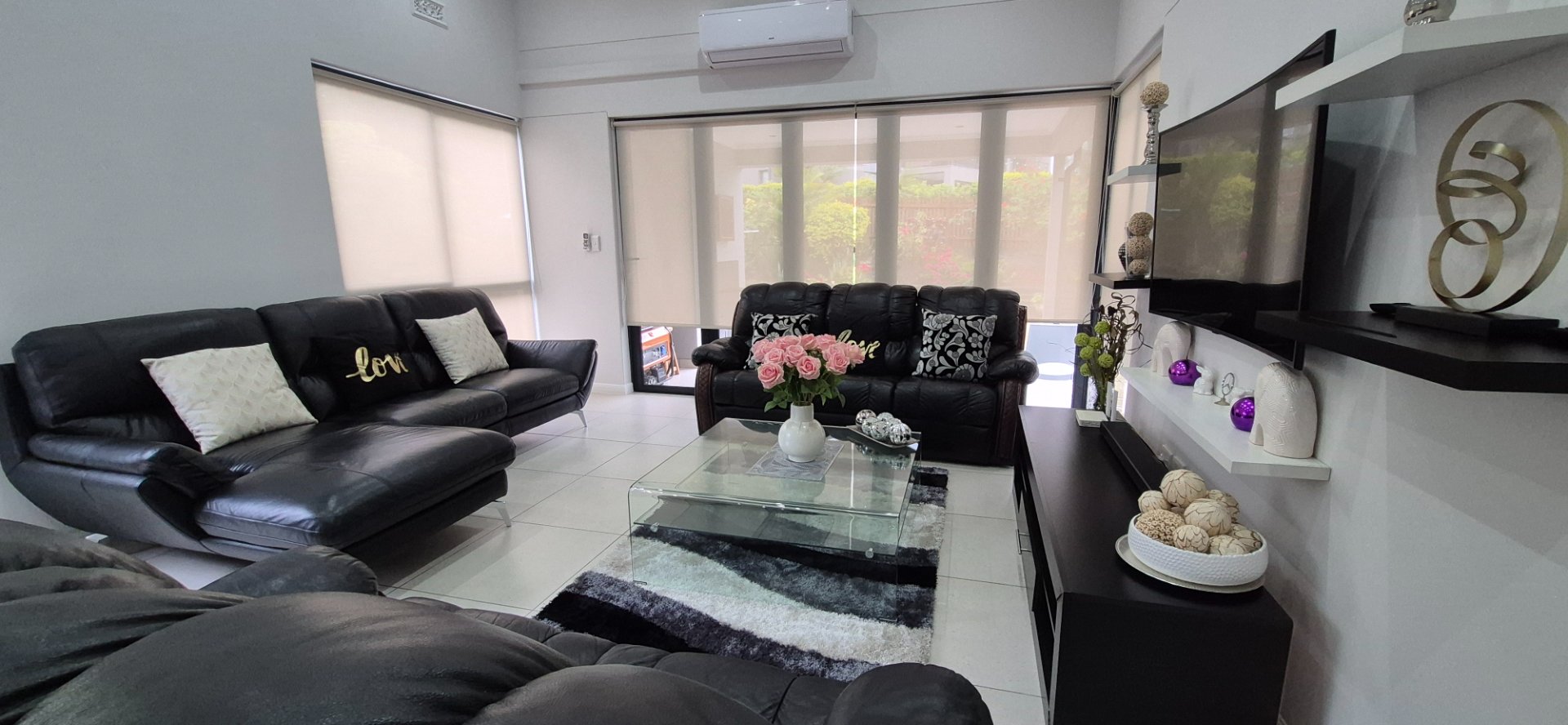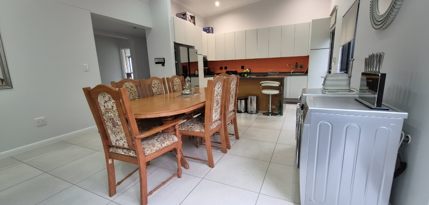 EXCLUSIVE MANDATE:. Step into modern luxury with this immaculate 4-bedroom, 3-bathroom double garage home in a luxurious Palm Lakes Family Estate. Perfectly designed for family living, this residence offers spacious open-plan interiors, a sleek kitchen that flows seamlessly into the living and dining areas, and large windows that welcome in natural light.