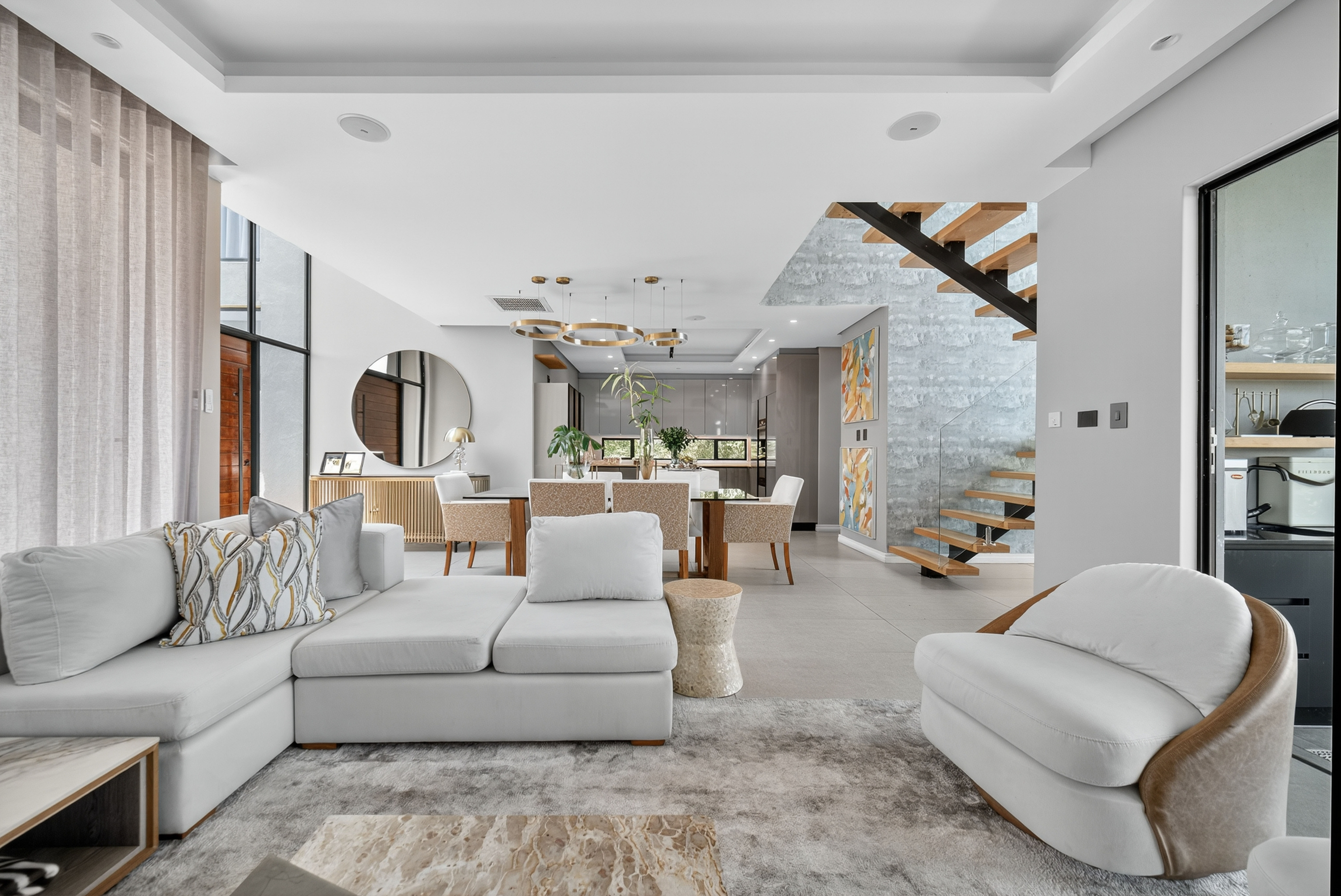Nestled in a peaceful and private setting, this beautifully designed 4-bedroom, 4.5 -bathroom home offers contemporary living at its best. Each room is thoughtfully decorated with stylish finishes and ample natural light. The open-plan layout seamlessly connects the modern kitchen, spacious living areas, and outdoor entertainment space featuring a sparkling pool and a modern BAR area for your leisurely entertainment .