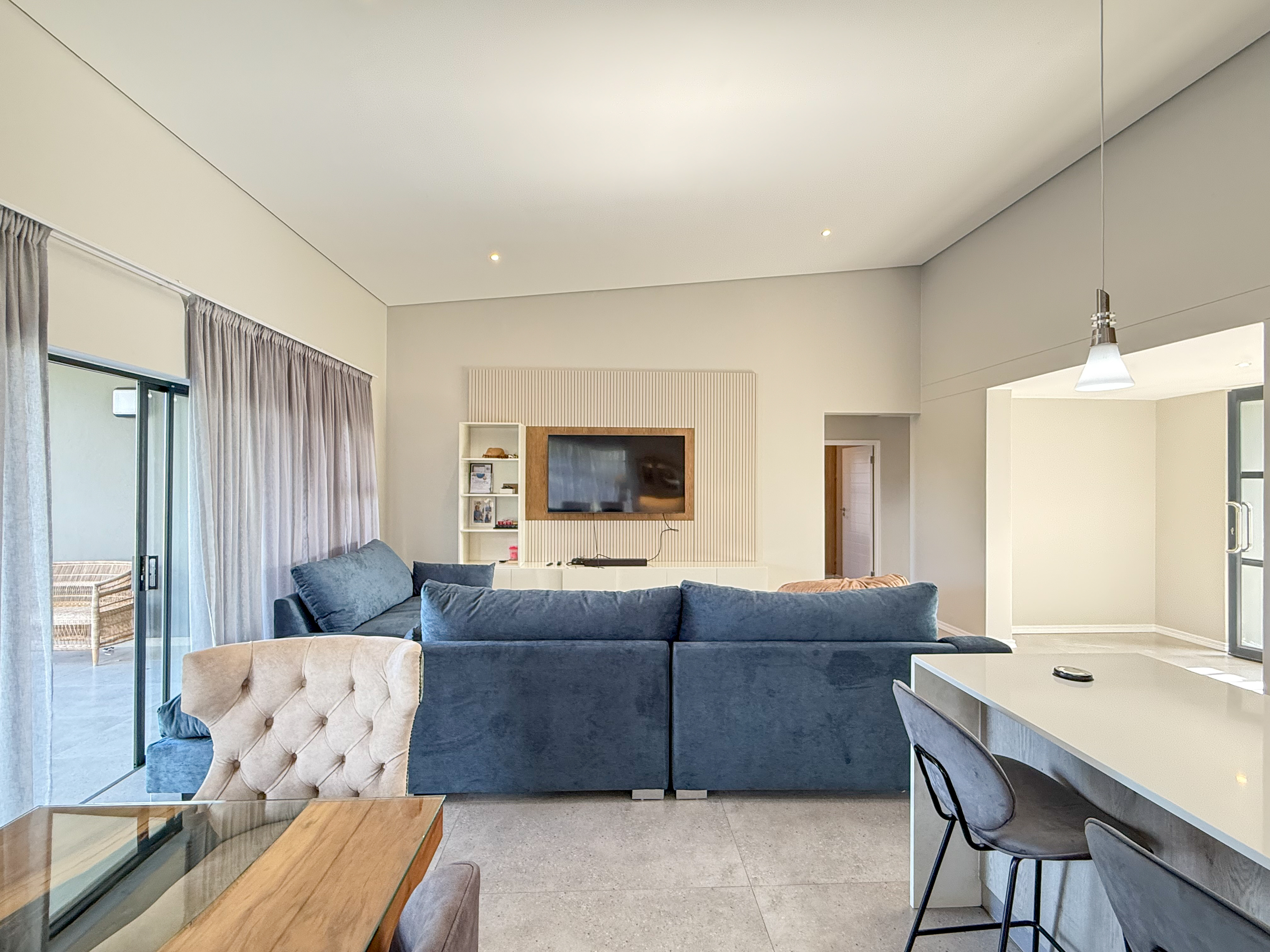 A modern open-plan kitchen, flowing seamlessly into spacious dining and living areas—perfect for entertaining or relaxed family living. Large sliding doors that open onto a beautifully landscaped garden and private pool, offering a tranquil setting for outdoor enjoyment. Additional highlights include a double garage and ample parking for guests. This pet-friendly property is designed for both everyday comfort and exceptional entertaining.